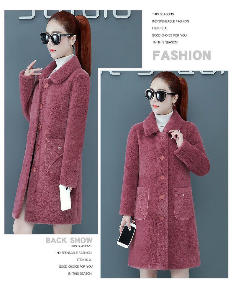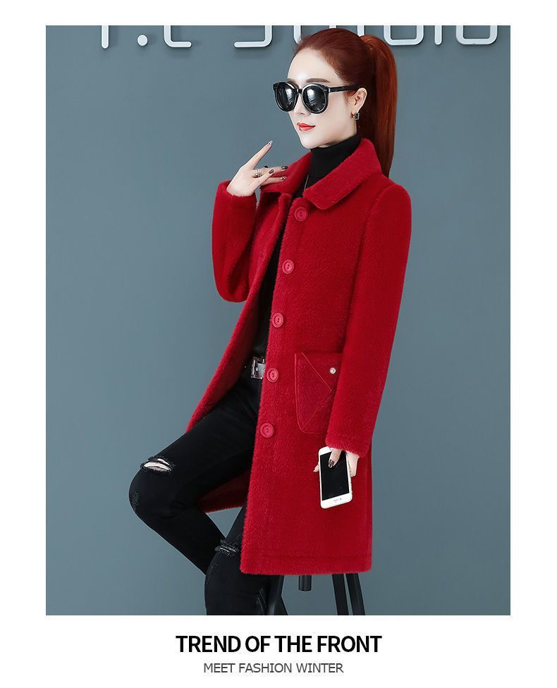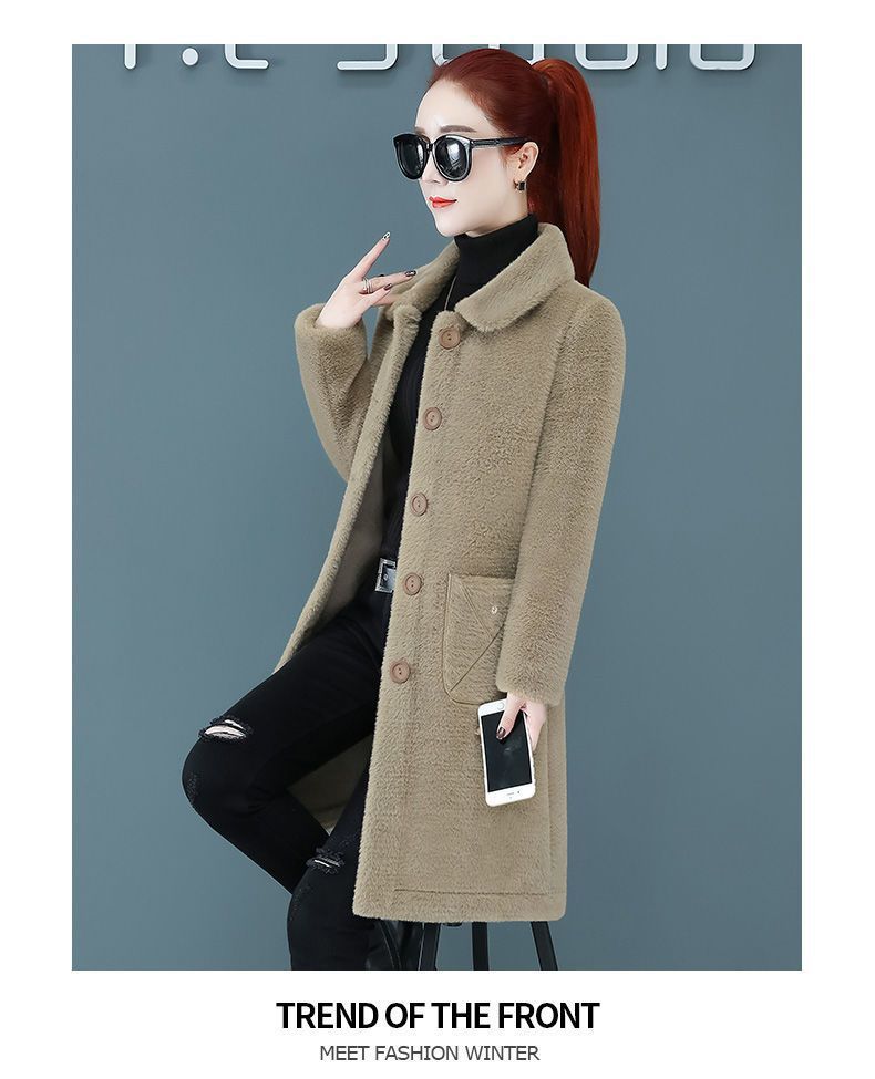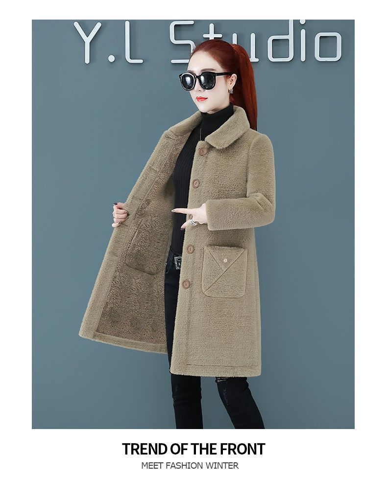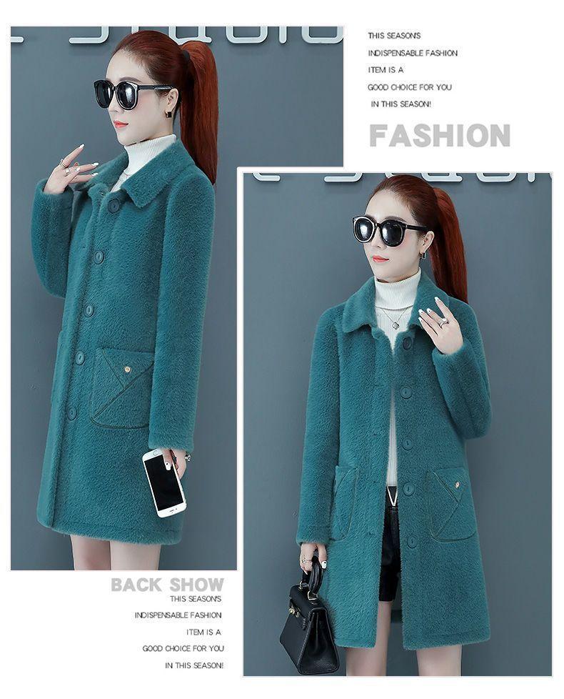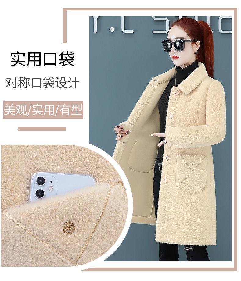 Abrigo de Mujer de Terciopelo de Visón Abrigo de Lana Grueso con Forro Polar para Invierno para Mujer Largo Medio Pequeño Combinable Abrigo de Invierno para Madre