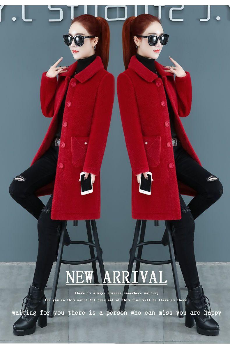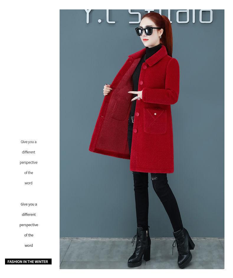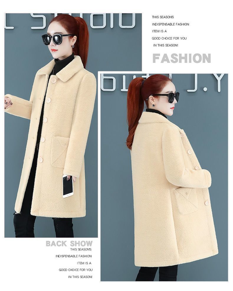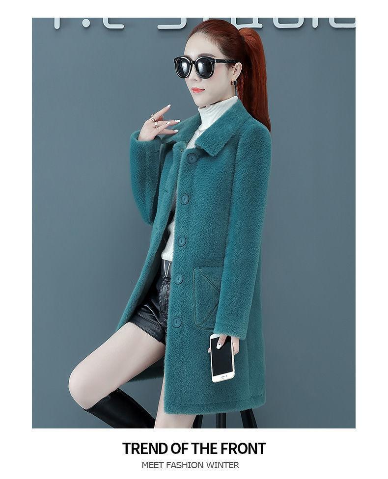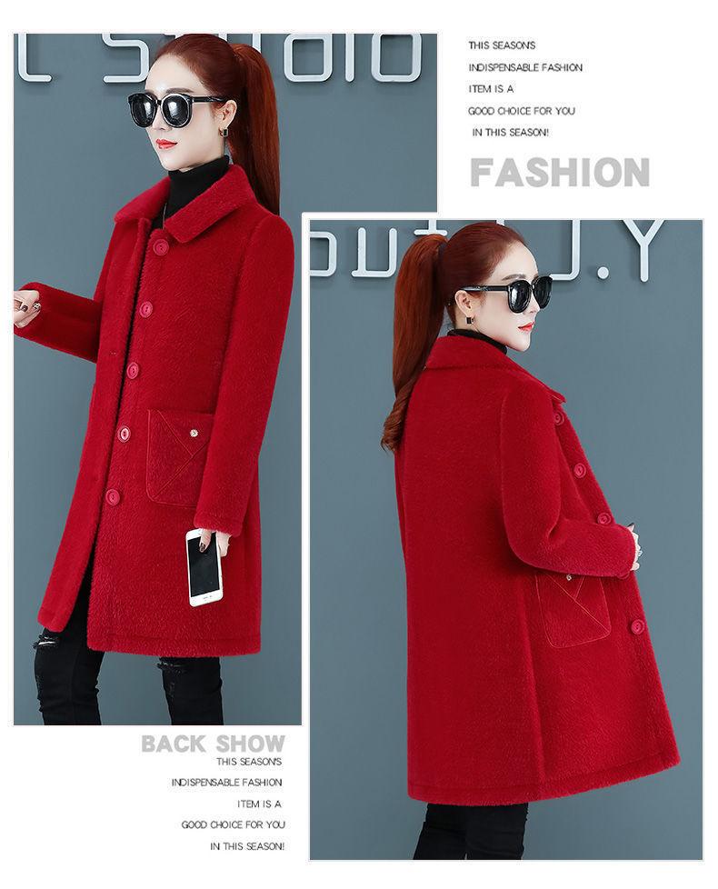 Abrigo de Mujer de Terciopelo de Visón Abrigo de Lana Grueso con Forro Polar para Invierno para Mujer Largo Medio Pequeño Combinable Abrigo de Invierno para Madre
