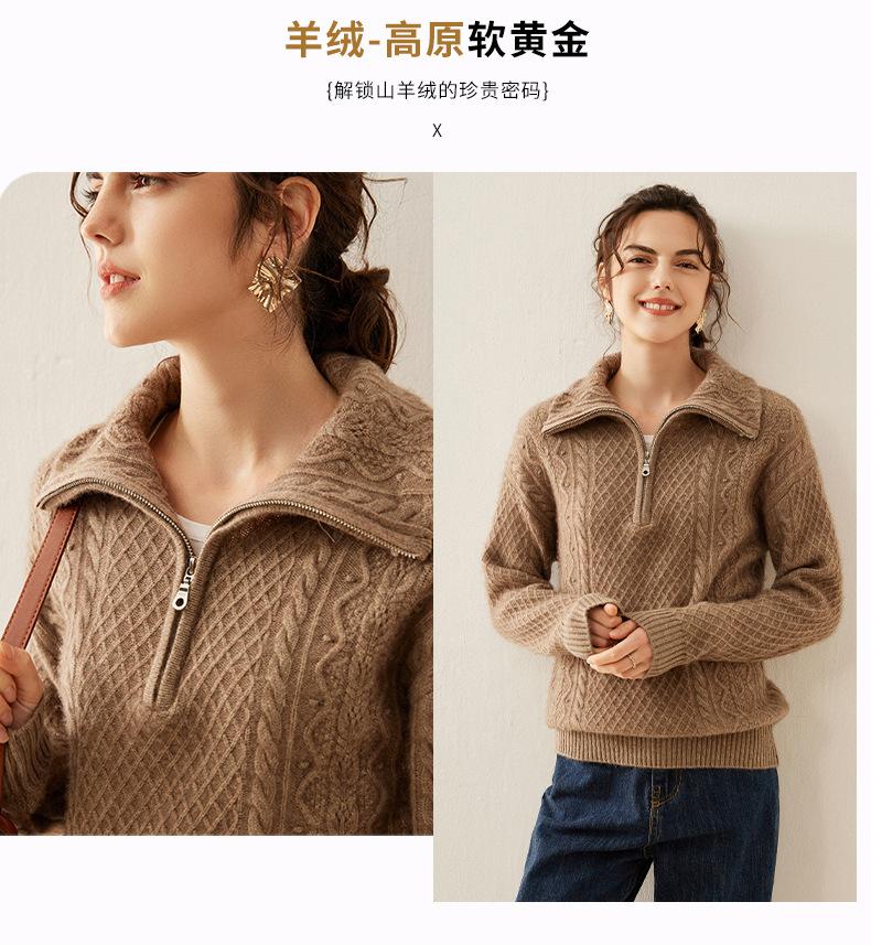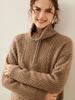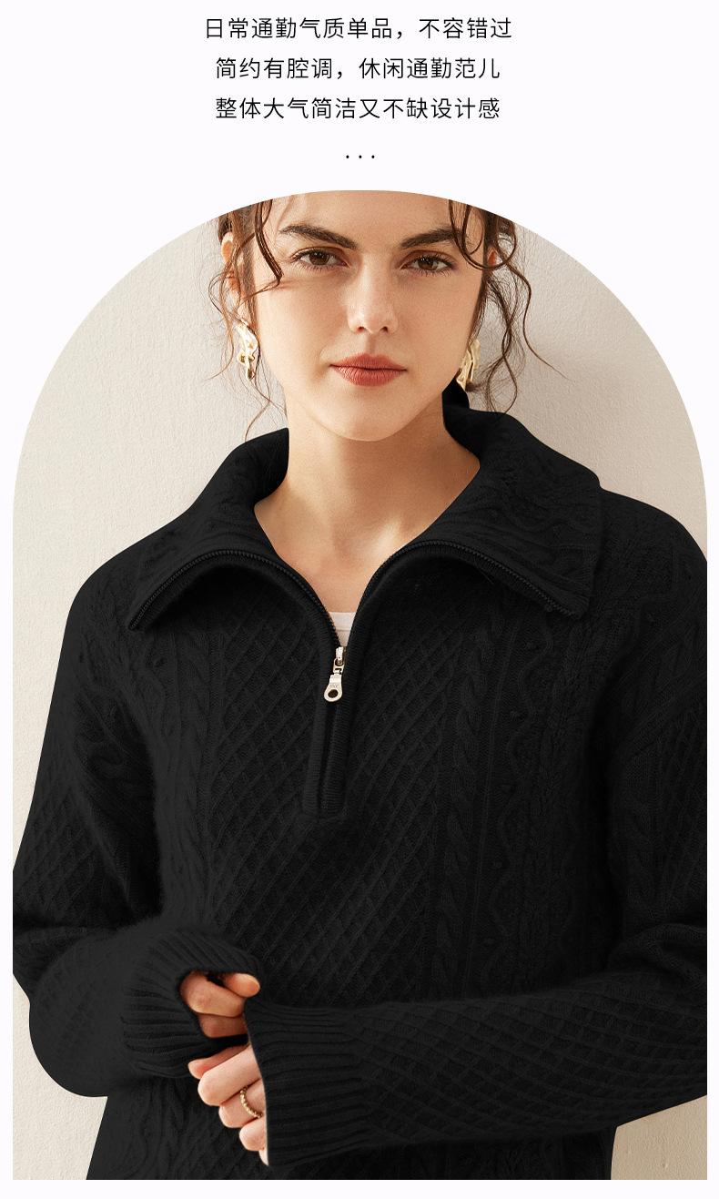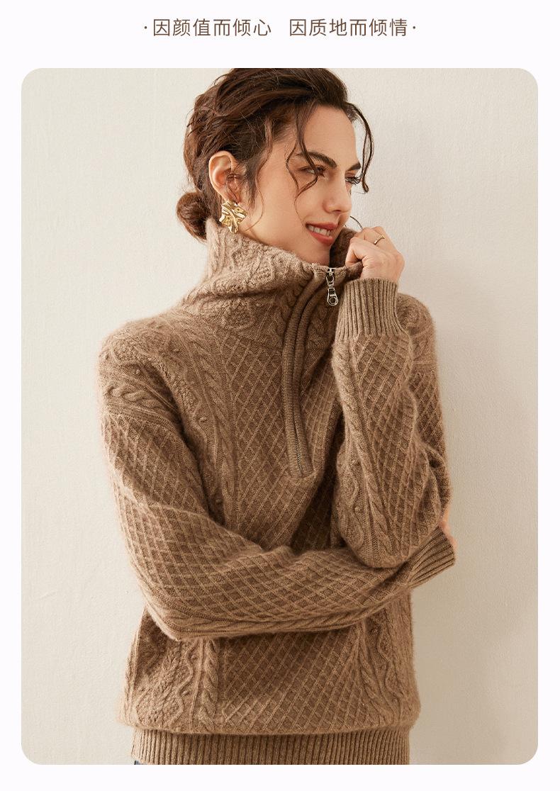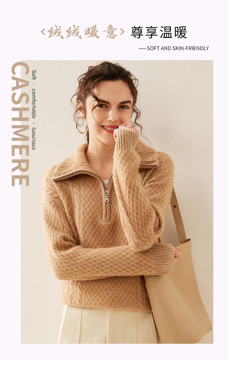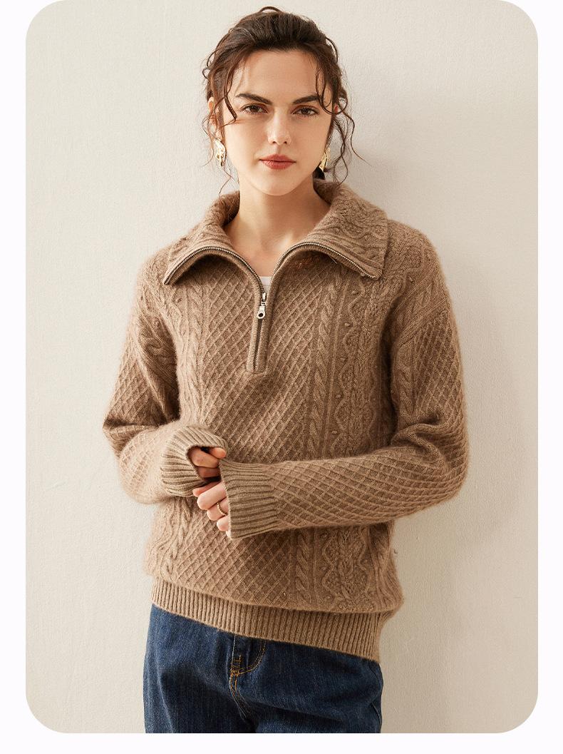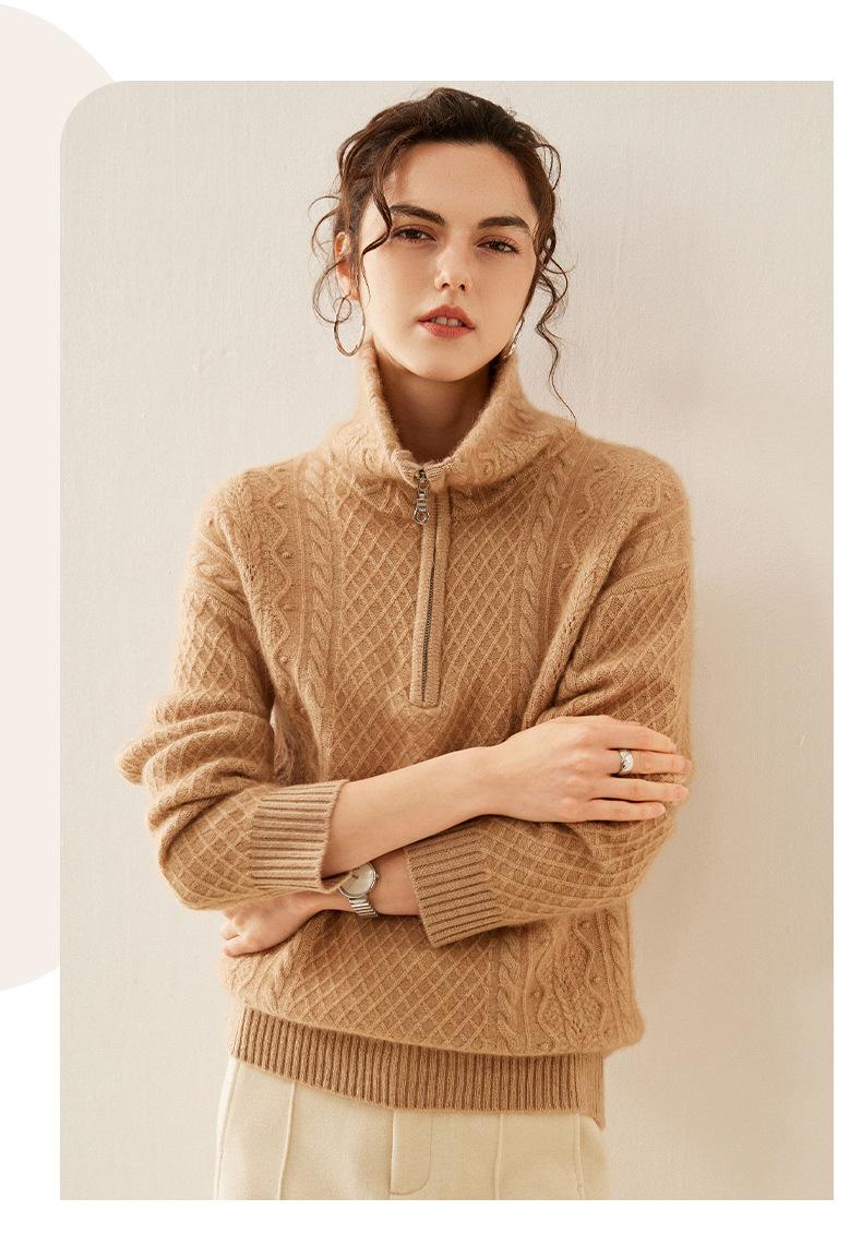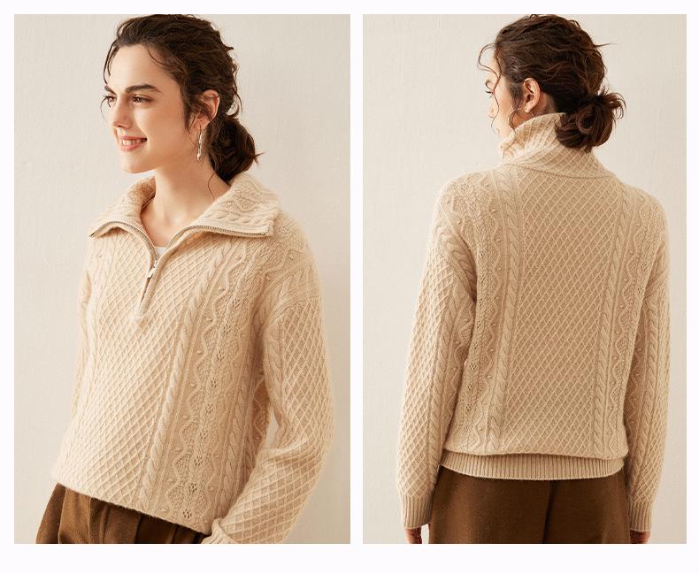 Suéter de cachemira con solapa y cremallera para mujer, abrigo grueso y cálido con cuello de media tapeta informal retro para otoño e invierno.