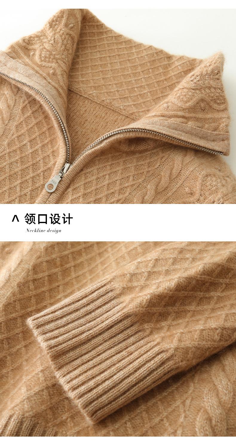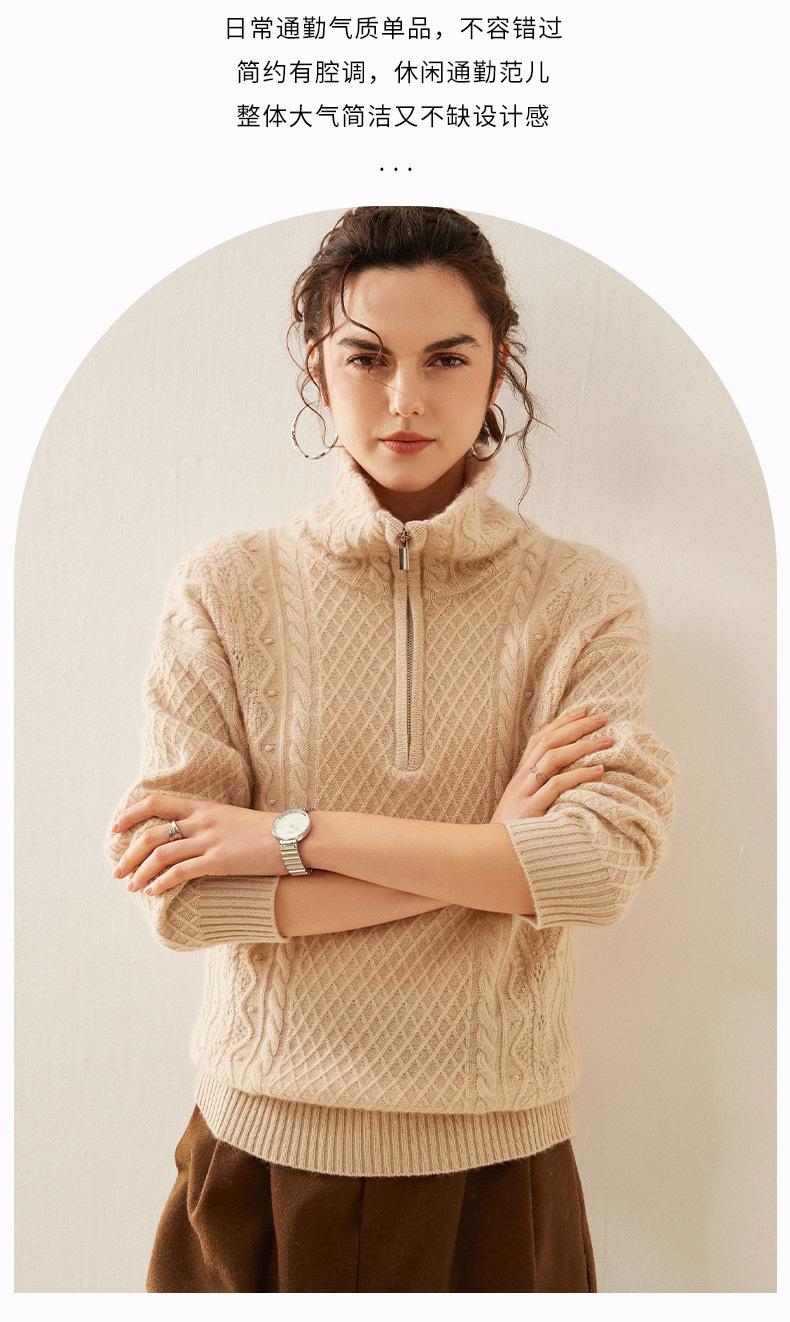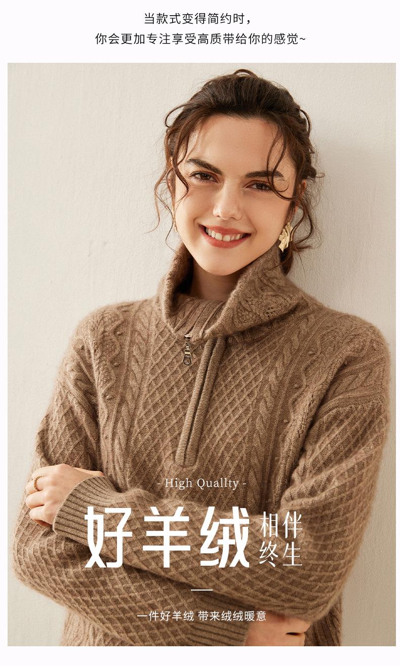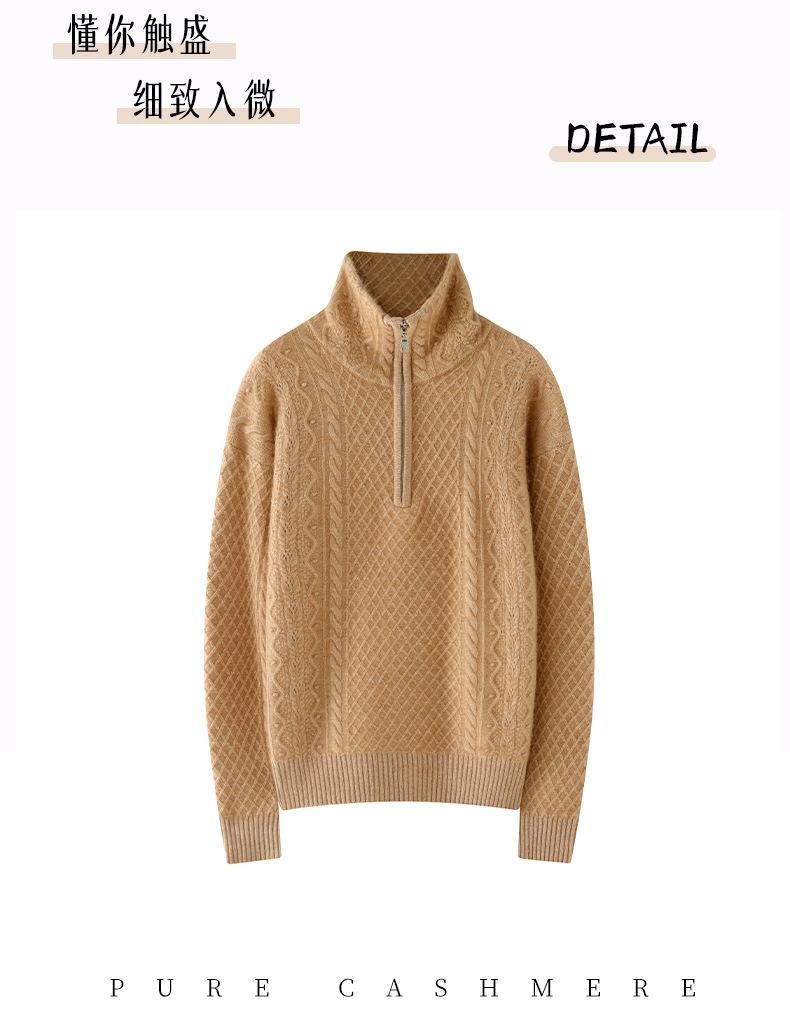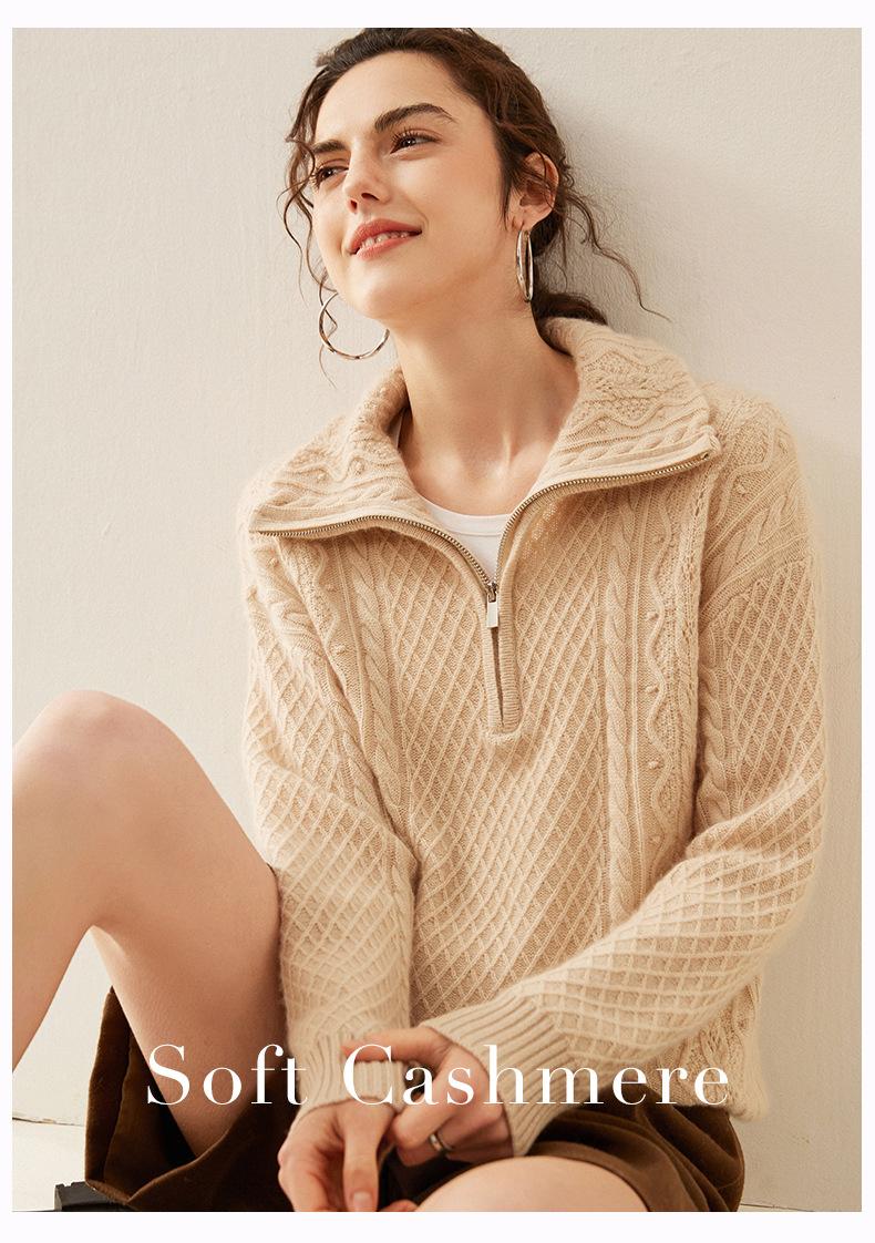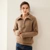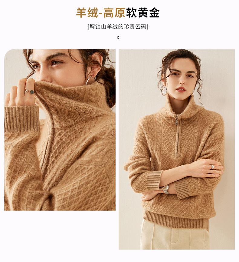 Suéter de cachemira con solapa y cremallera para mujer, abrigo grueso y cálido con cuello de media tapeta informal retro para otoño e invierno.