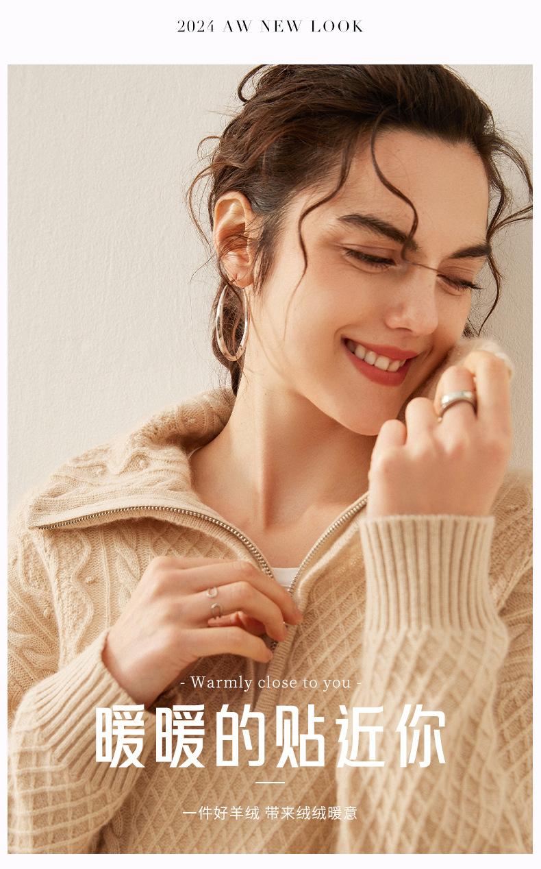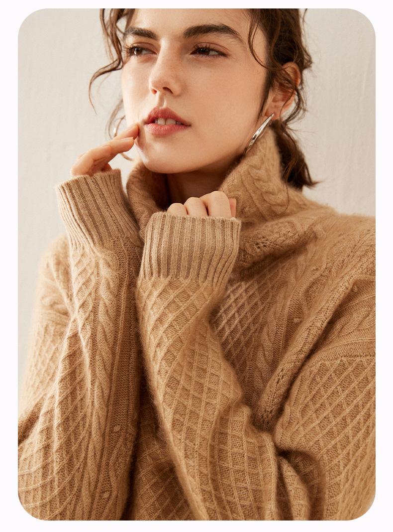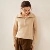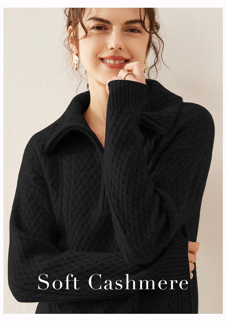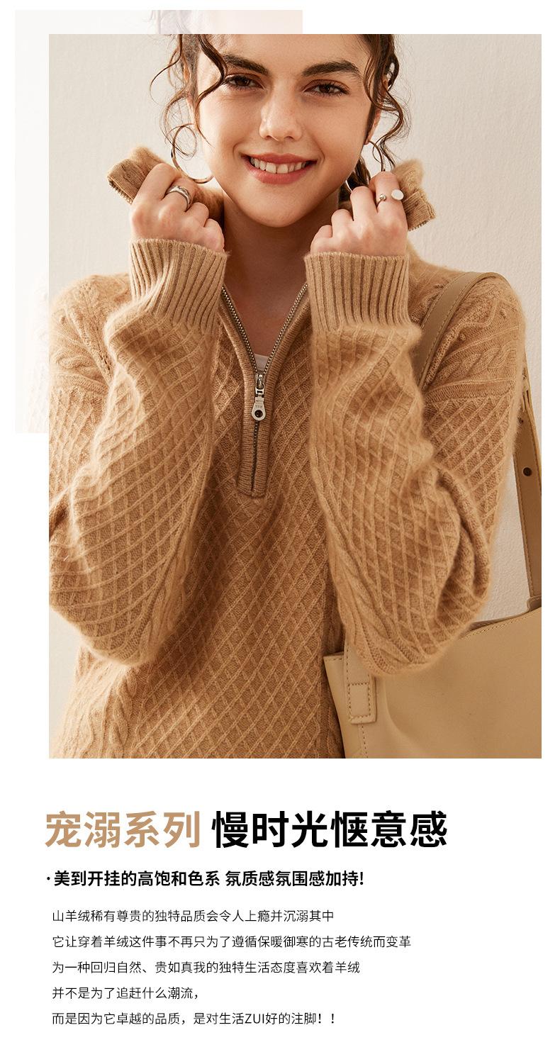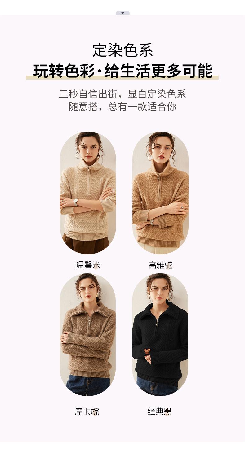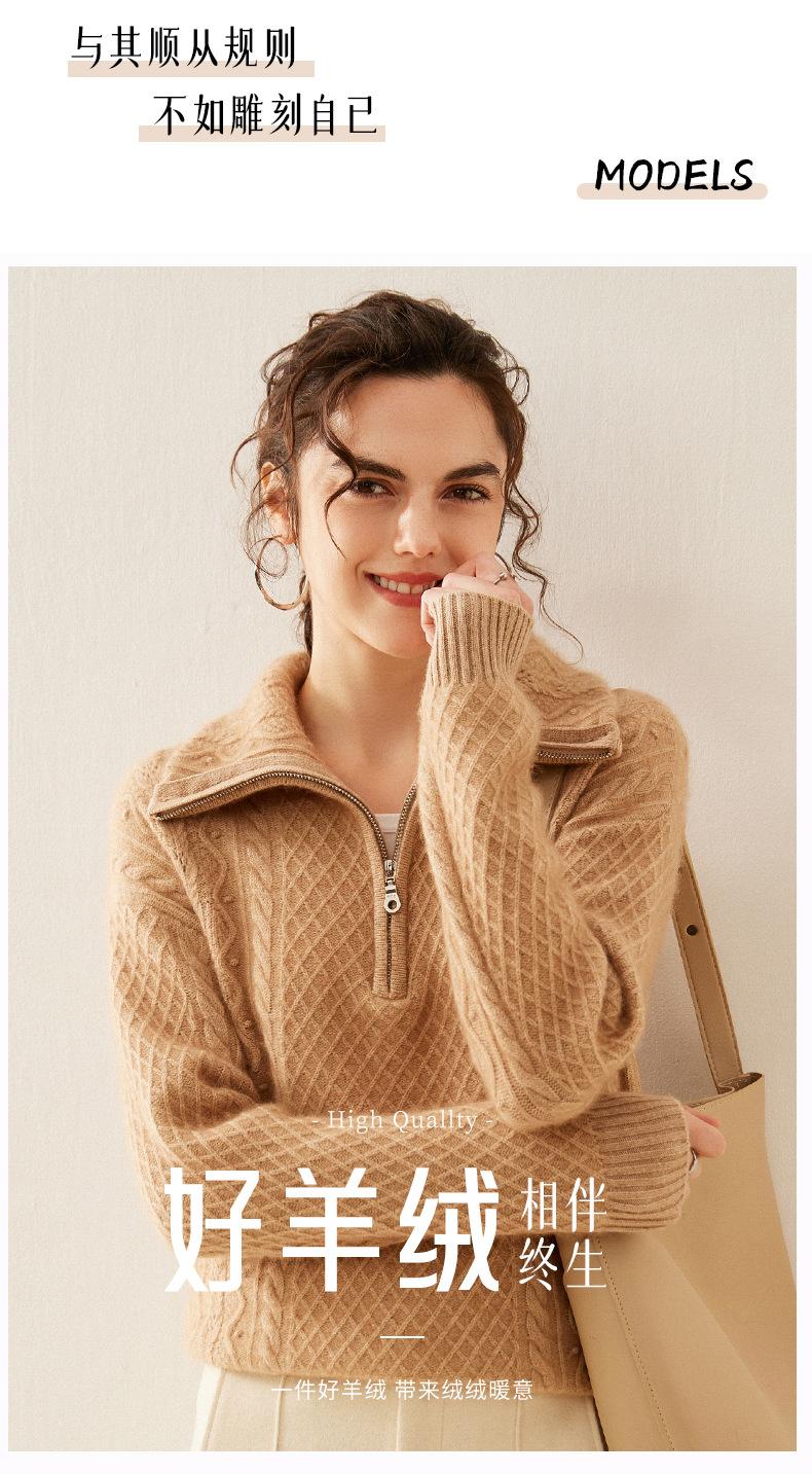 Suéter de cachemira con solapa y cremallera para mujer, abrigo grueso y cálido con cuello de media tapeta informal retro para otoño e invierno.