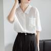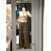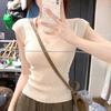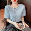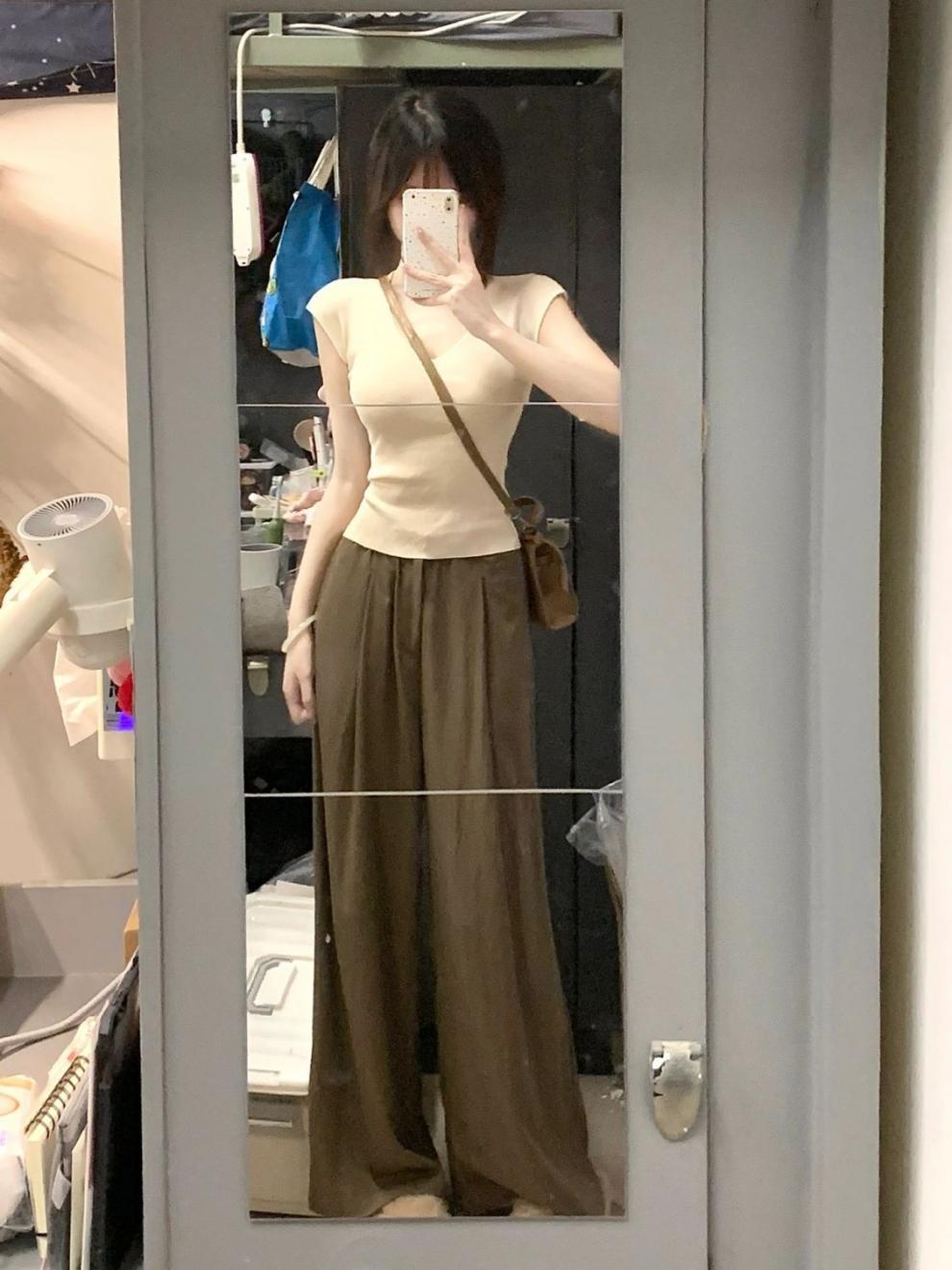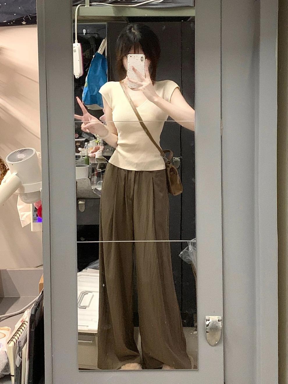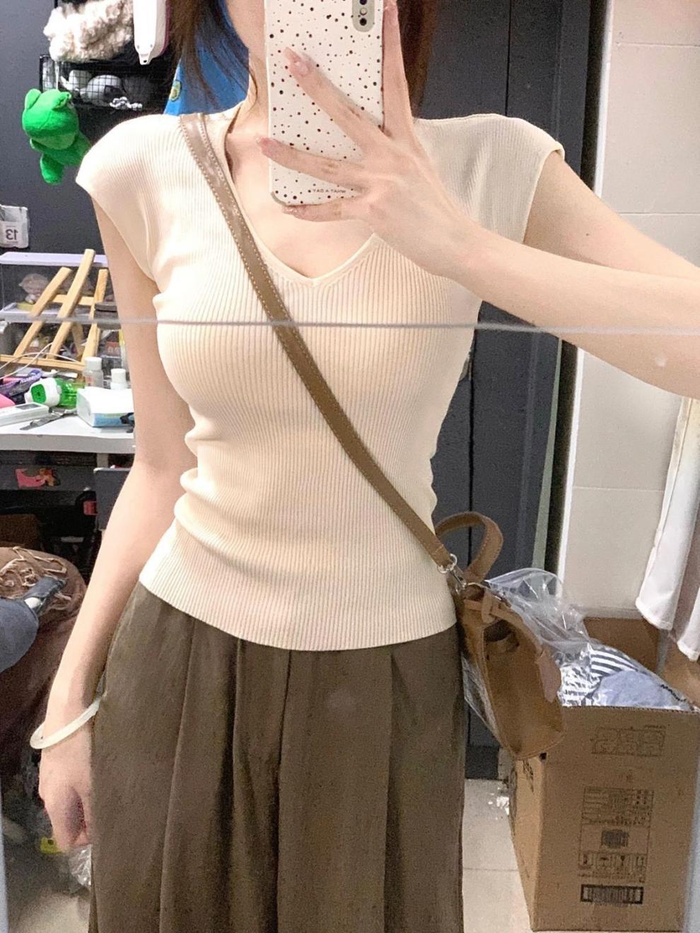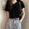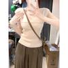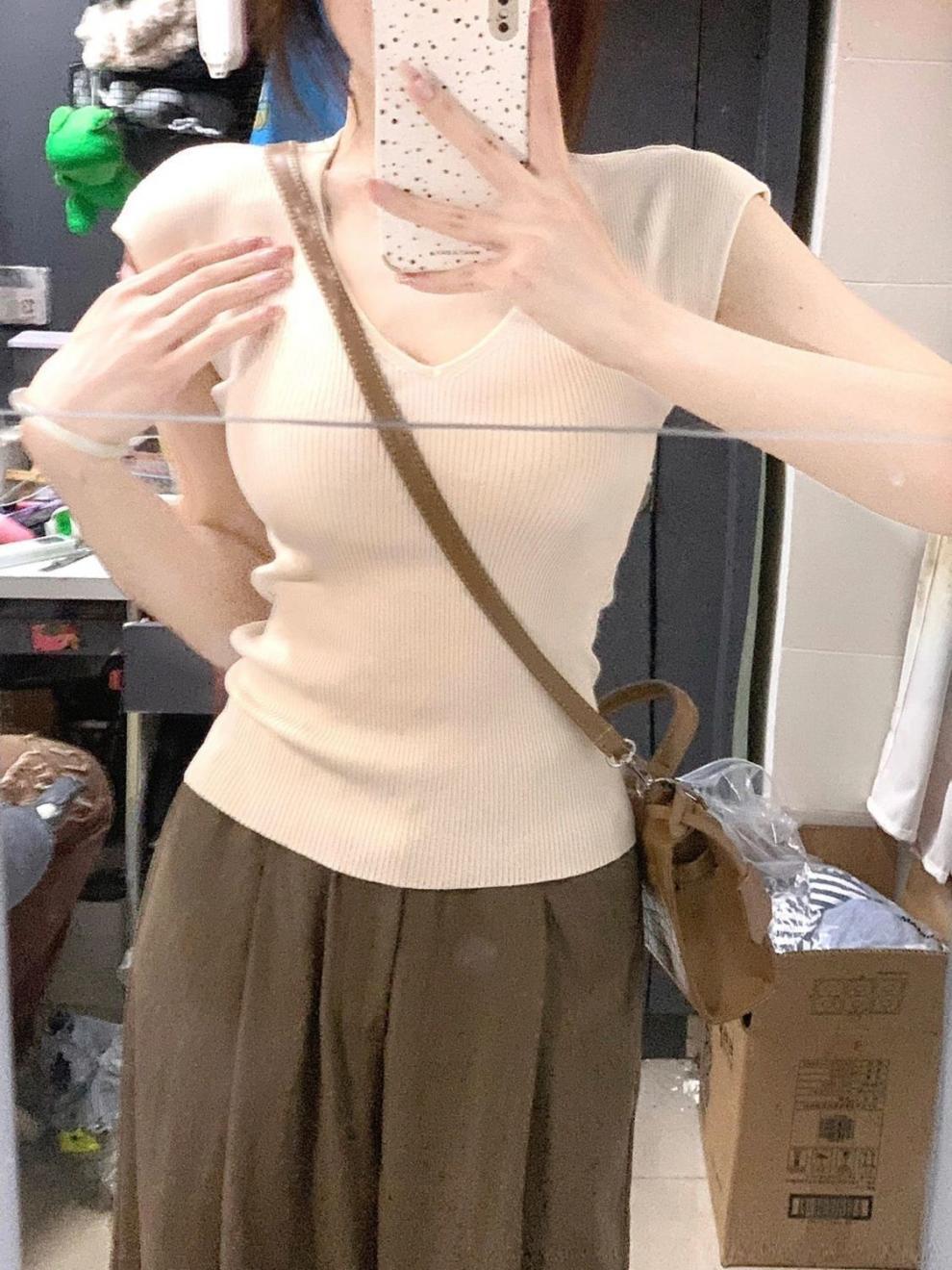 Estilo Chic de Hong Kong Super Guapo albaricoque Cuello en V Textura Camiseta de Manga Corta para Mujer Verano Adelgazante Elegante Casual Top Versátil Trendy