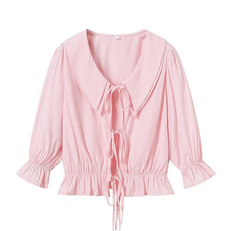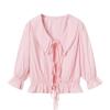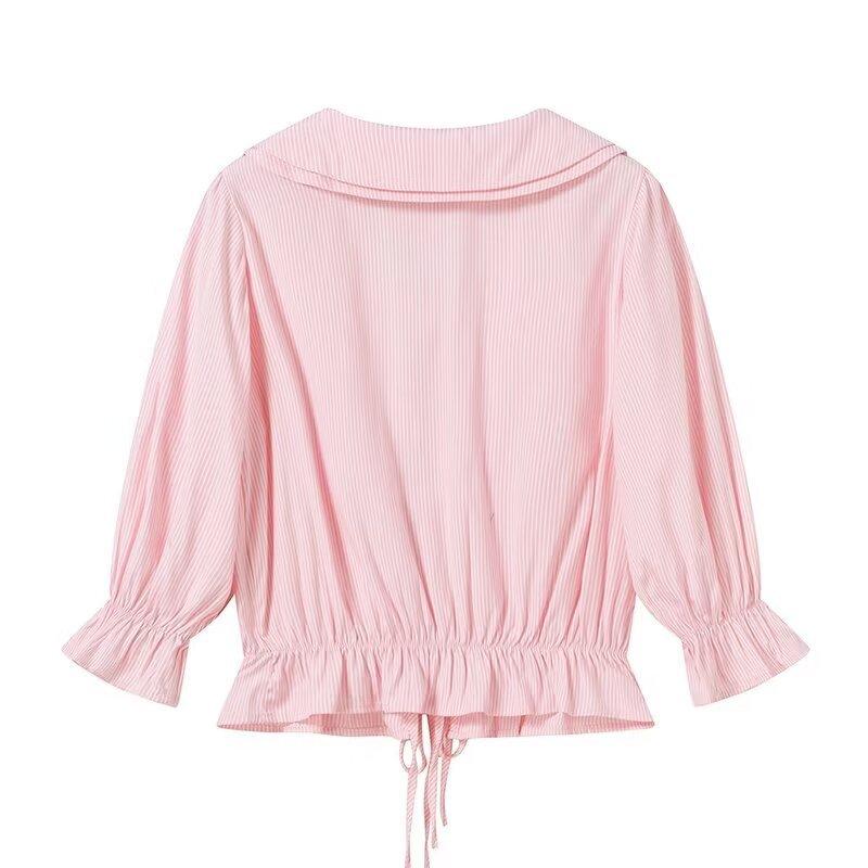 Camisa de encaje con cuello dorado doble estilo europeo y americano para mujer europea y americana de comercio exterior transfronterizo de Amazon, verano 2024
