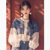 Camisa de estilo coreano transfronterizo de principios de otoño 2024, diseño de nicho francés, estilo extranjero, camisa antiedad color albaricoque con mangas acampanadas para mujer