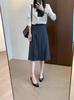 Thewow Falda Midi A-Line Plisada de Lana Modal Estilo Commuter Falda Plisada de Cintura Alta