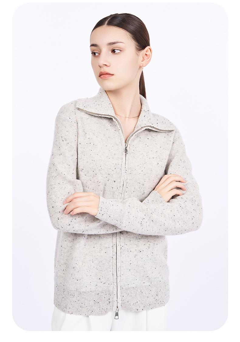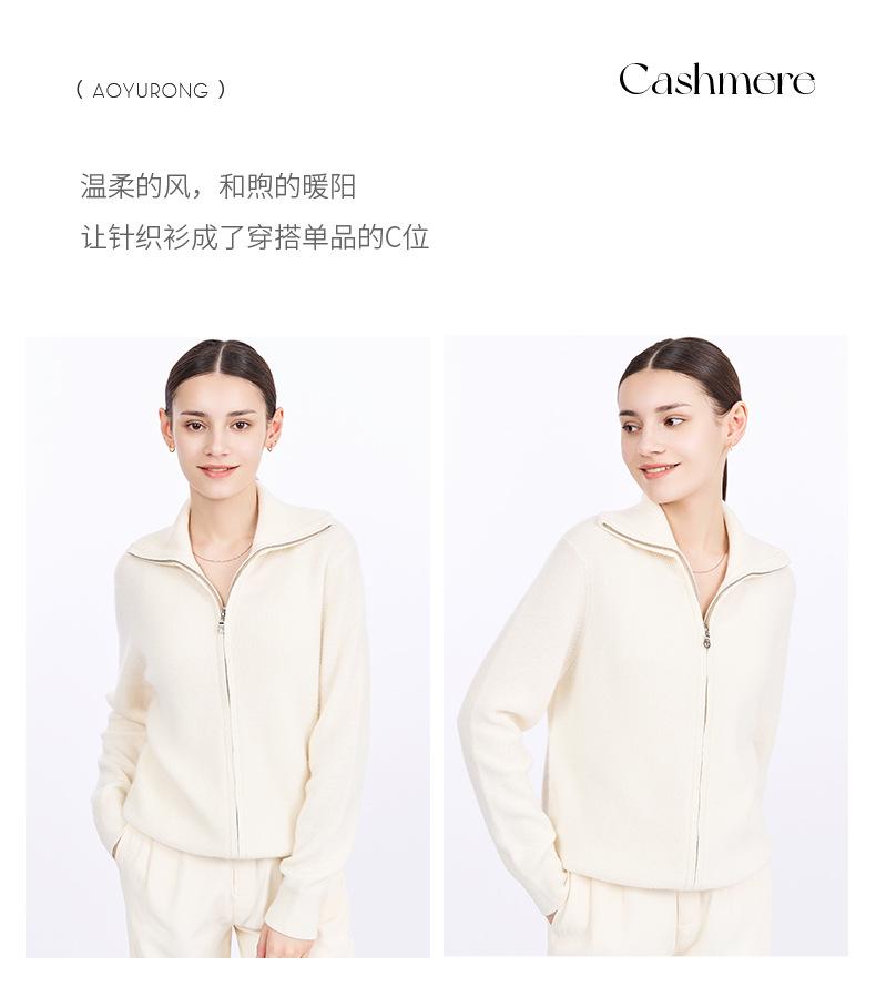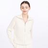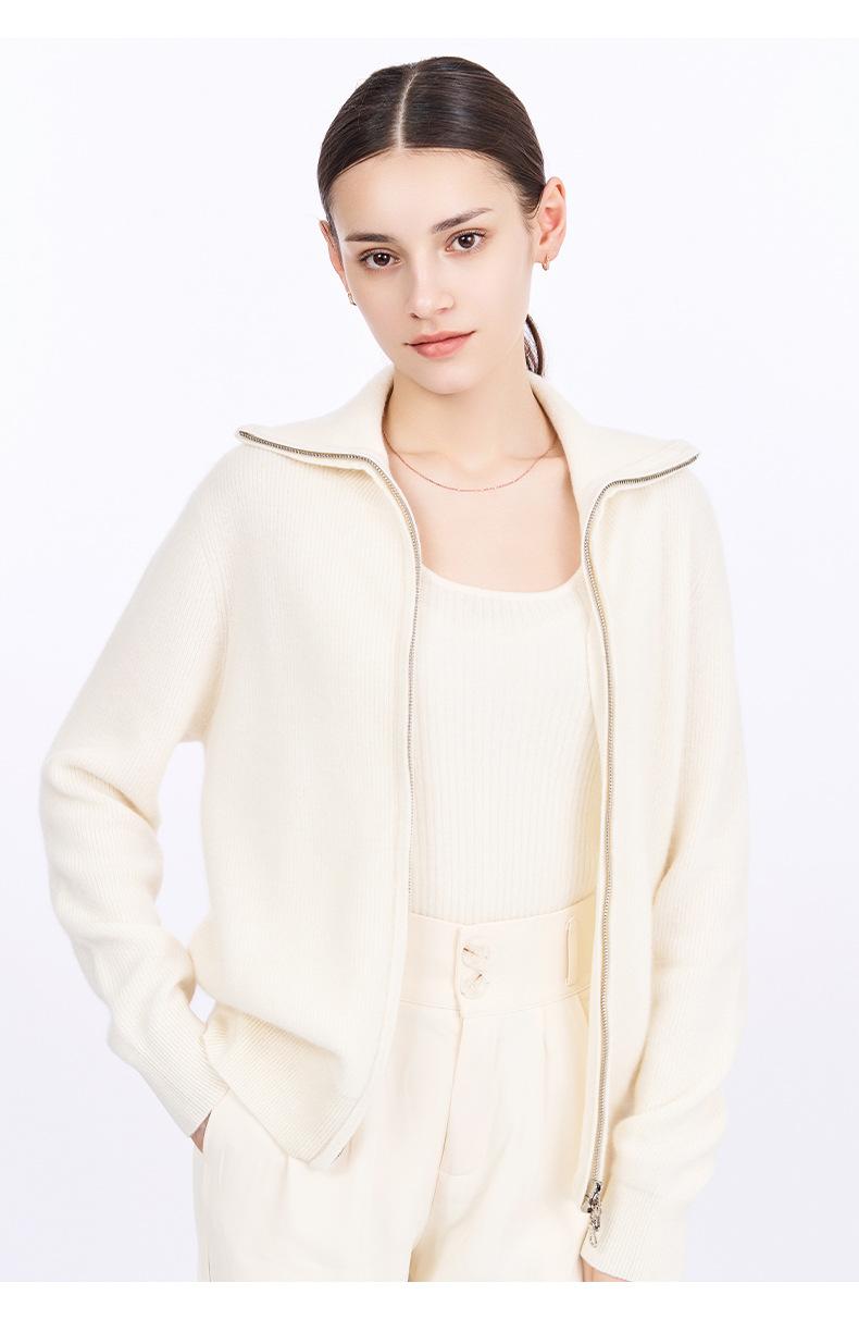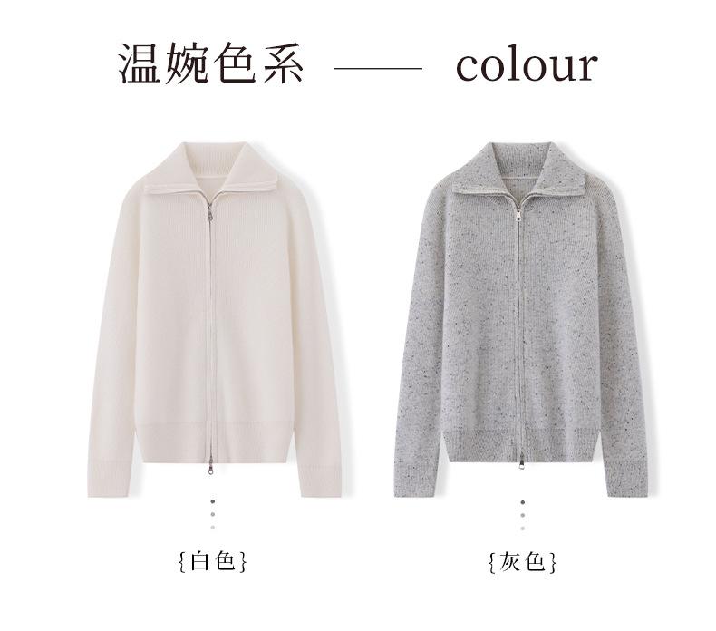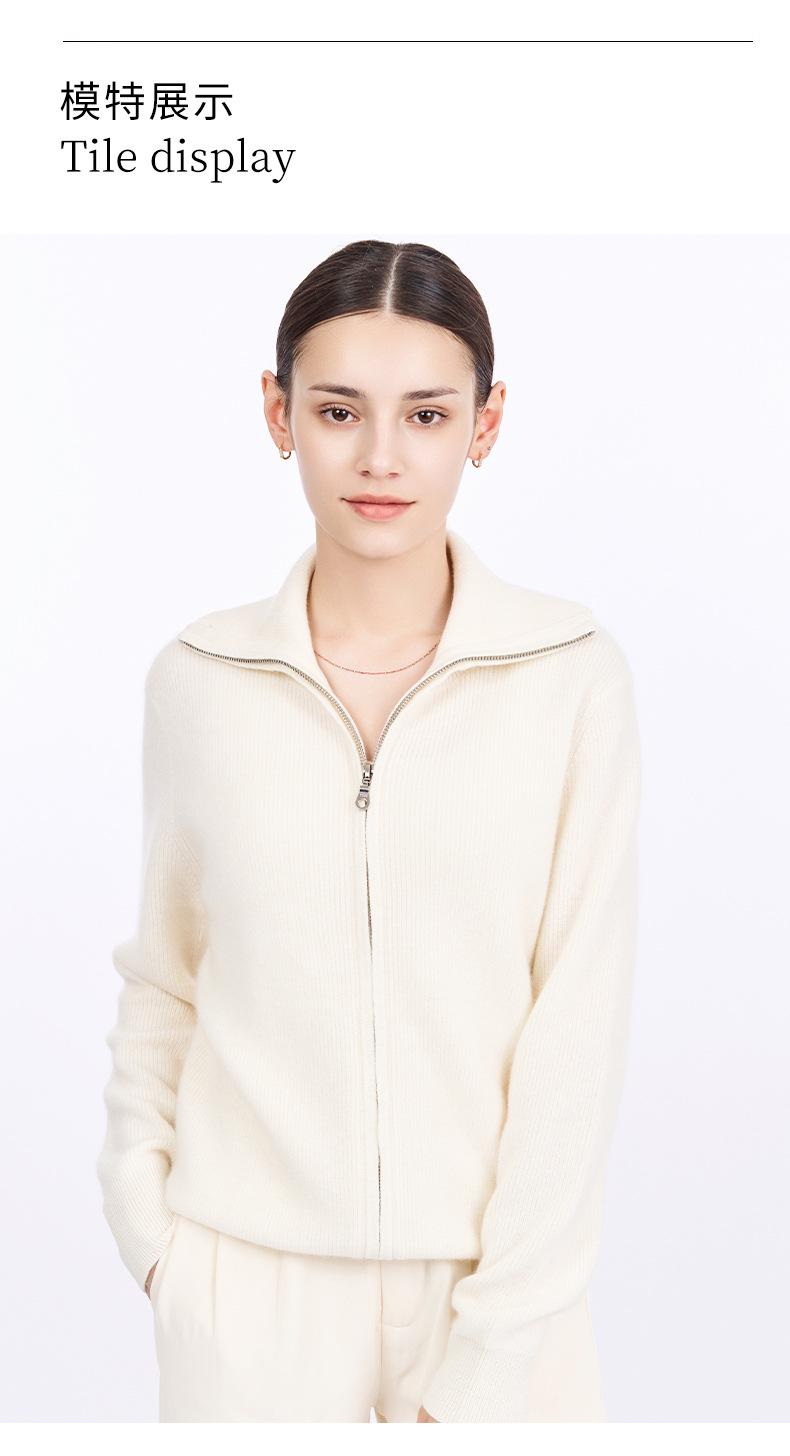 [100% cachemir] Nuevo suéter de cachemir con solapa, cárdigan de punto blanco con cremallera, abrigo sencillo coreano.