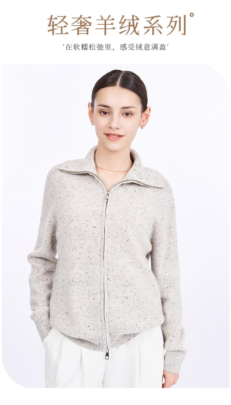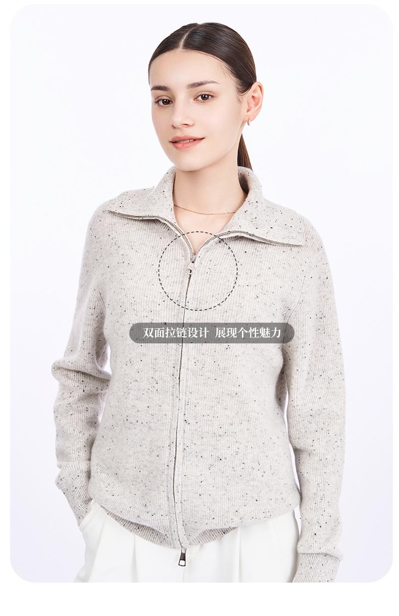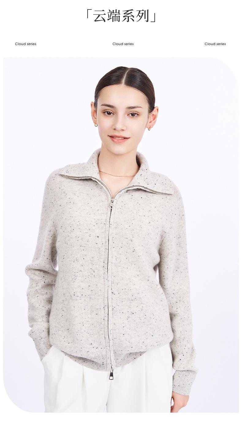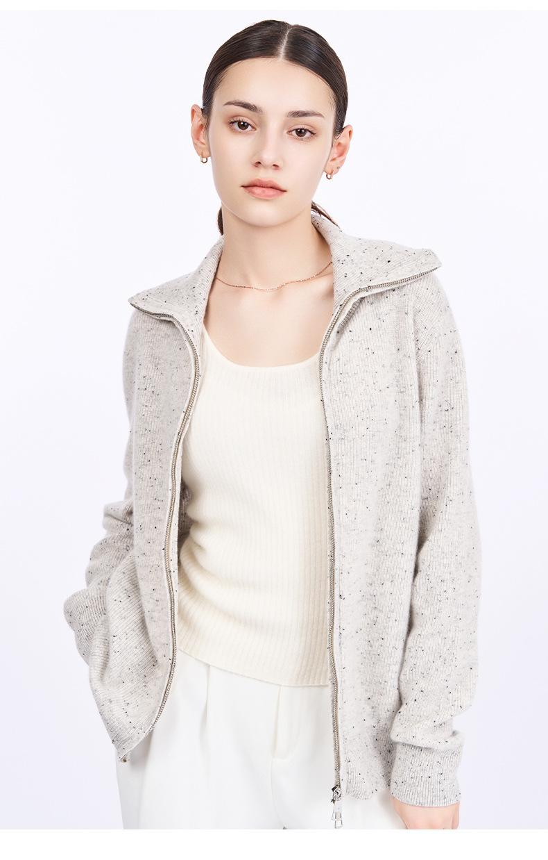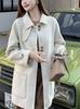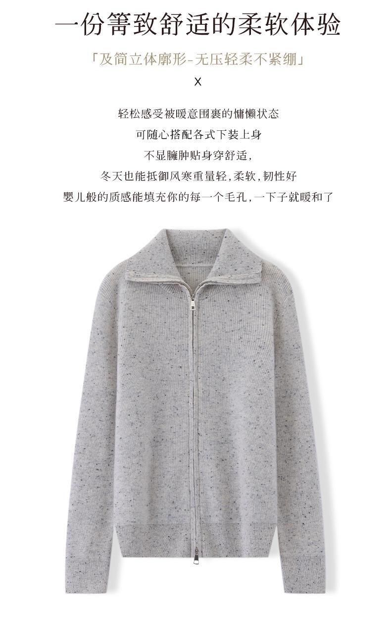 [100% cachemir] Nuevo suéter de cachemir con solapa, cárdigan de punto blanco con cremallera, abrigo sencillo coreano.