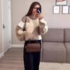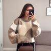 Suéter holgado de cuello redondo con contraste de color para mujer, estilo versátil, de Amazon, para otoño de 2024, disponible en Europa y América.