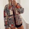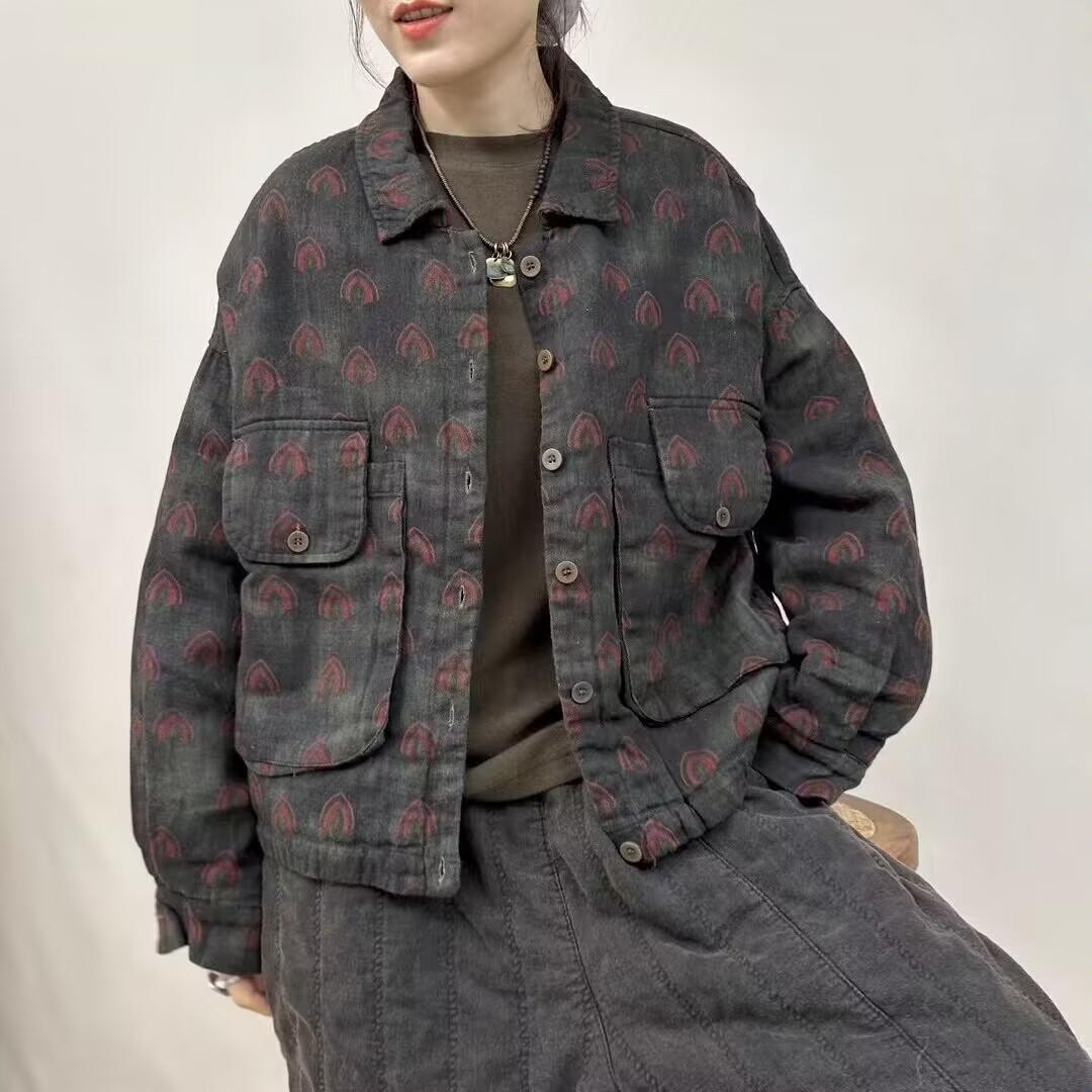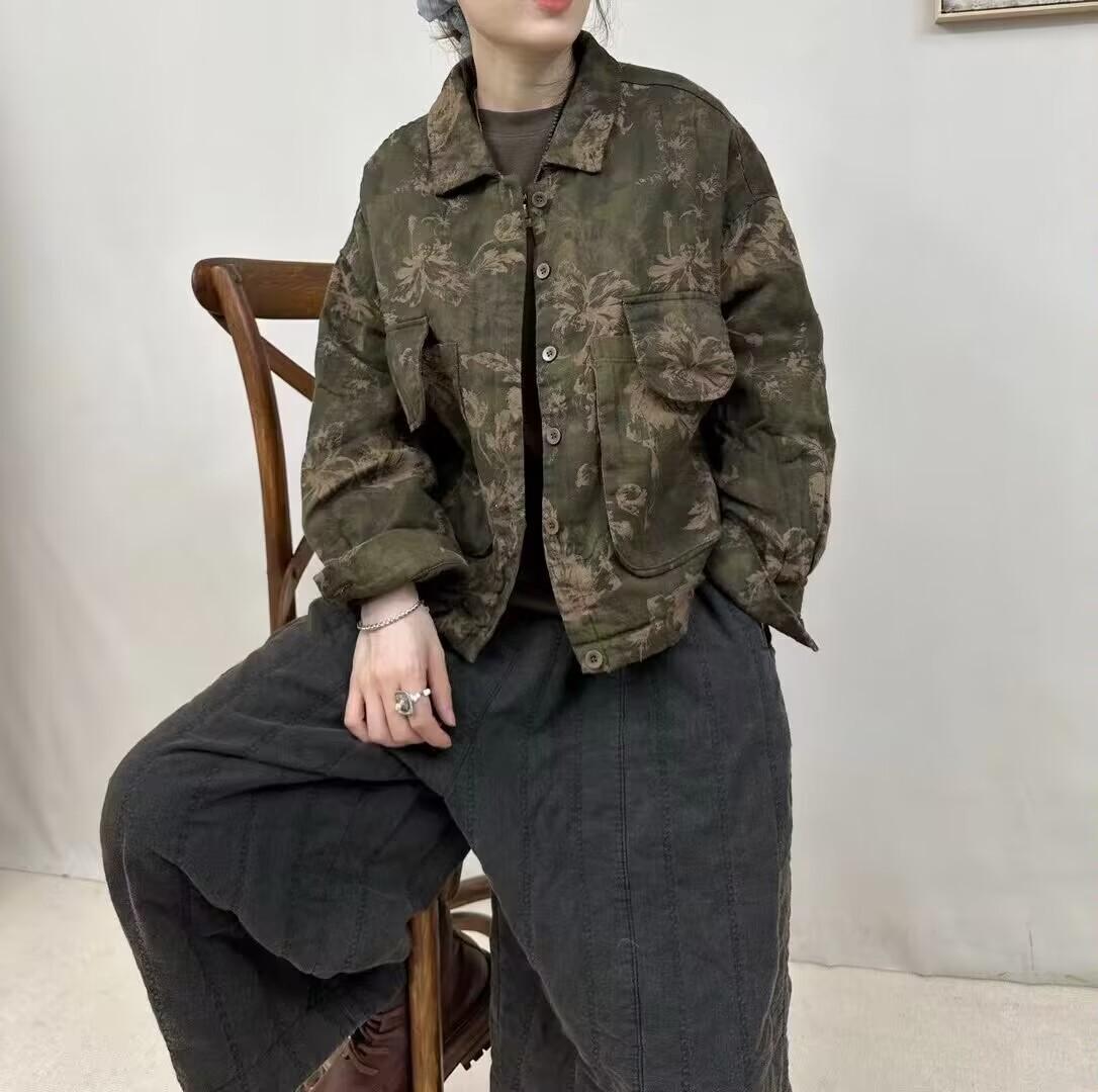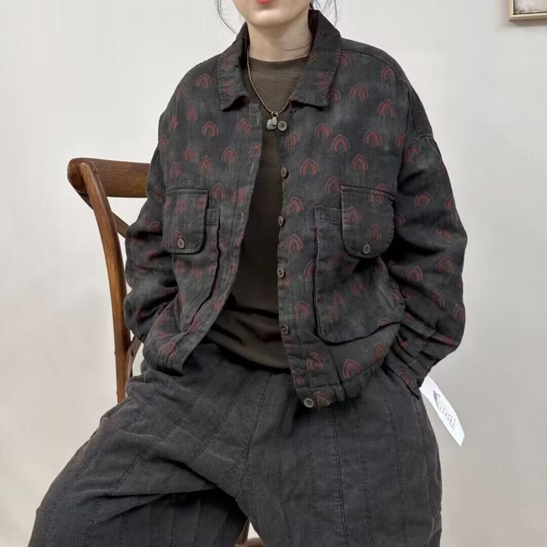 Chaqueta corta acolchada de algodón para mujer, otoño e invierno 2024, nueva chaqueta vintage estampada, informal, combinable, holgada y cálida.