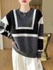 Suéter de punto con cuello redondo y contraste geométrico para mujer, moda japonesa y coreana, otoño e invierno, nueva camisa informal holgada de manga larga con base de lana