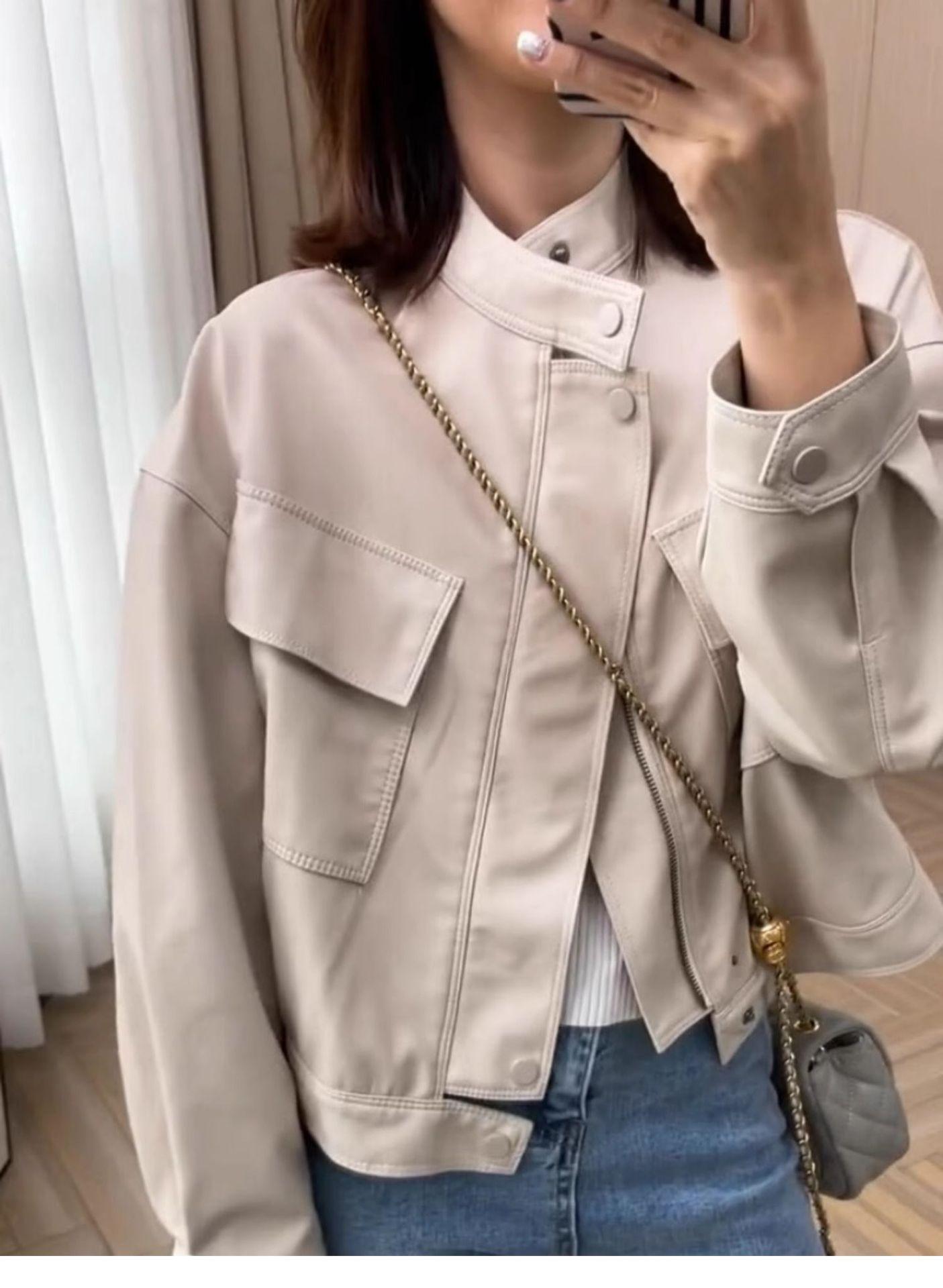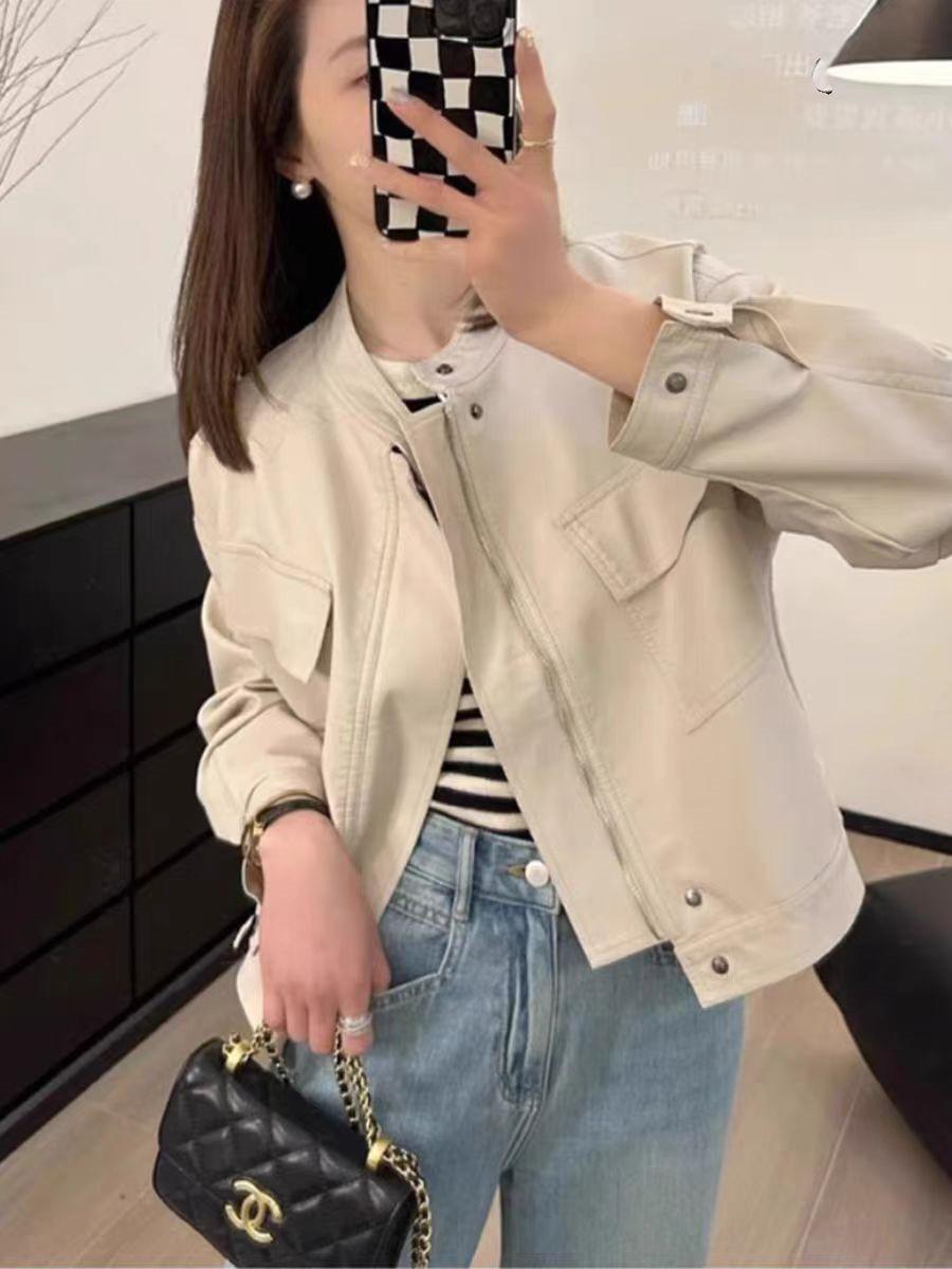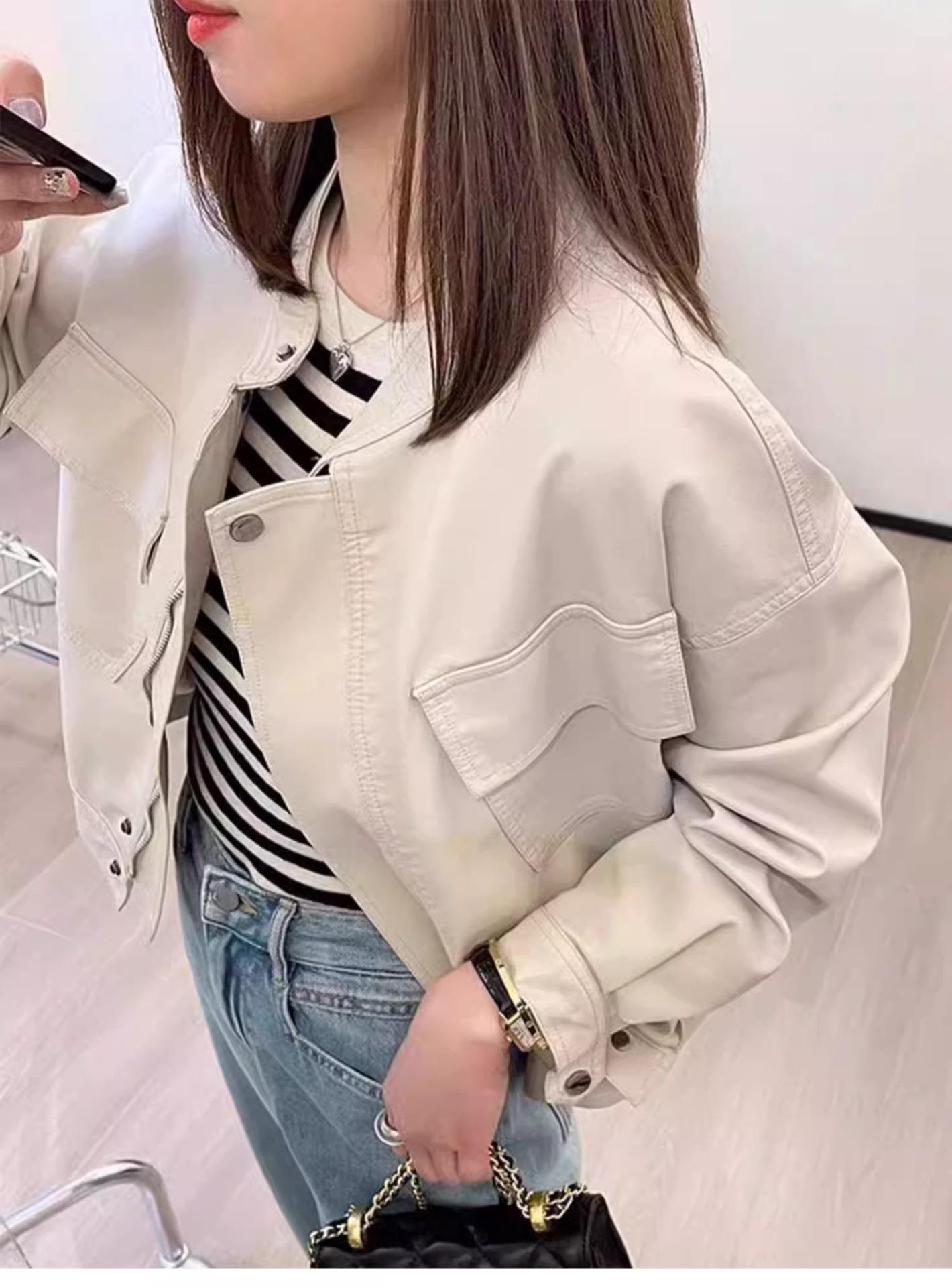 2024 Primavera y Otoño Nuevo Abrigo Casual Corto de Cuero Pequeño para Mujer Estilo Coreano Holgado Adelgazante Chaqueta de Moda Biker de Cuero PU