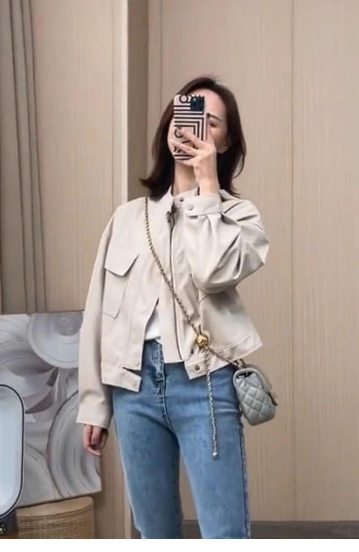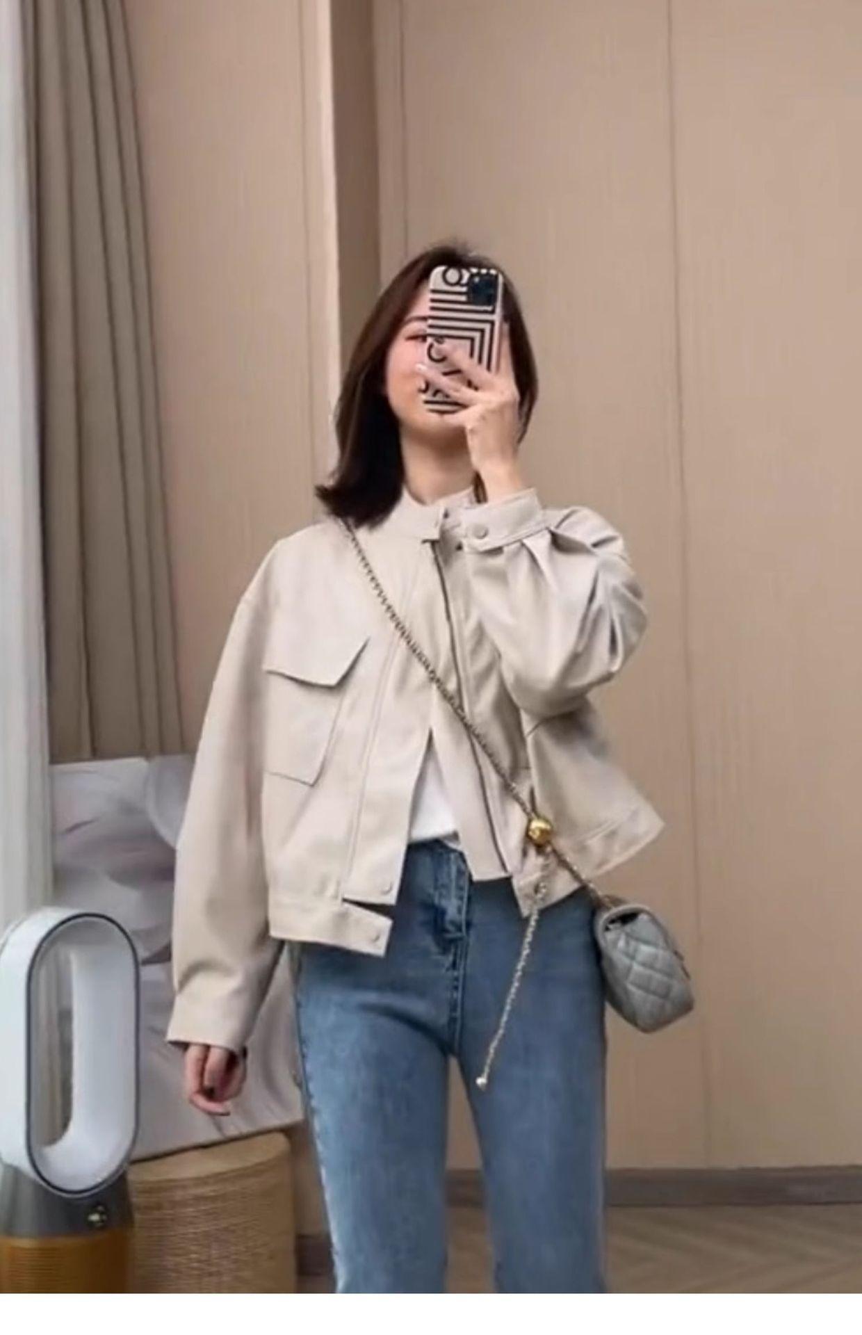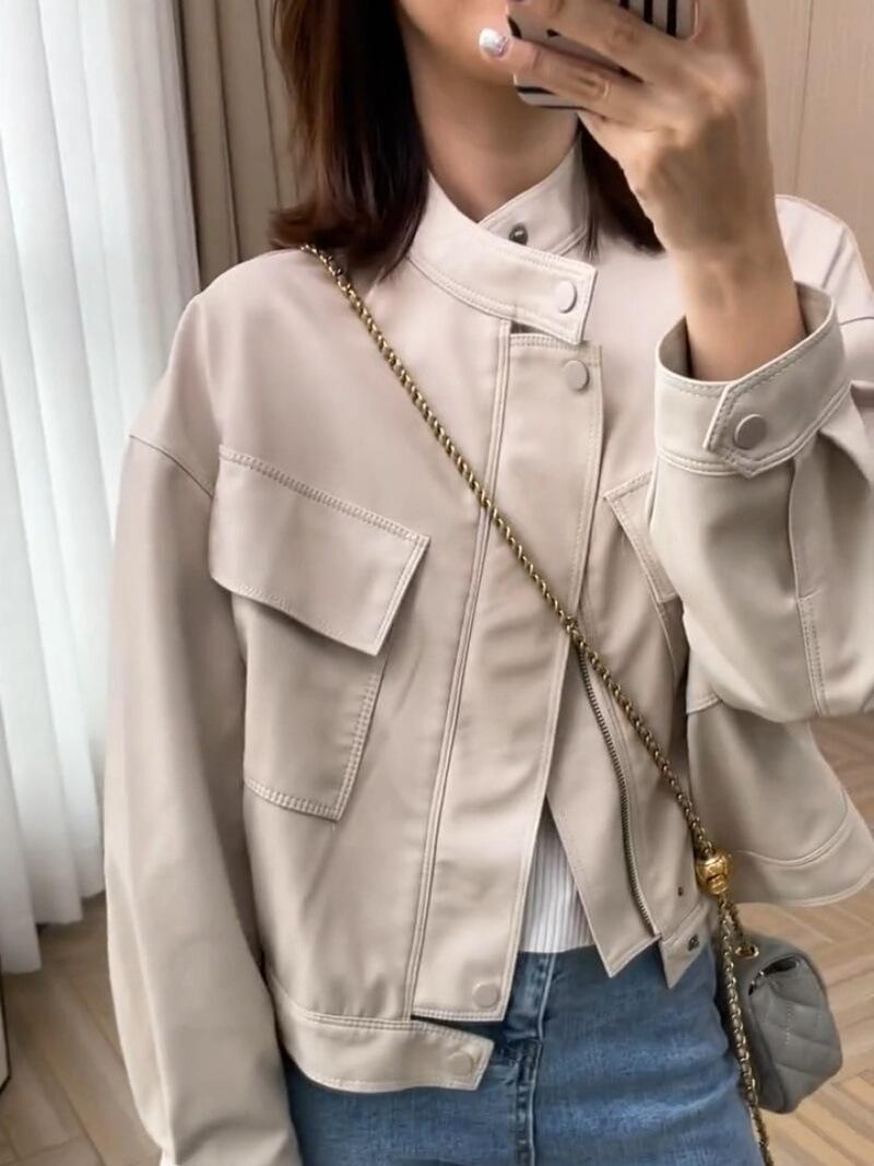 2024 Primavera y Otoño Nuevo Abrigo Casual Corto de Cuero Pequeño para Mujer Estilo Coreano Holgado Adelgazante Chaqueta de Moda Biker de Cuero PU