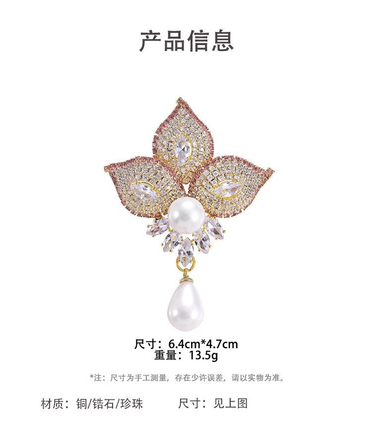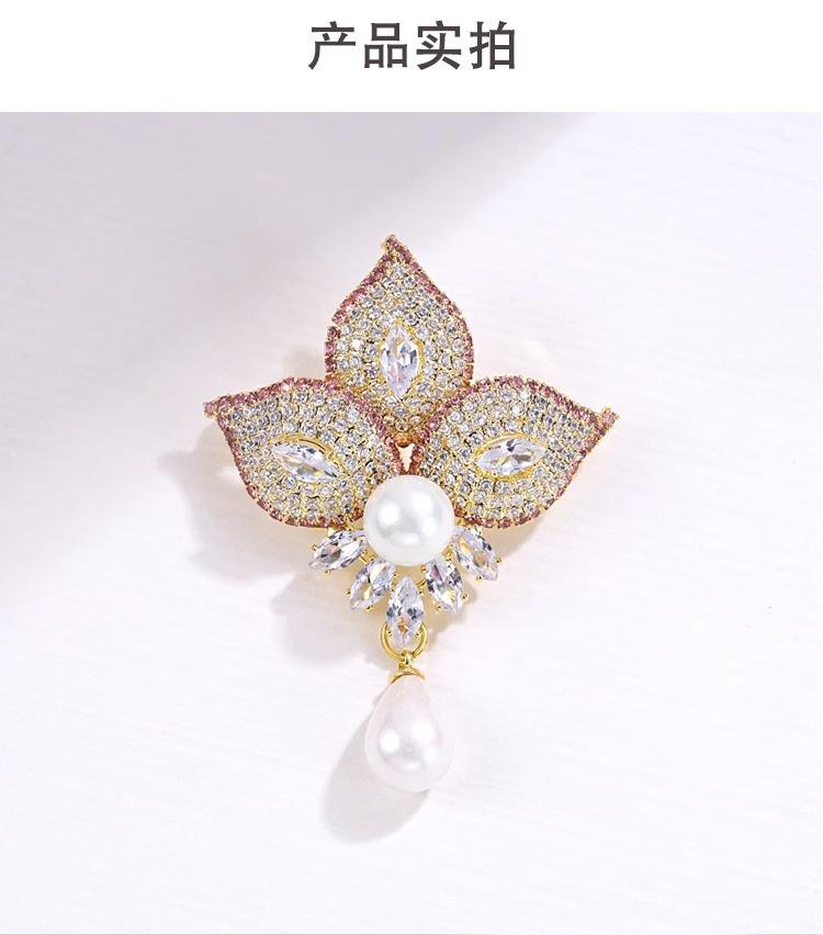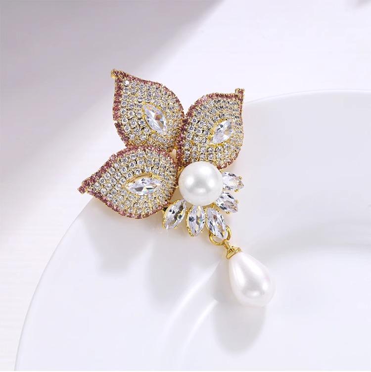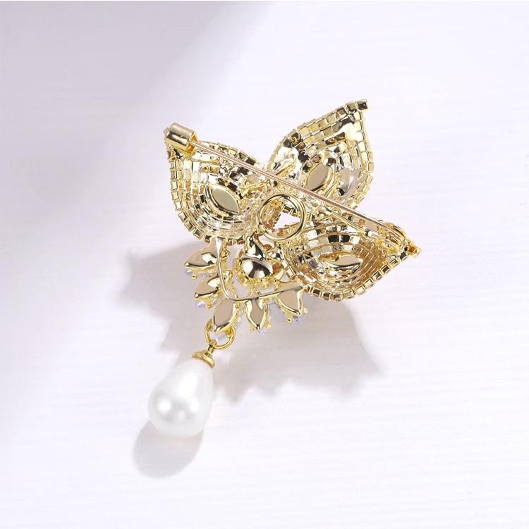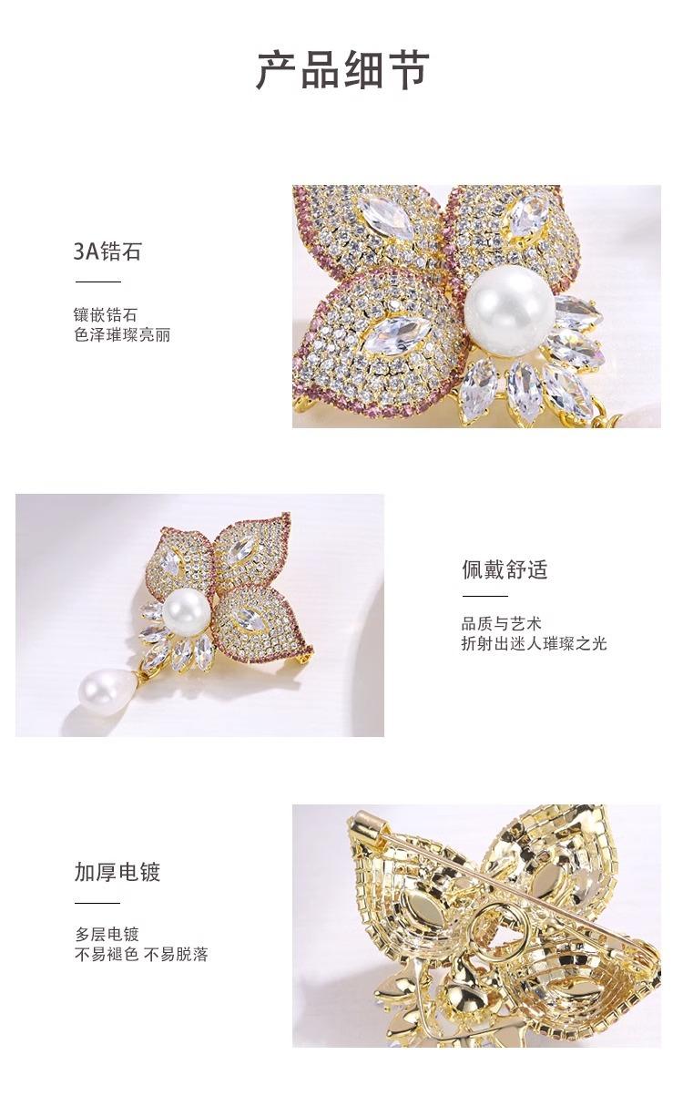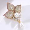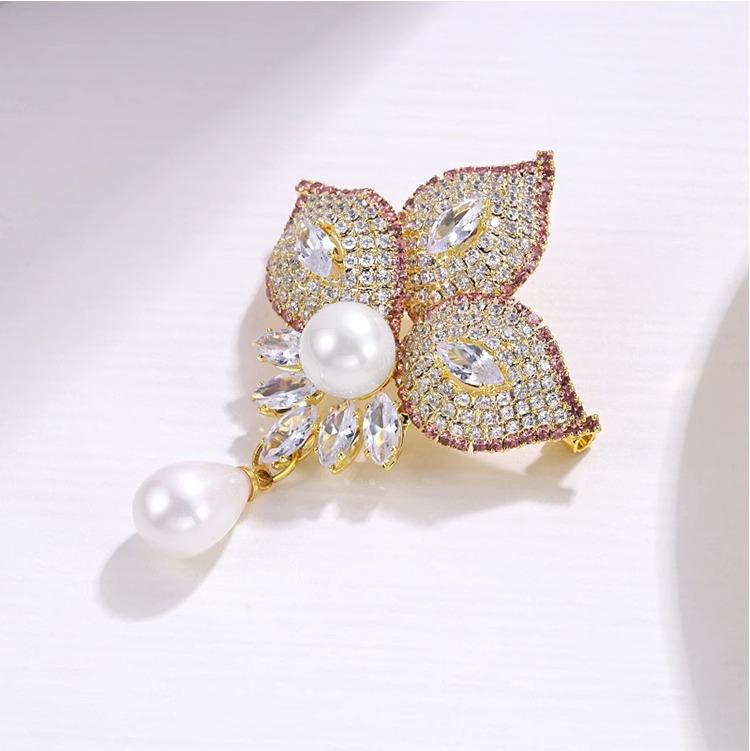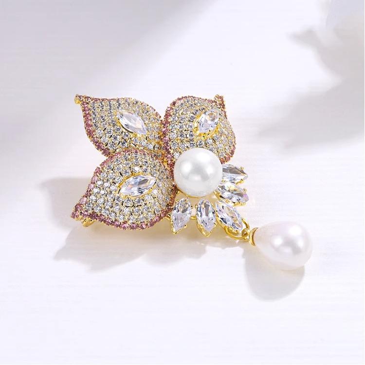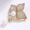 Broche de lujo de alta gama con colgante de flor de circón y perla para chaqueta de mujer, elegante accesorio de ramillete fijo que combina con todo.