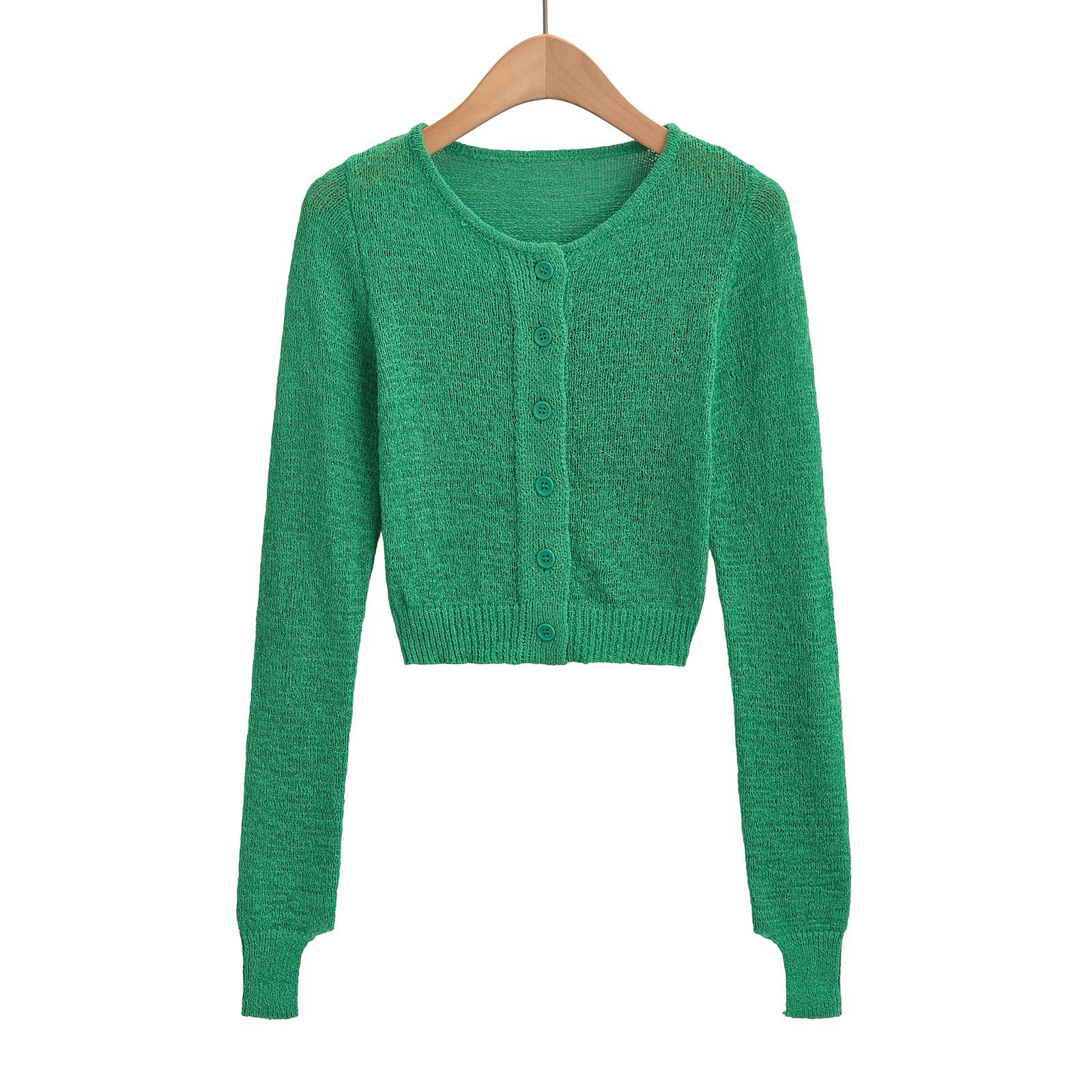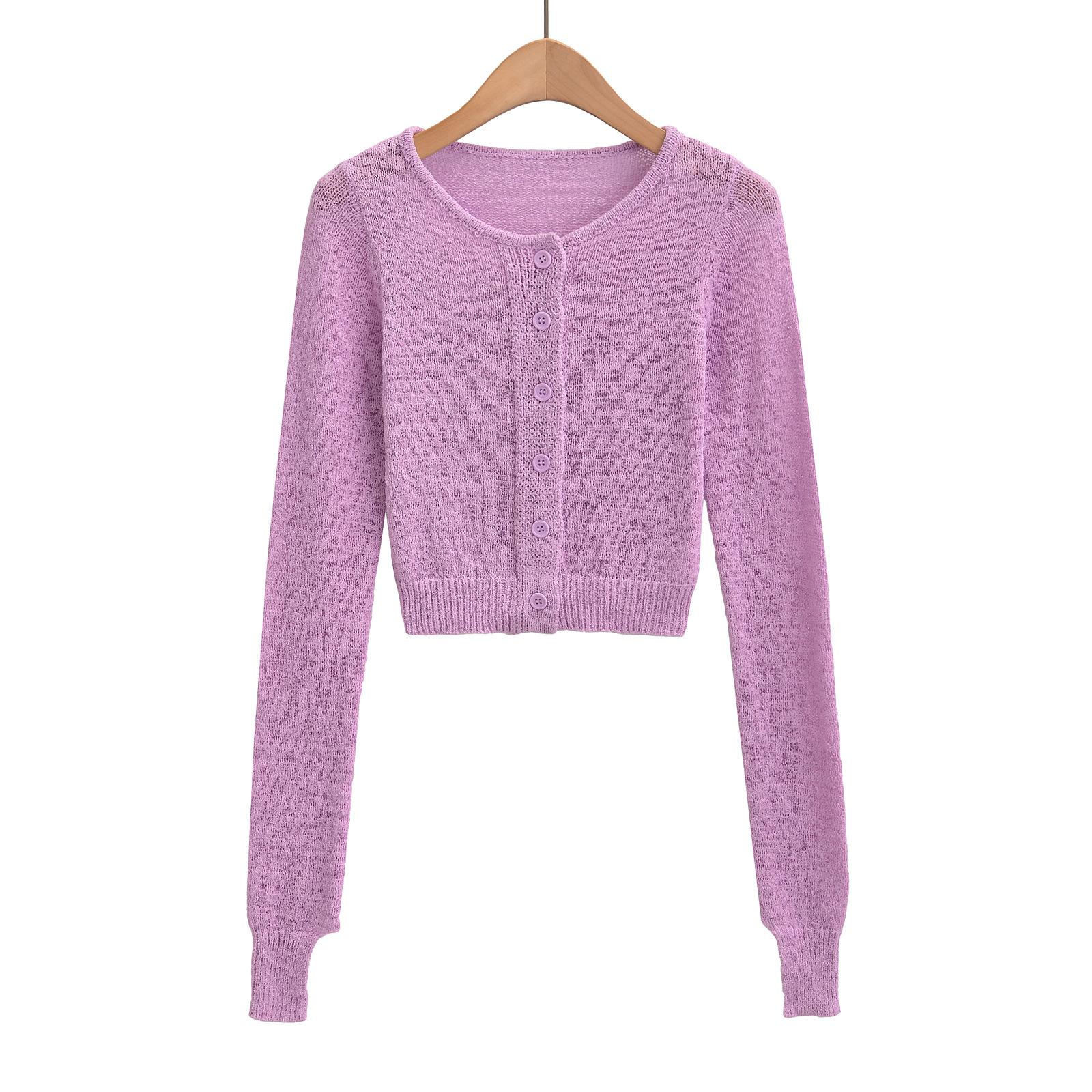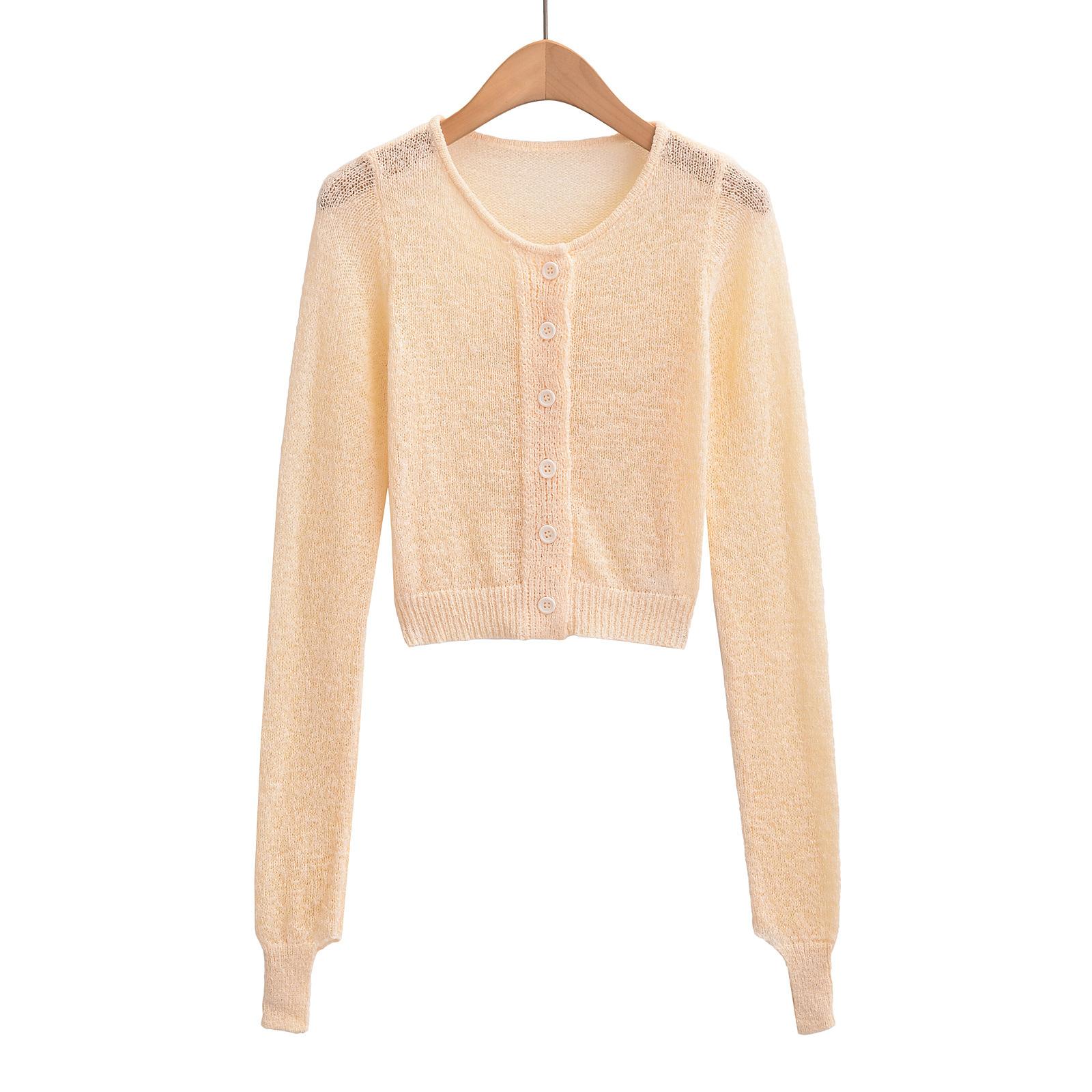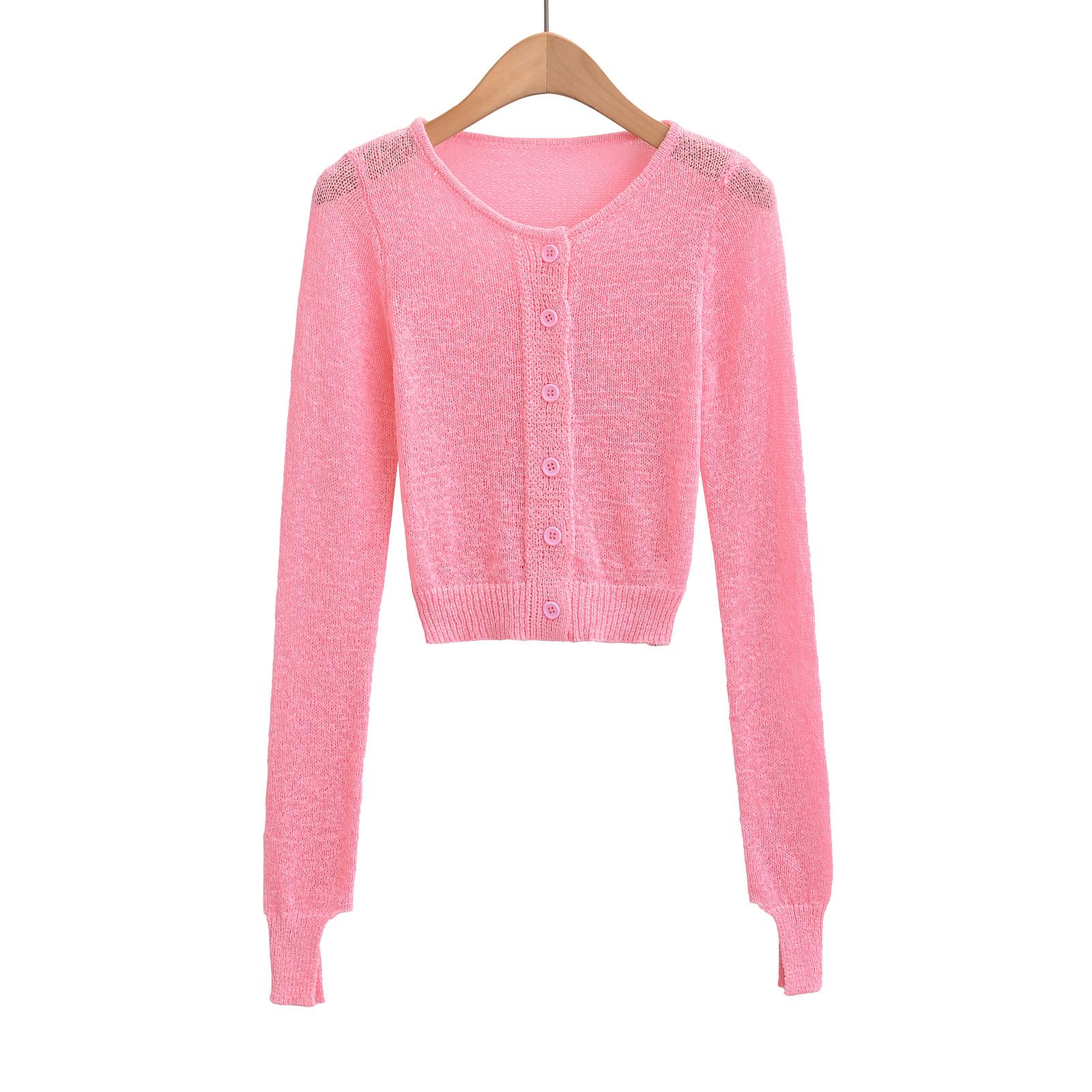 24325-Suéter sexy con cuello en V de estilo europeo y americano para mujer, otoño 2024, nuevo cárdigan ajustado con microtransparente para chicas calientes