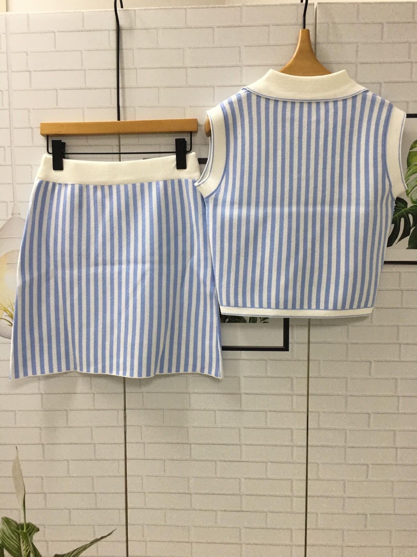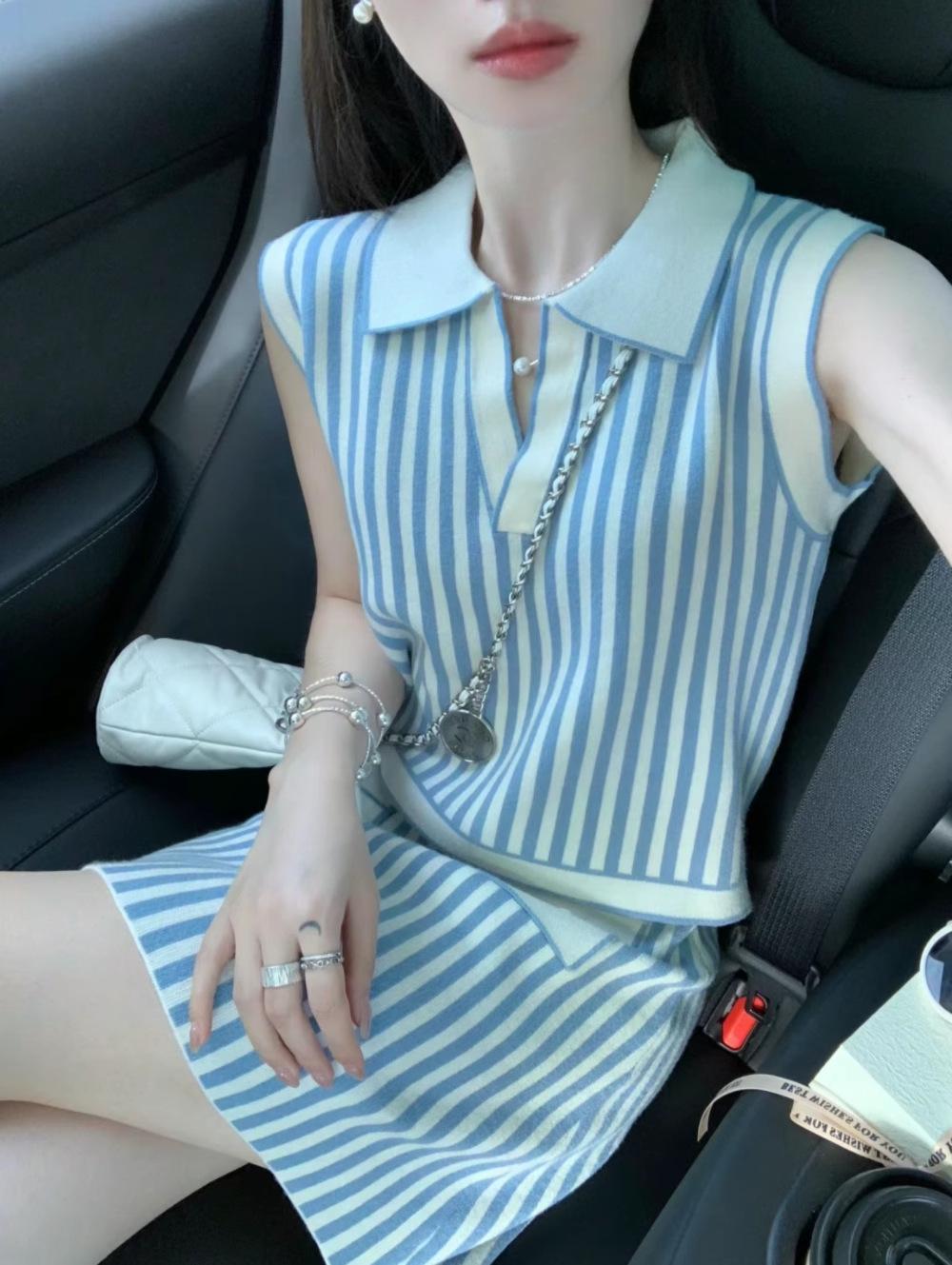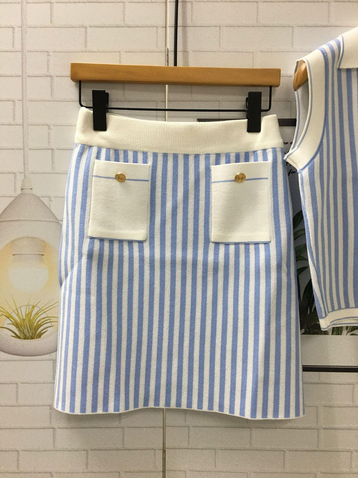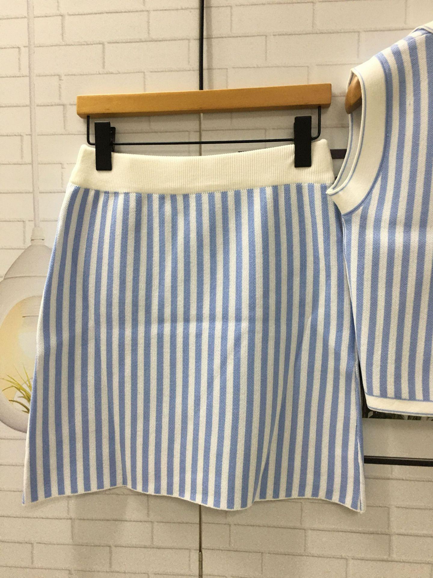 Vestido de verano con un conjunto de moda de alta gama con sensación de estilo pequeño, falda superior a rayas, traje de estilo occidental, traje de dos piezas para mujer