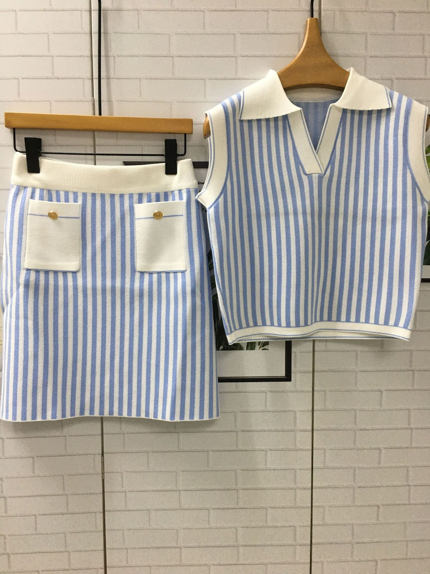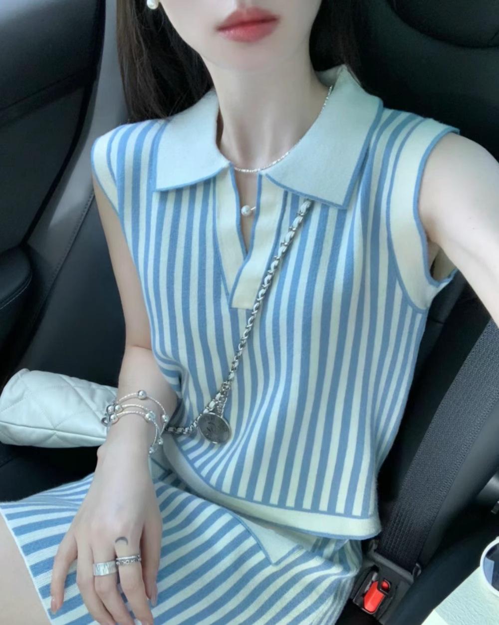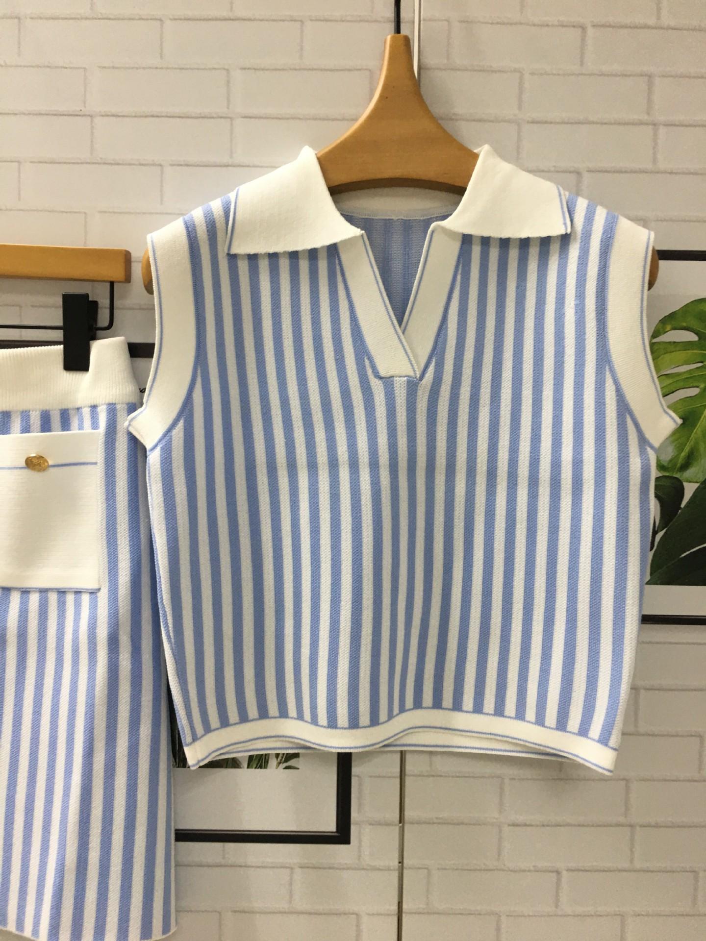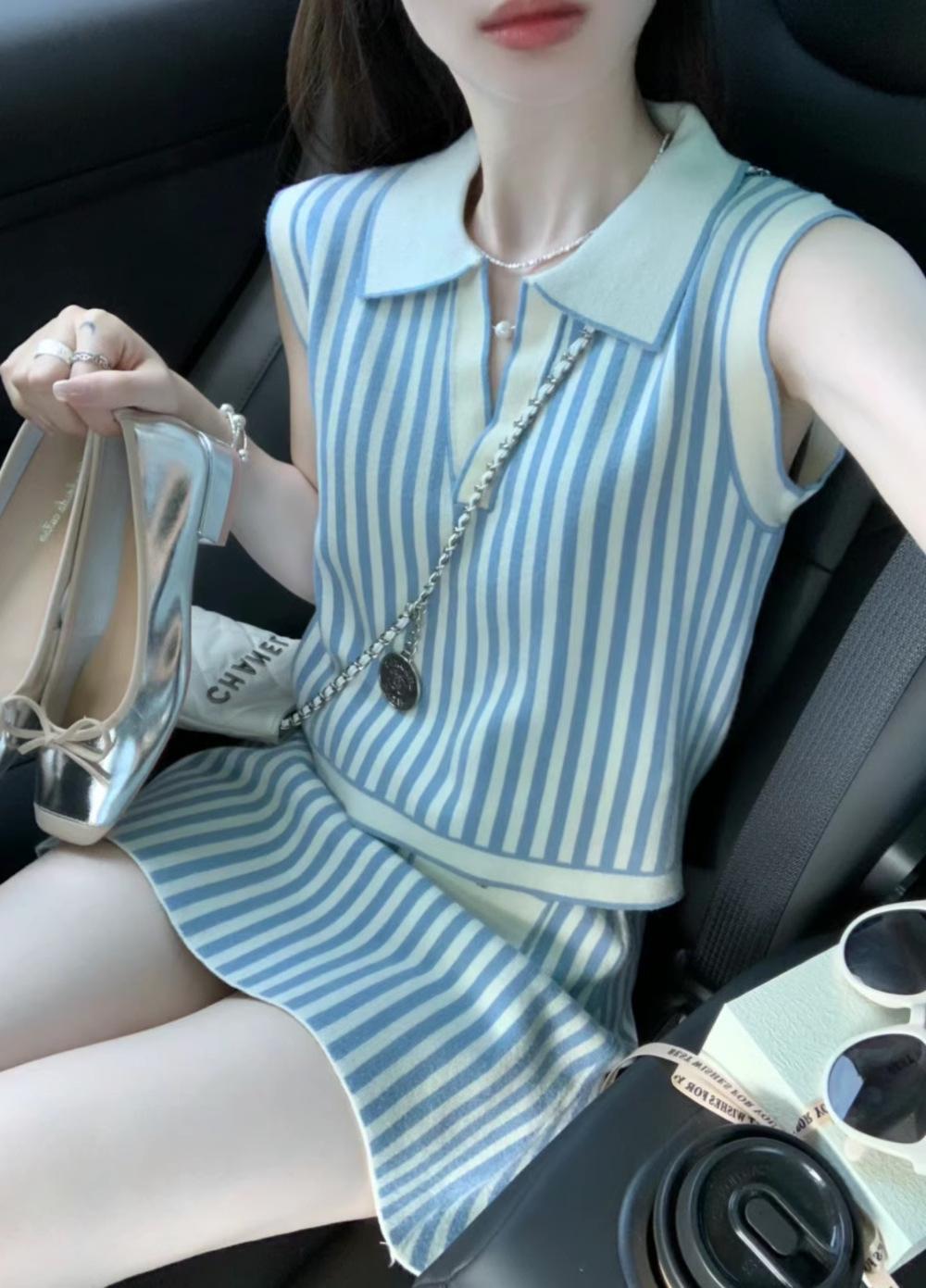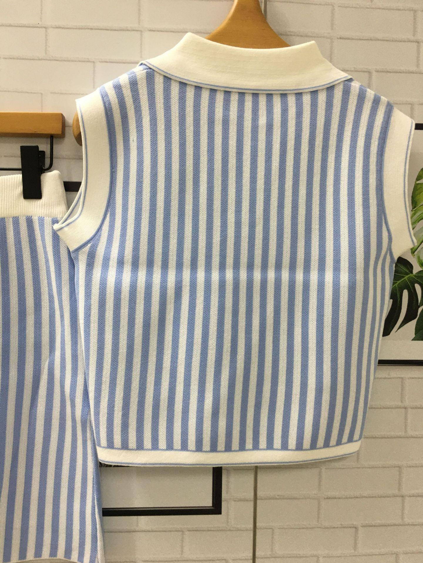 Vestido de verano con un conjunto de moda de alta gama con sensación de estilo pequeño, falda superior a rayas, traje de estilo occidental, traje de dos piezas para mujer