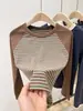 Camiseta de manga larga a rayas de raso para mujer, diseño de primavera y otoño, camisa de base interior con hombros estrechos