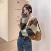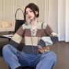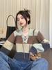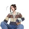 Suéter de Lana de Color en Contraste a Rayas de Otoño e Invierno para Mujer 2025 Nuevo Look Holgado Adelgazante Cuello en V Manga Larga Suéter Corto Base de Cachemira