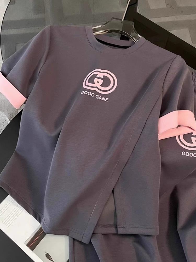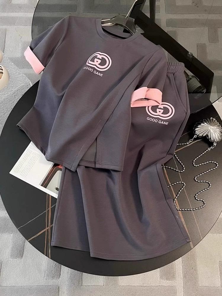Traje de Mujer Estilo Occidental Primavera y Verano 2024 Diseño Casual Sentido de la Moda Nicho Falda de Manga Corta Estampada Conjunto de Dos Piezas a la Moda