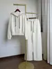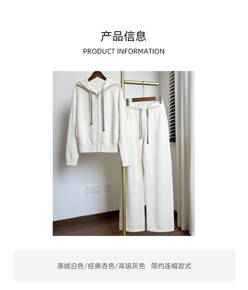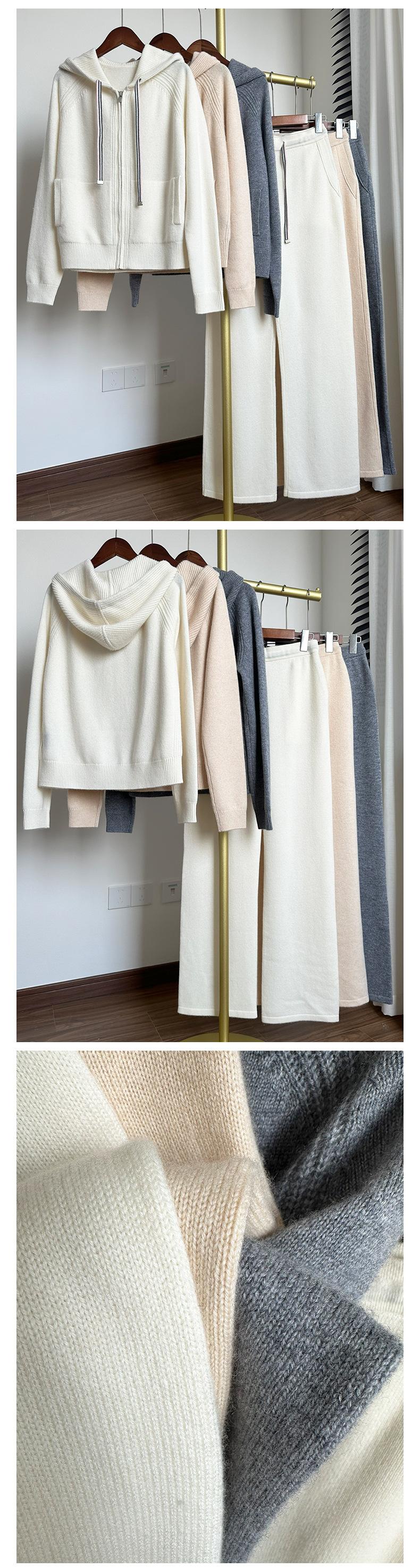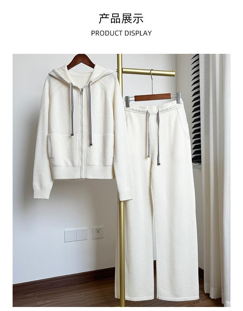 Traje de Cachemira Serie Piloto Old Money Top con Cremallera y Cordón Pantalones Adelgazantes de Cintura Alta Conjunto de Dos Piezas
