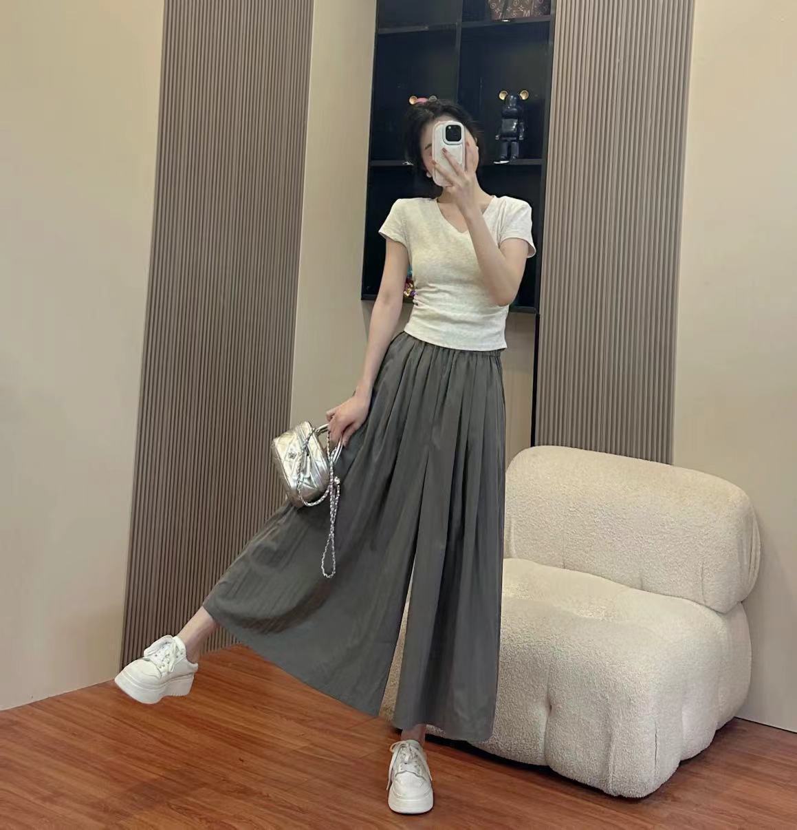 Yamamoto Culottes para Mujer Primavera y Verano Estilo Japonés Cintura Alta Línea A Casual Pantalones de Pierna Ancha Falda para Mujer Moda Falda Plisada Ajustada