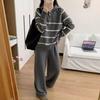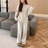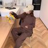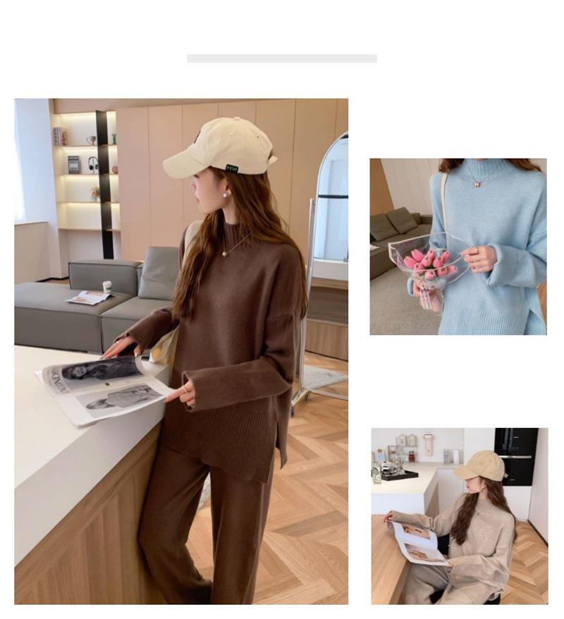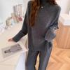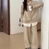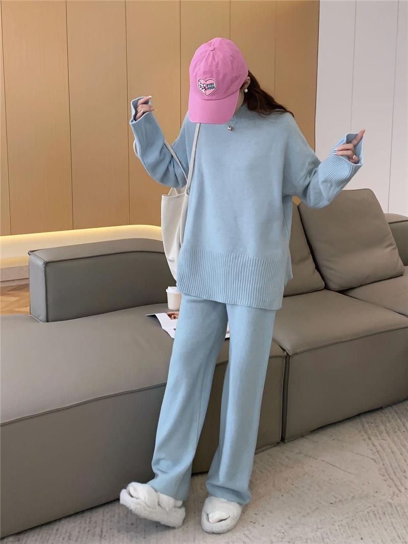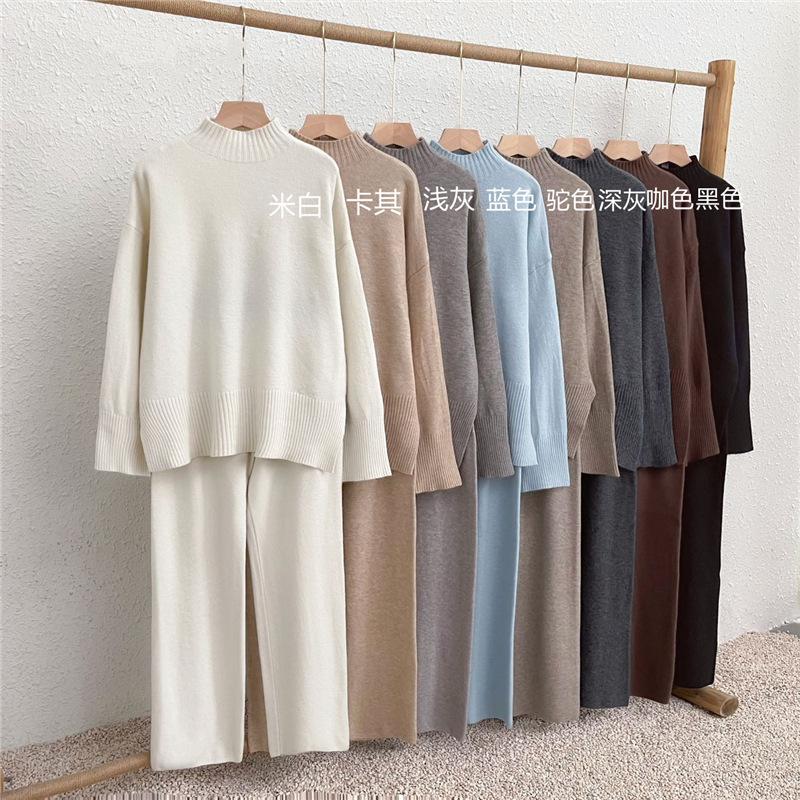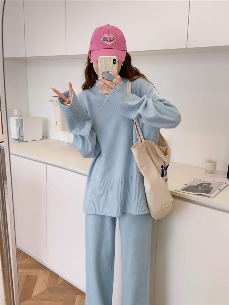 Traje tejido de estilo occidental de moda casual para mujer, otoño e invierno, nuevo, sentido de alta gama, suéter holgado, pantalones de pierna ancha, conjunto de dos piezas