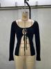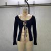 Suéter de manga larga con abertura y corte bajo para mujer, estilo europeo y americano, de AliExpress.