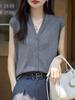 Otoño Nuevo Chaleco de Punto de Lana para Mujer Estilo Urbano Cuello en V Sin Mangas Top Elegante para Ir al Trabajo Cárdigan Chaleco Camiseta