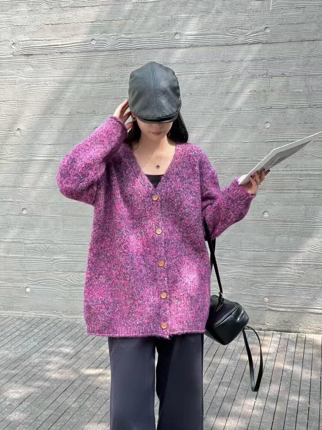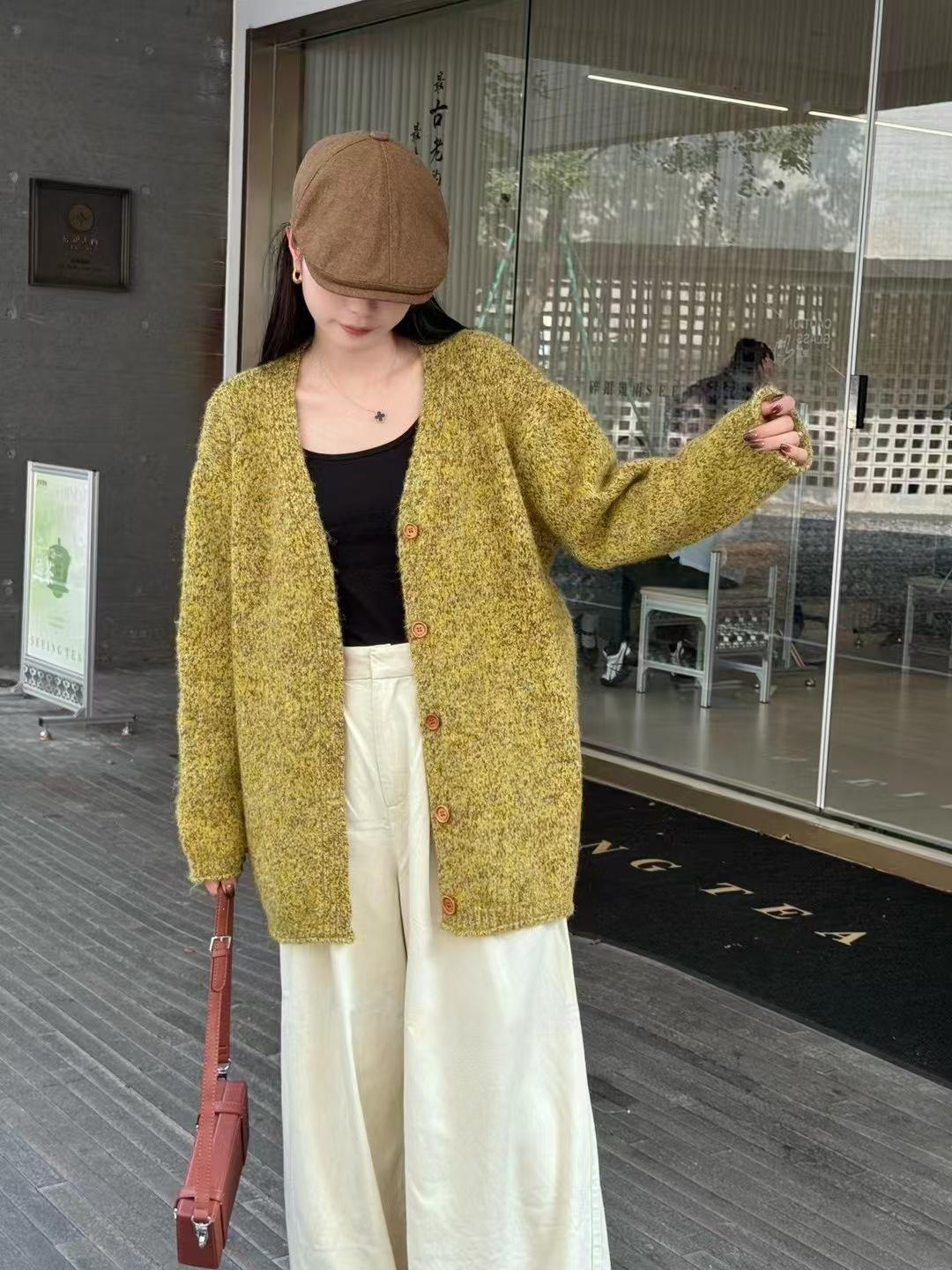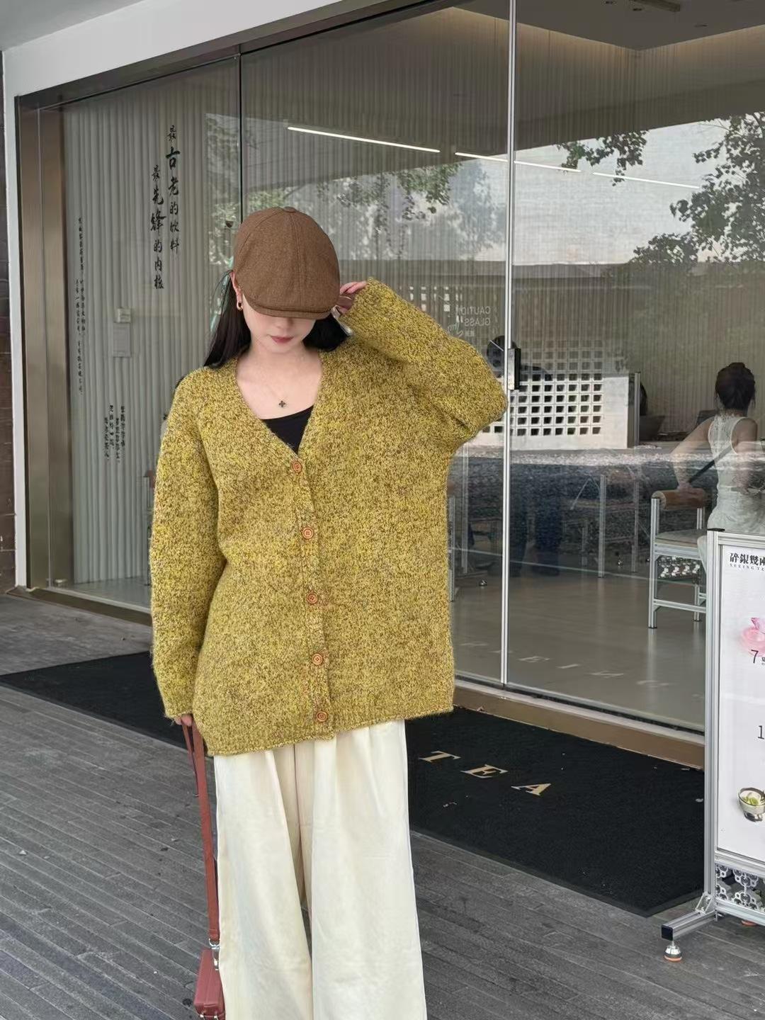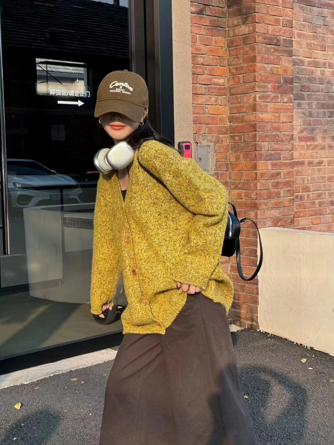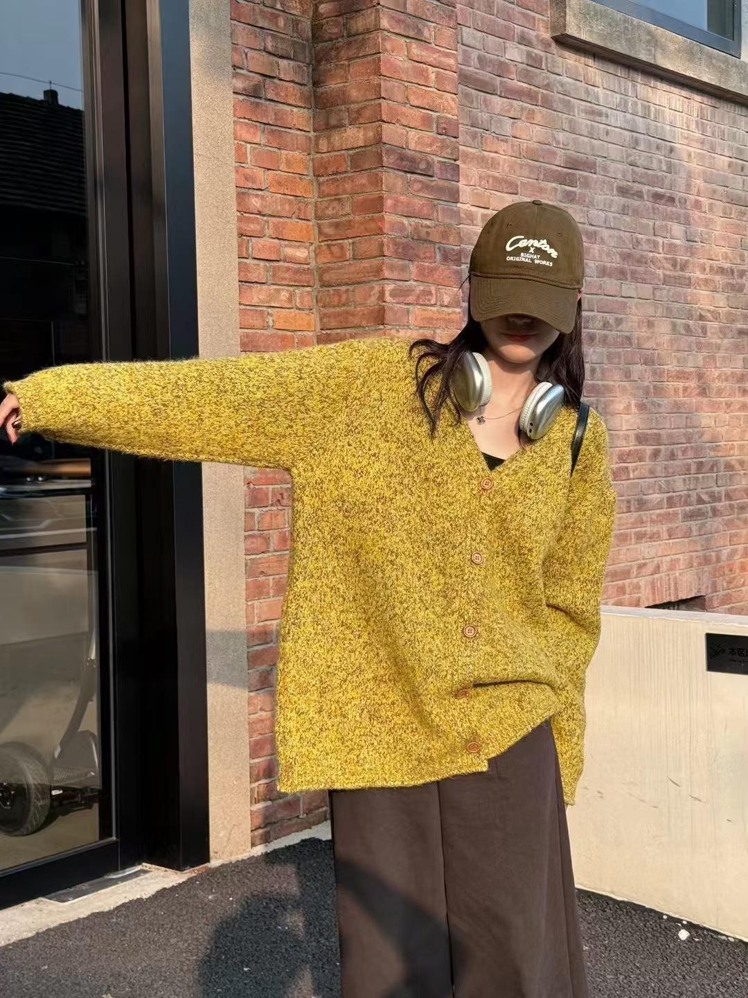 Cárdigan de punto retro holgado de estilo coreano, otoño e invierno de 2024, suave, encerado, de alta gama, estilo perezoso, abrigo de moda para mujer