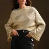 Ropa de Mujer Europea y Americana Transfronteriza Primavera Nuevo Estilo Estilo Europeo y Americano de Punto de Cuello Redondo Metálico de Longitud Media