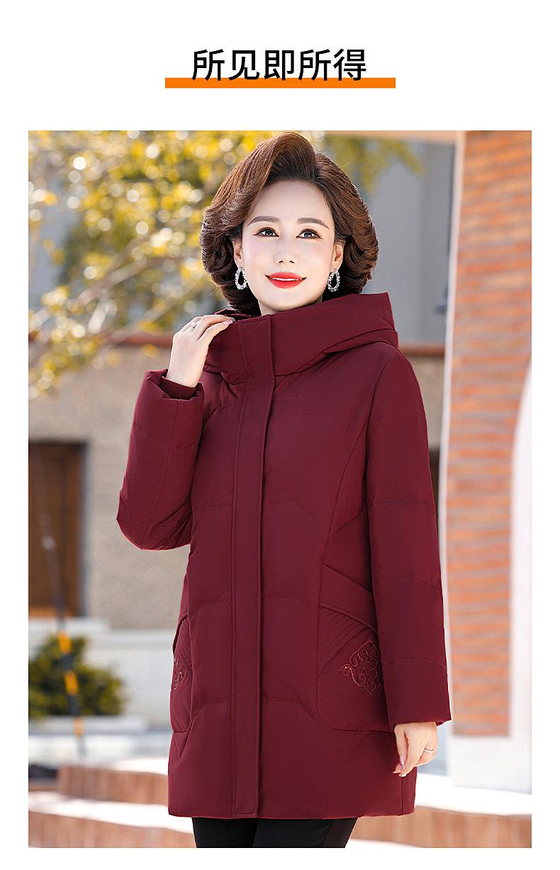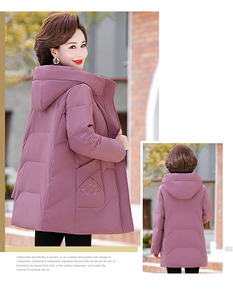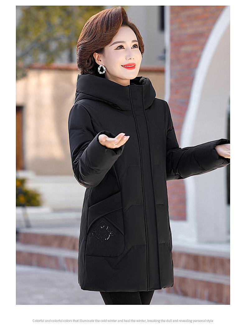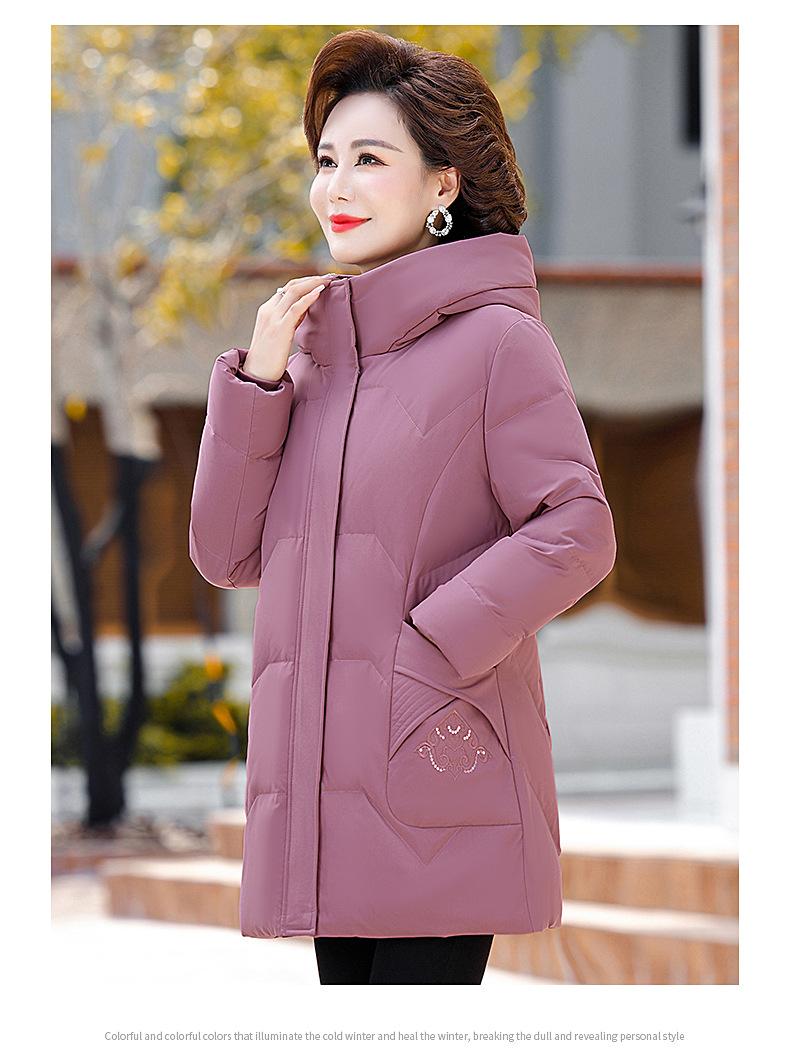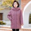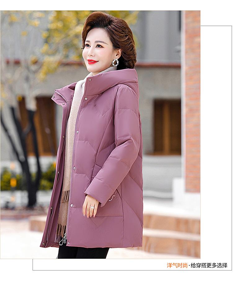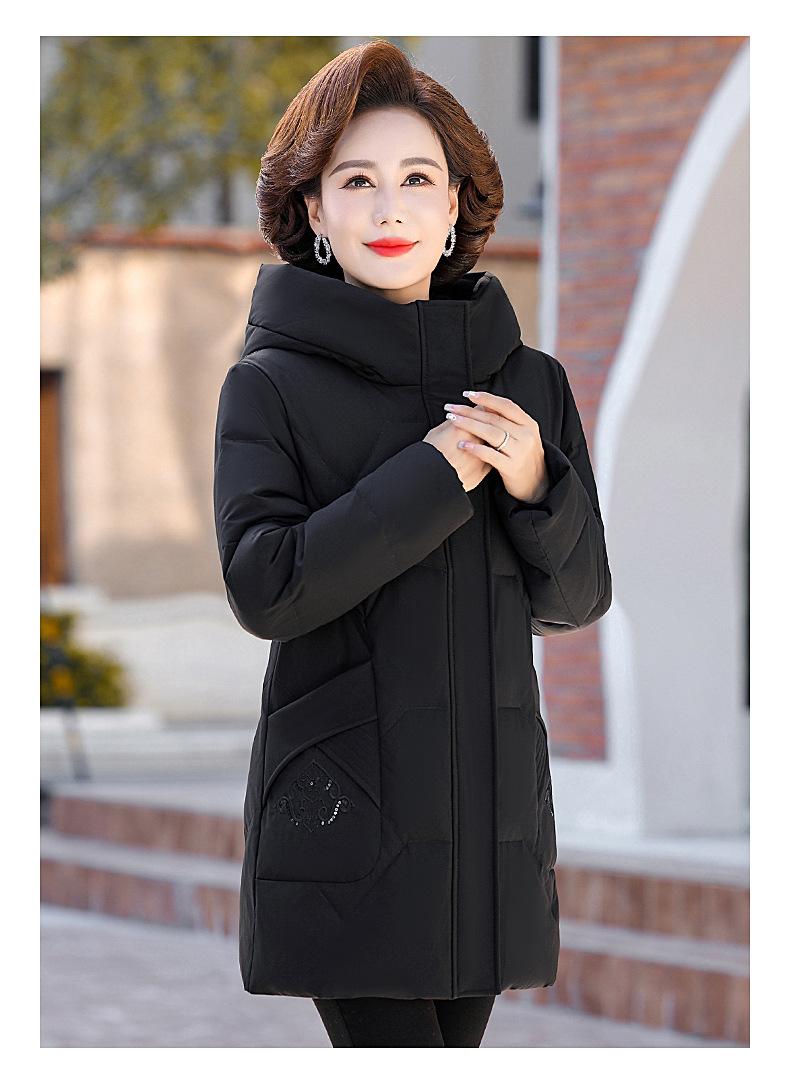 Abrigo de plumón de pato blanco cálido de estilo occidental moderno para madres de mediana edad y mayores, nueva chaqueta de plumón larga con capucha para mujer para invierno