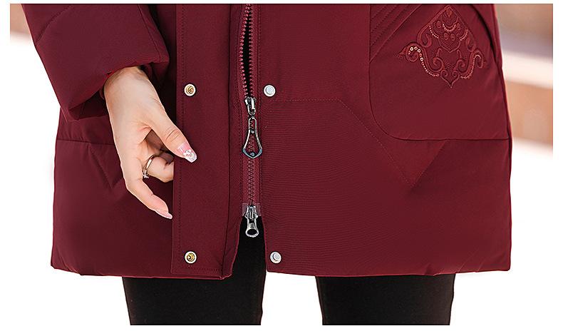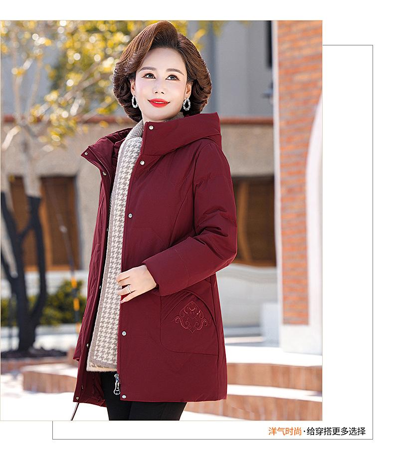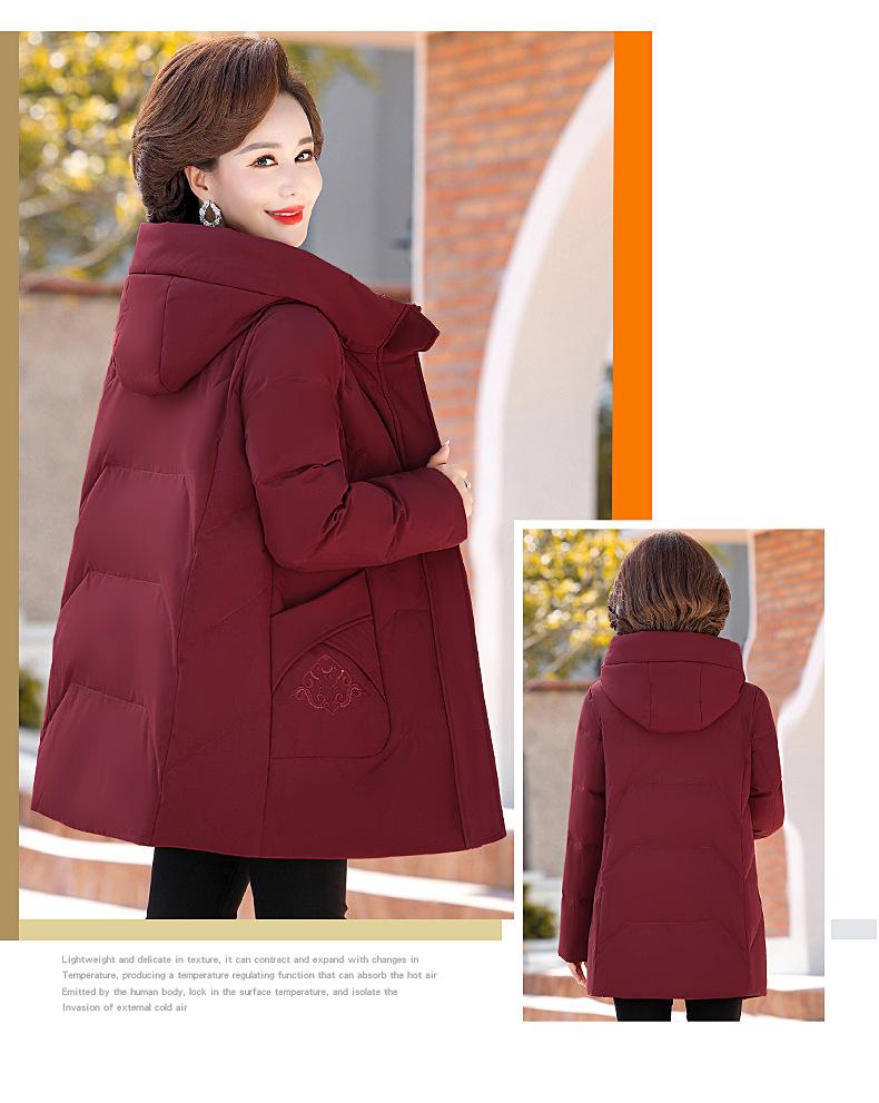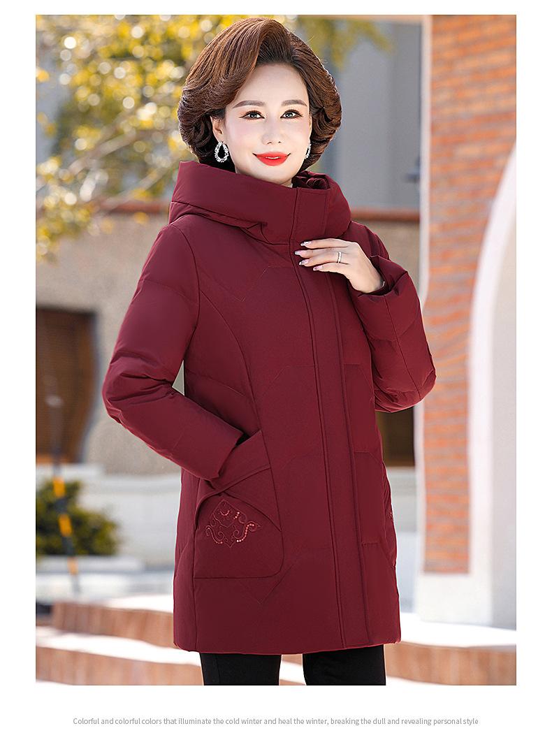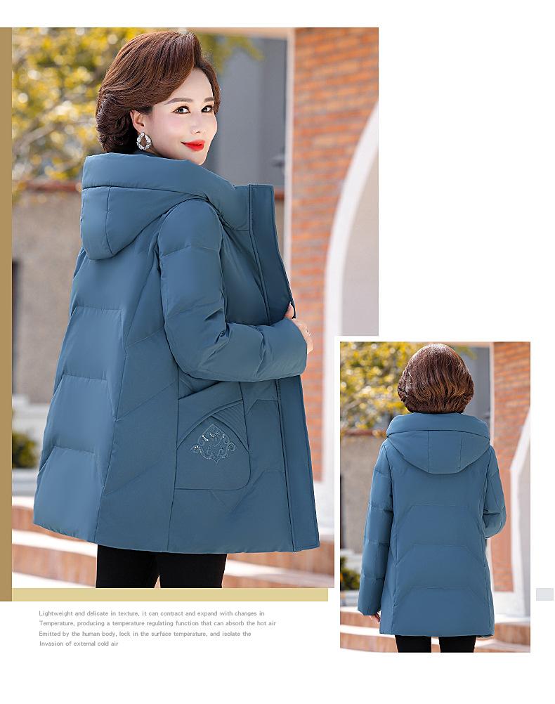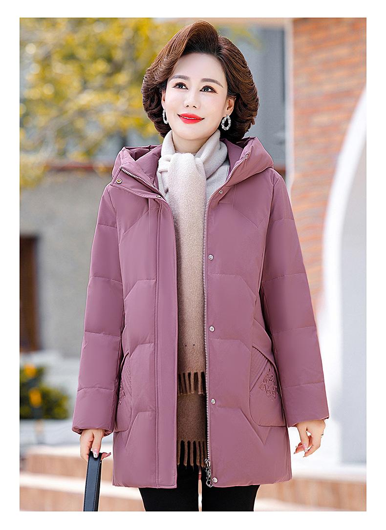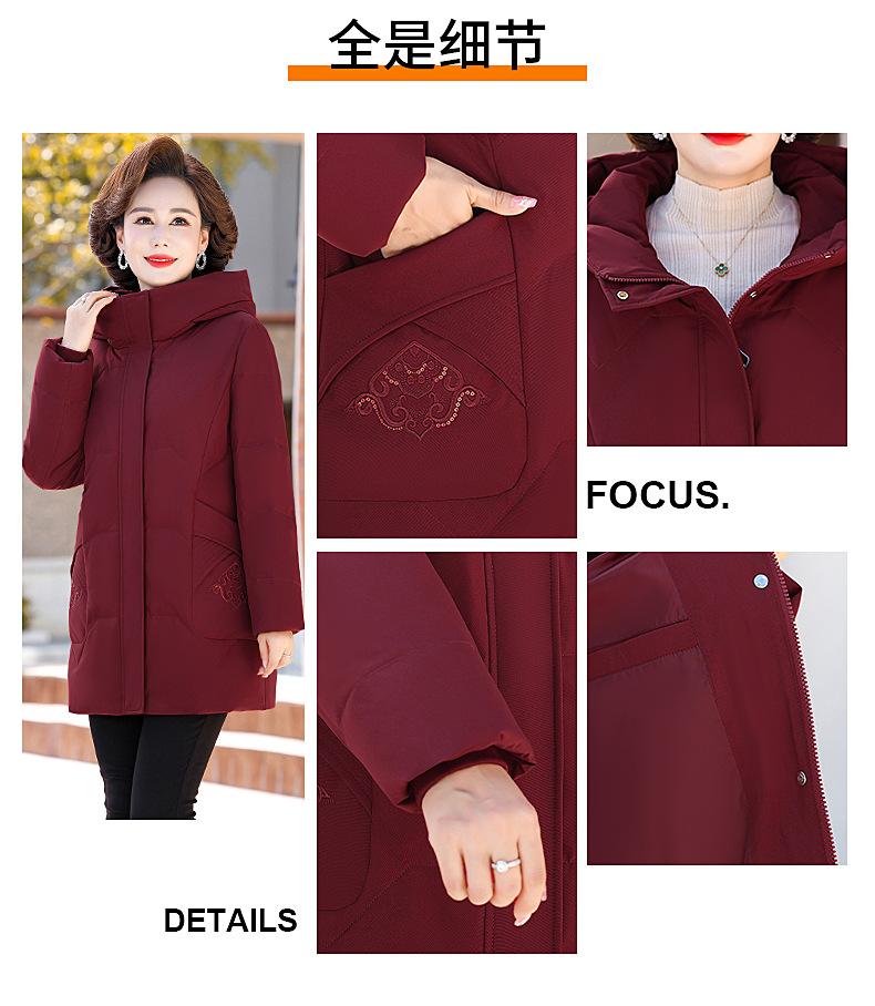 Abrigo de plumón de pato blanco cálido de estilo occidental moderno para madres de mediana edad y mayores, nueva chaqueta de plumón larga con capucha para mujer para invierno