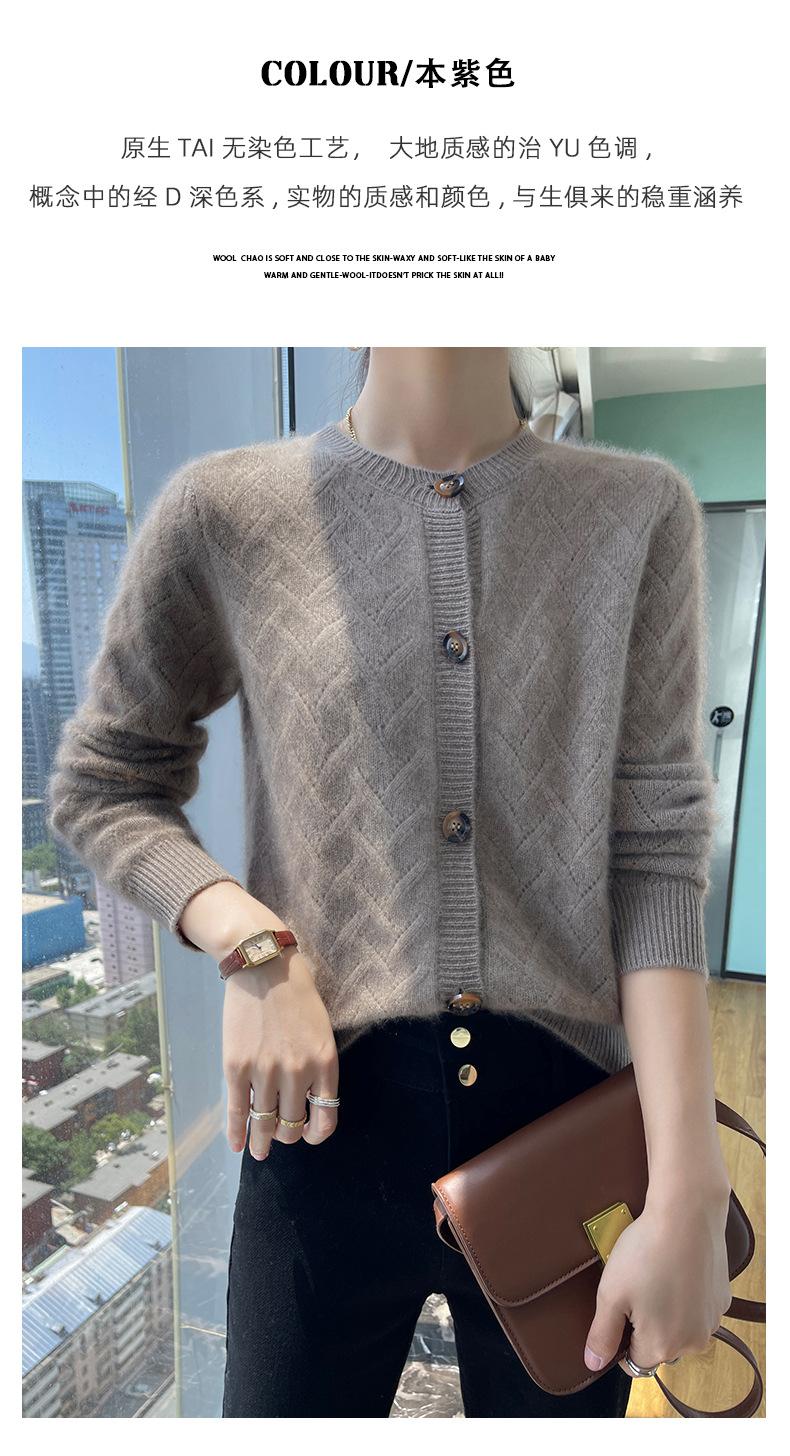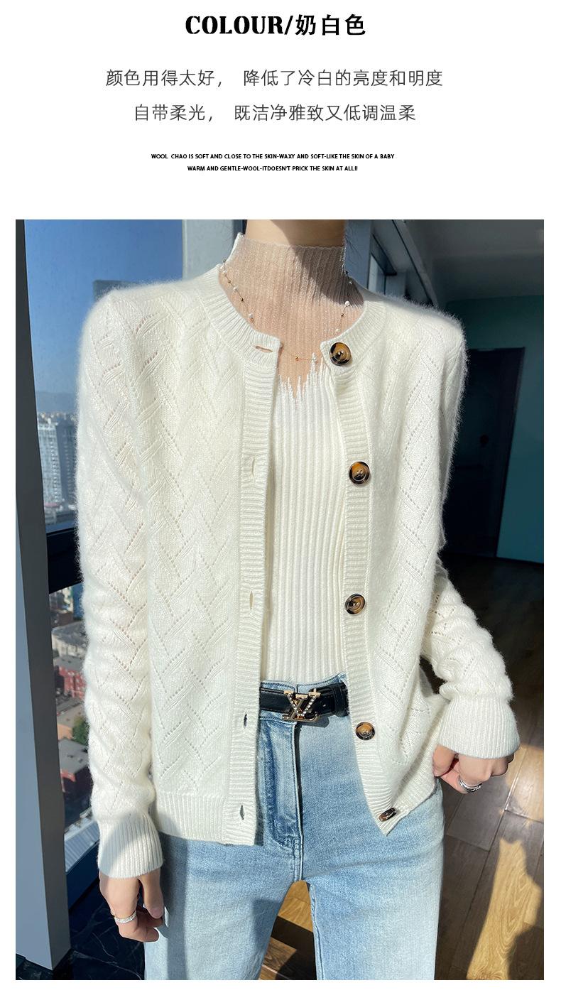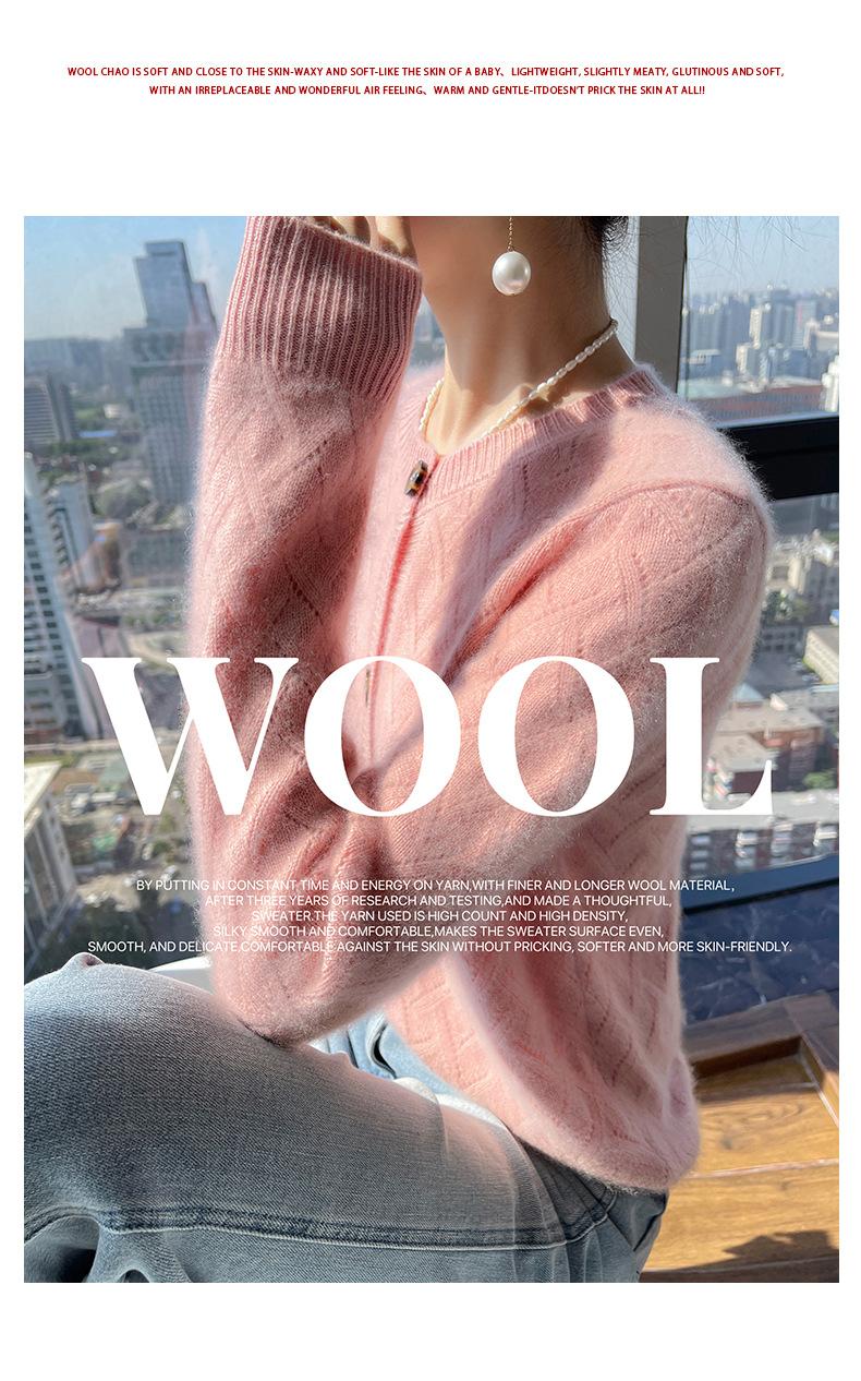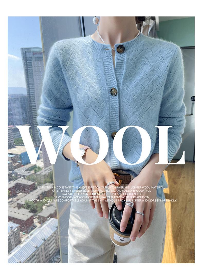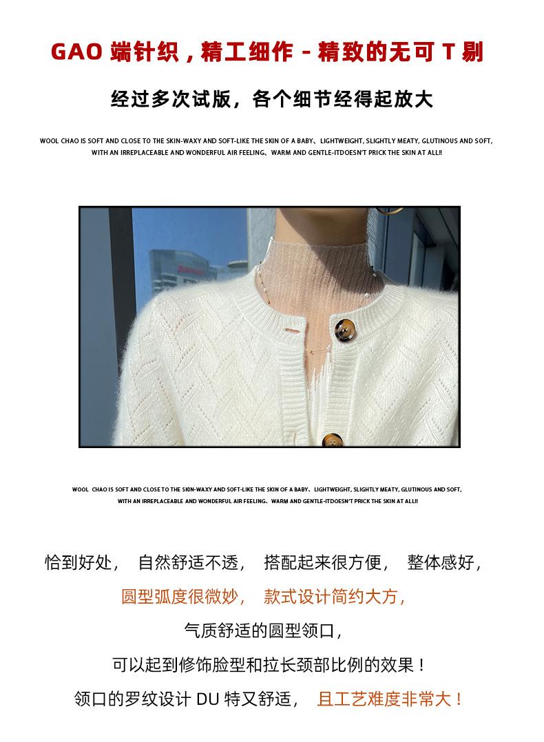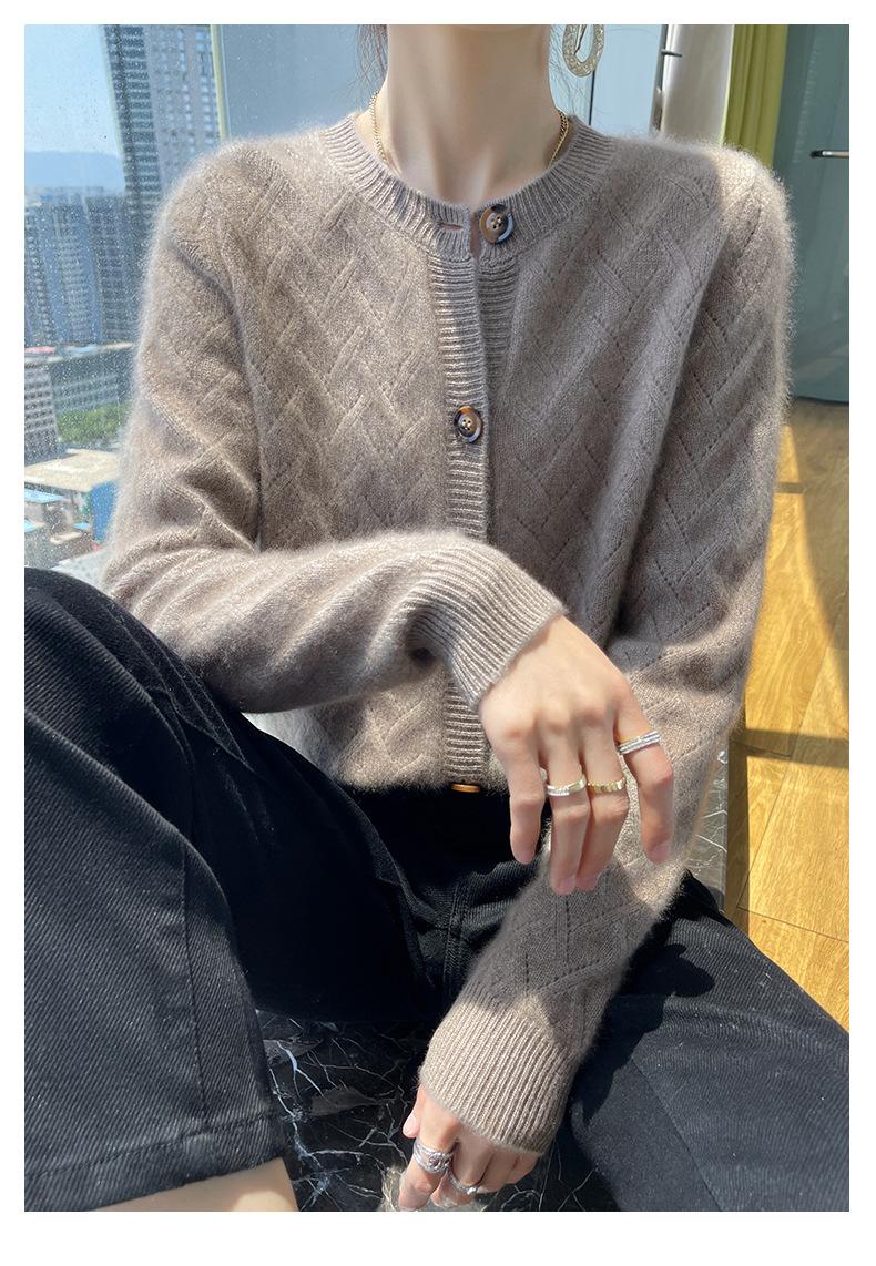 Suéter de Lana Pura Otoño e Invierno Nuevo para Mujer Corto Suelto Cuello Redondo Color Sólido Hebilla Suéter de Lana Suéter Tejido Abrigo de Moda