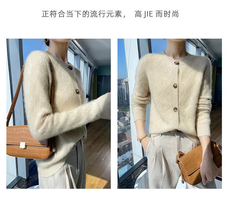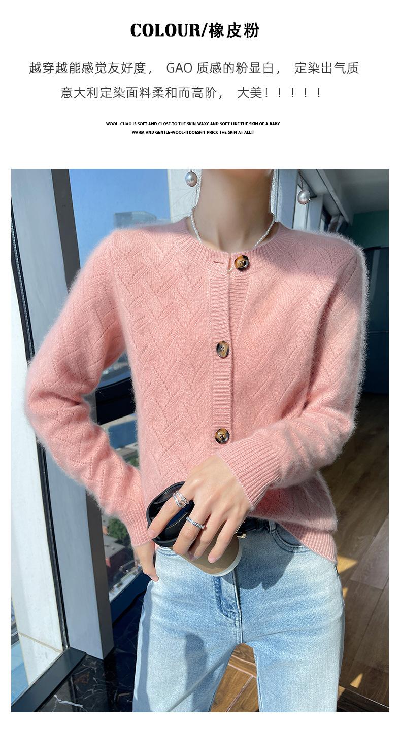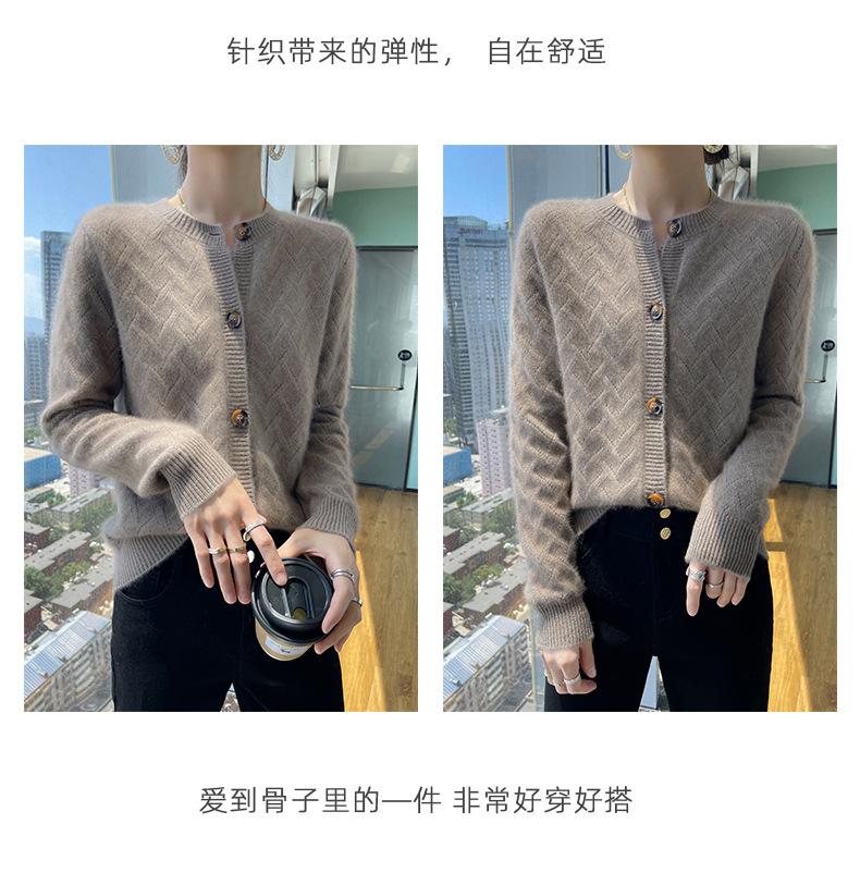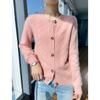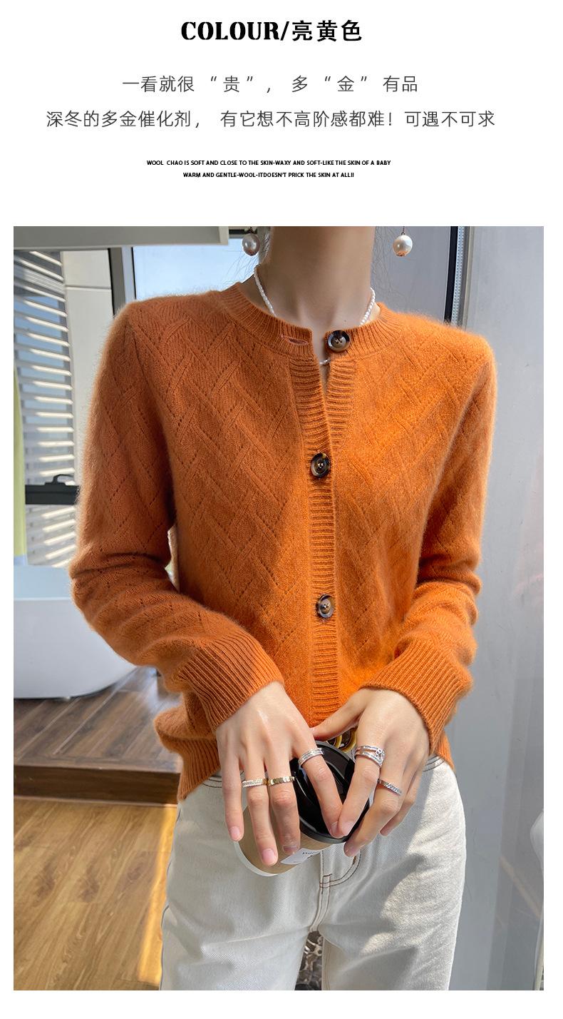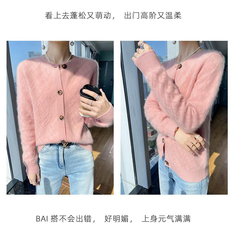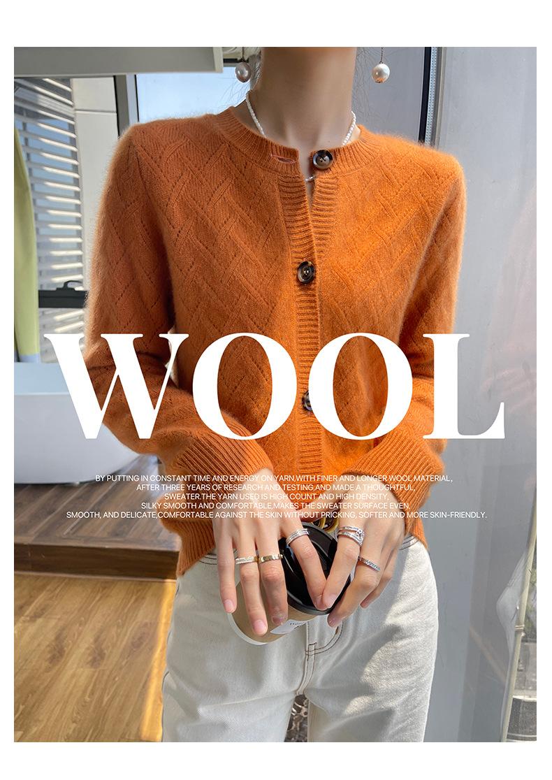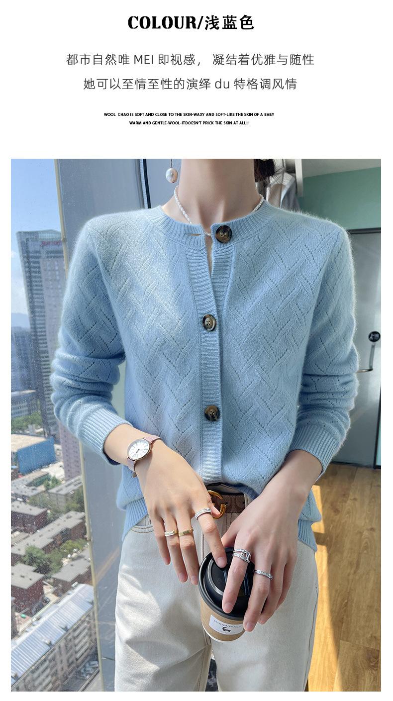 Suéter de Lana Pura Otoño e Invierno Nuevo para Mujer Corto Suelto Cuello Redondo Color Sólido Hebilla Suéter de Lana Suéter Tejido Abrigo de Moda