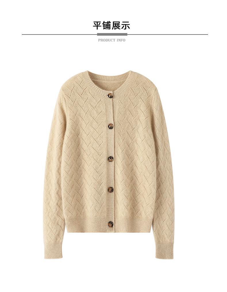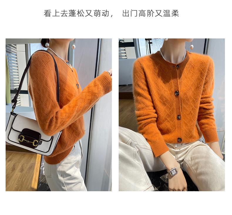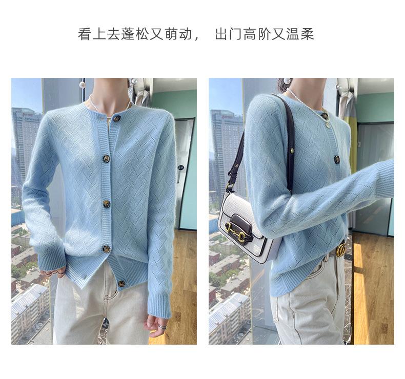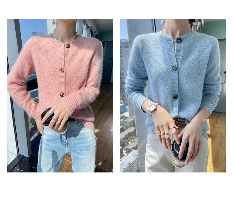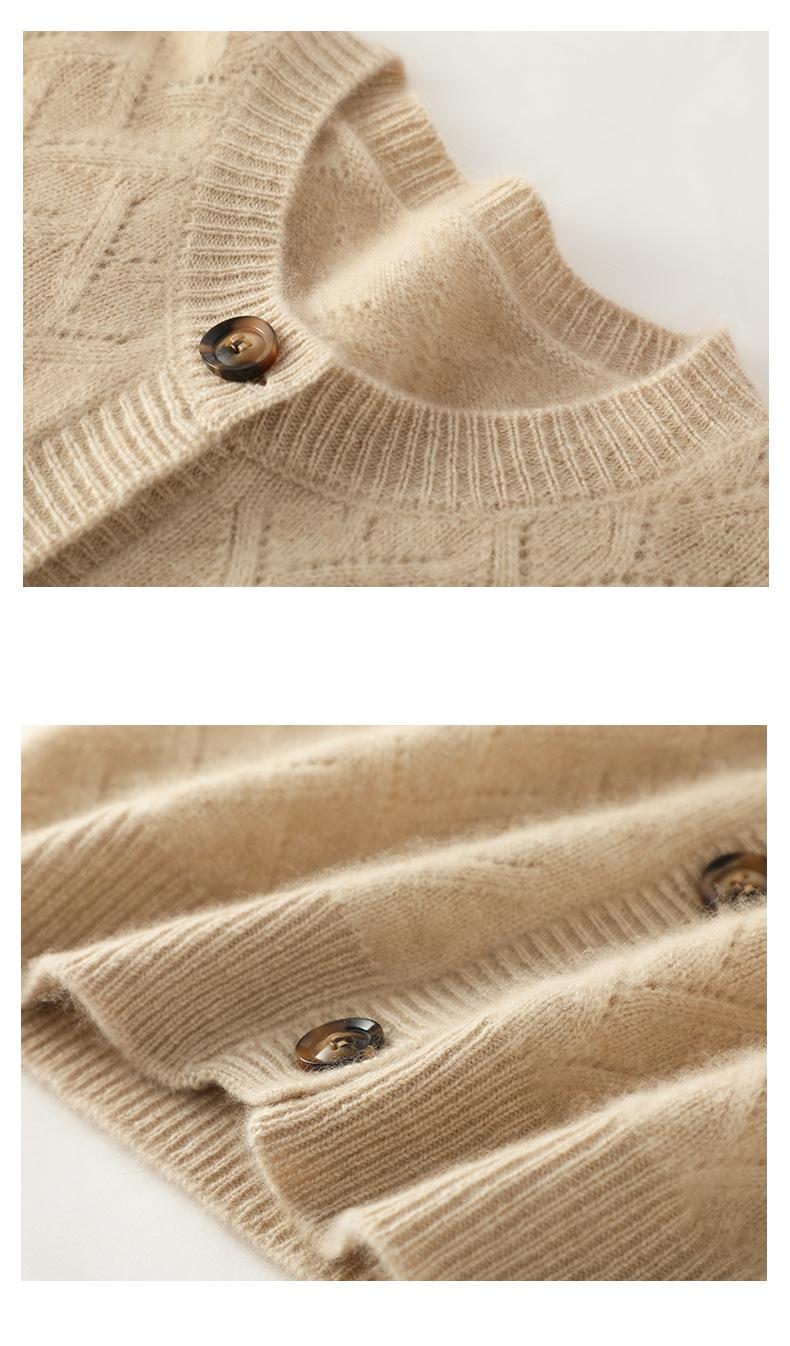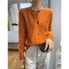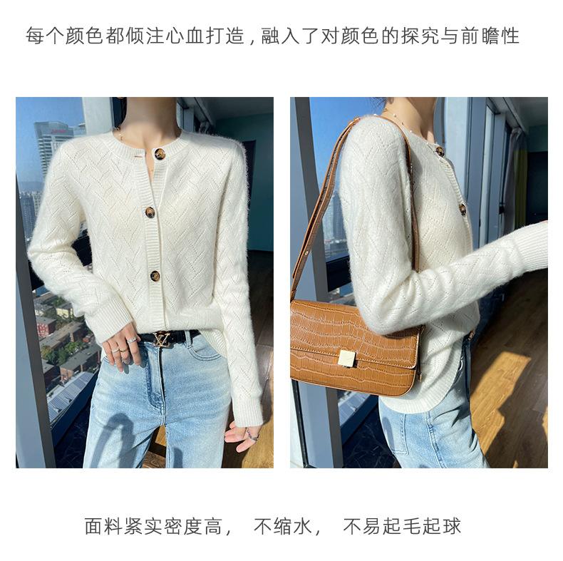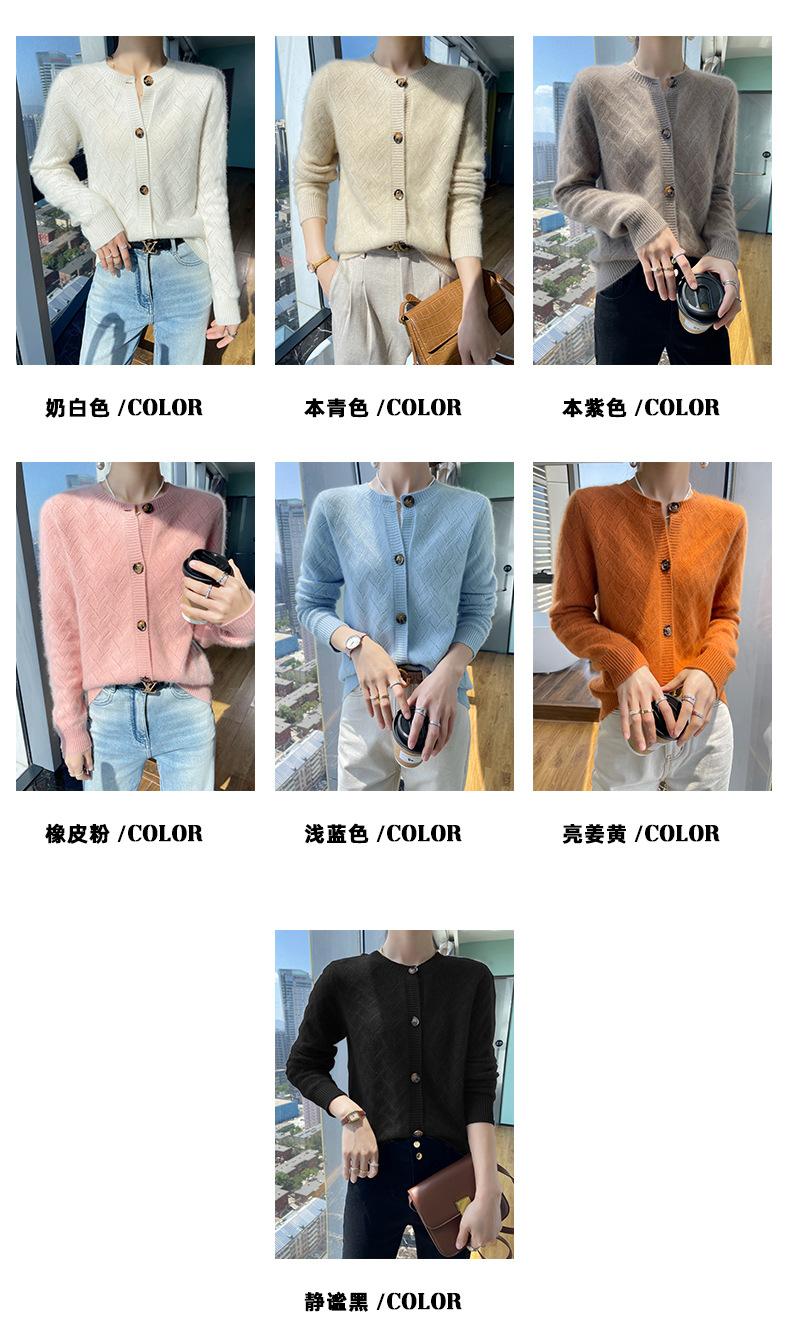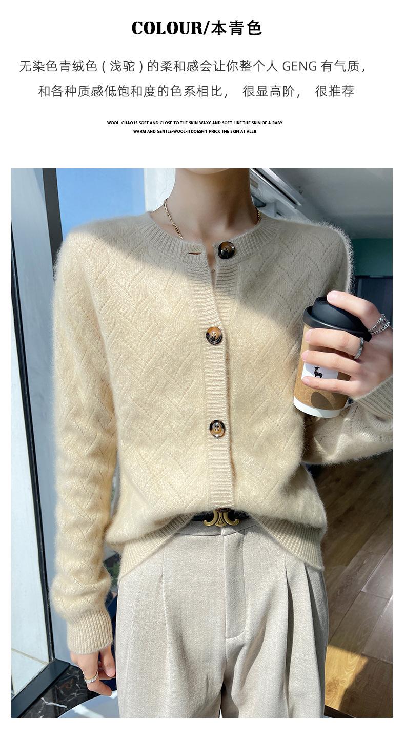Suéter de Lana Pura Otoño e Invierno Nuevo para Mujer Corto Suelto Cuello Redondo Color Sólido Hebilla Suéter de Lana Suéter Tejido Abrigo de Moda