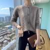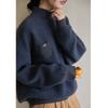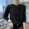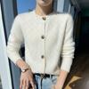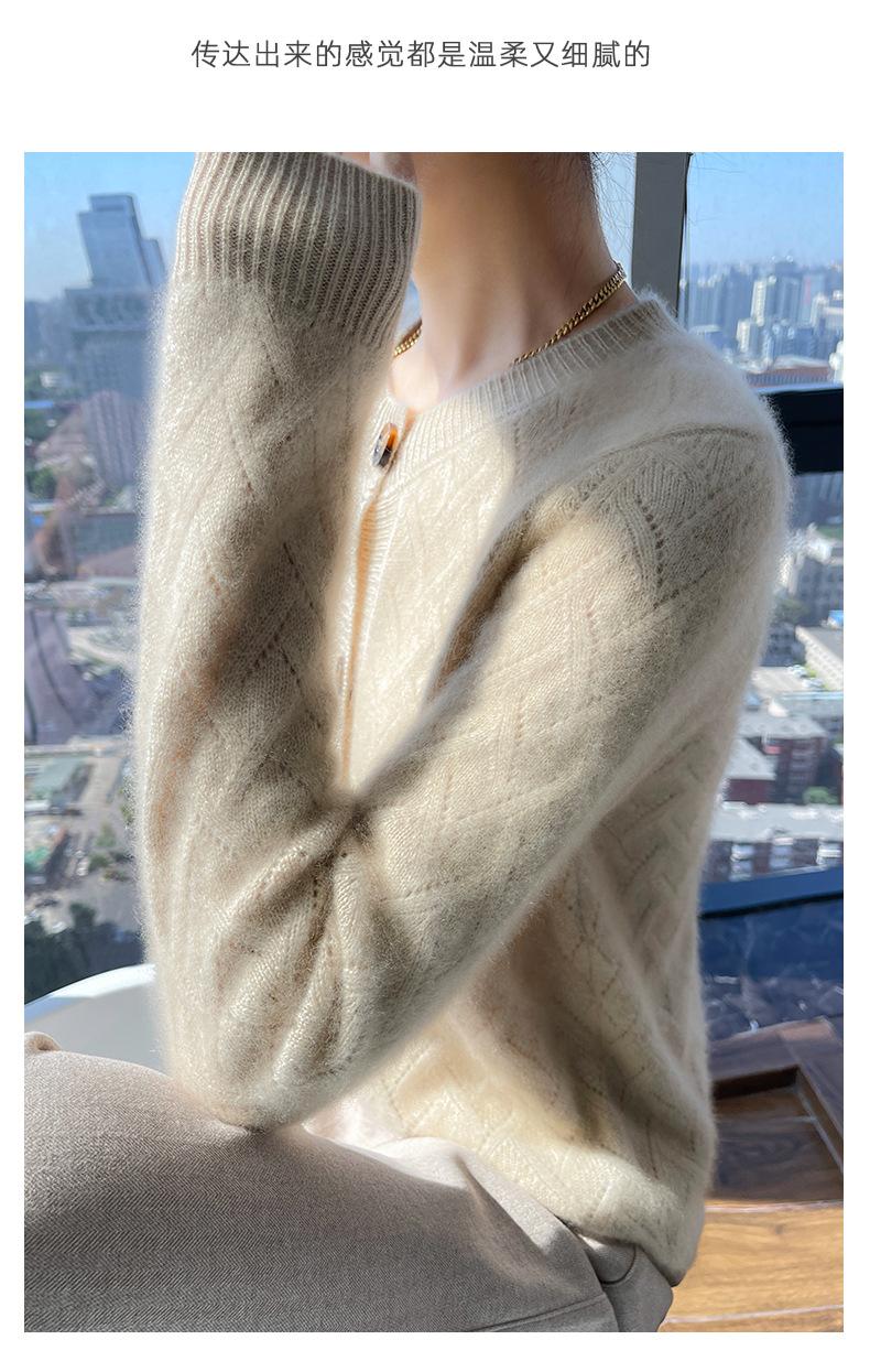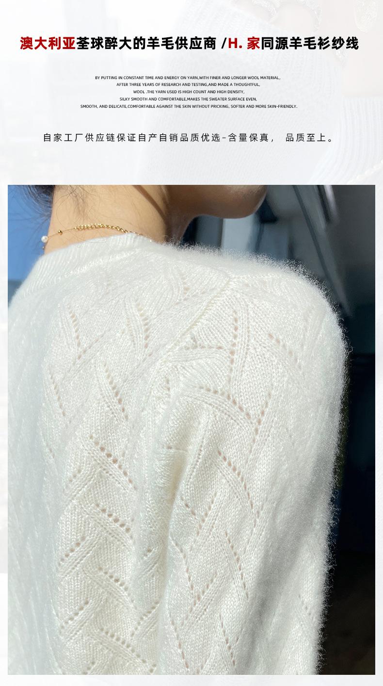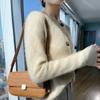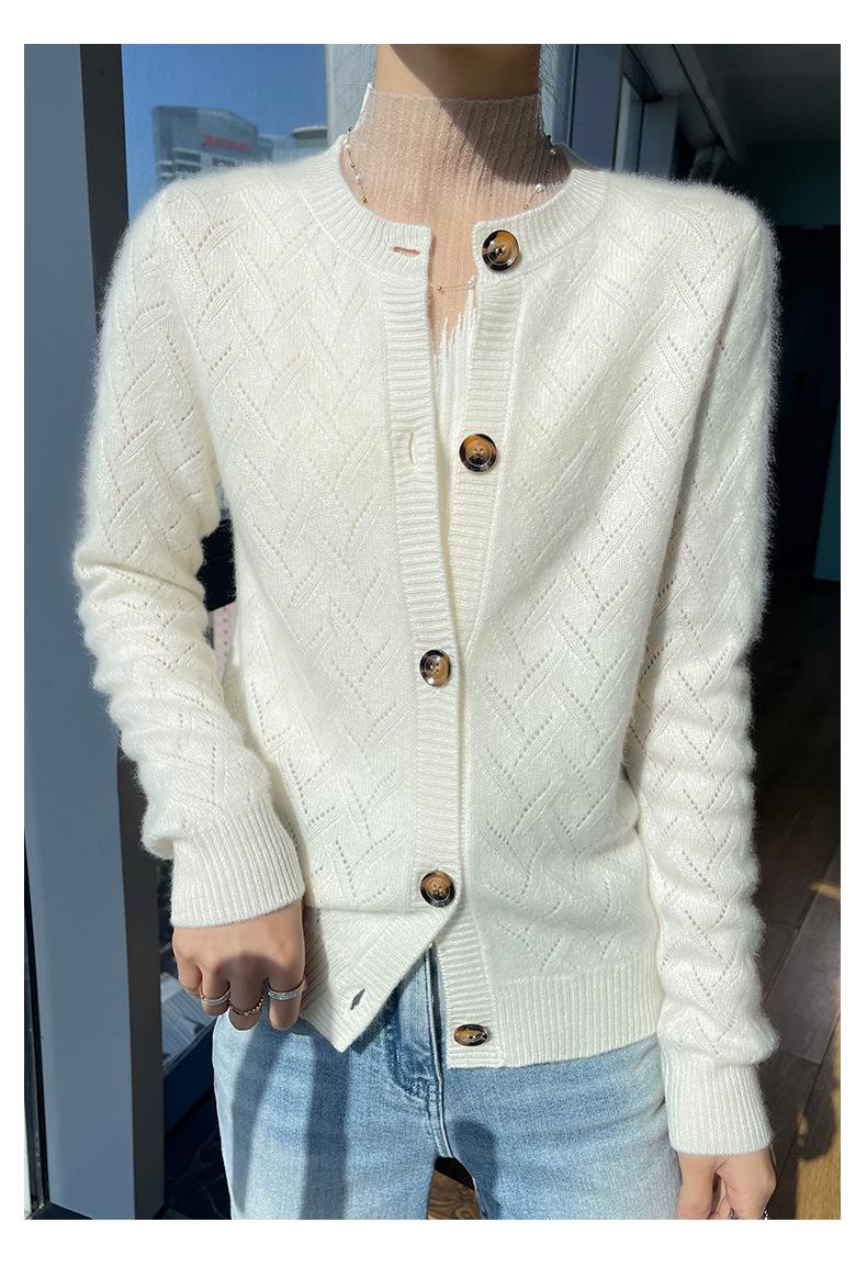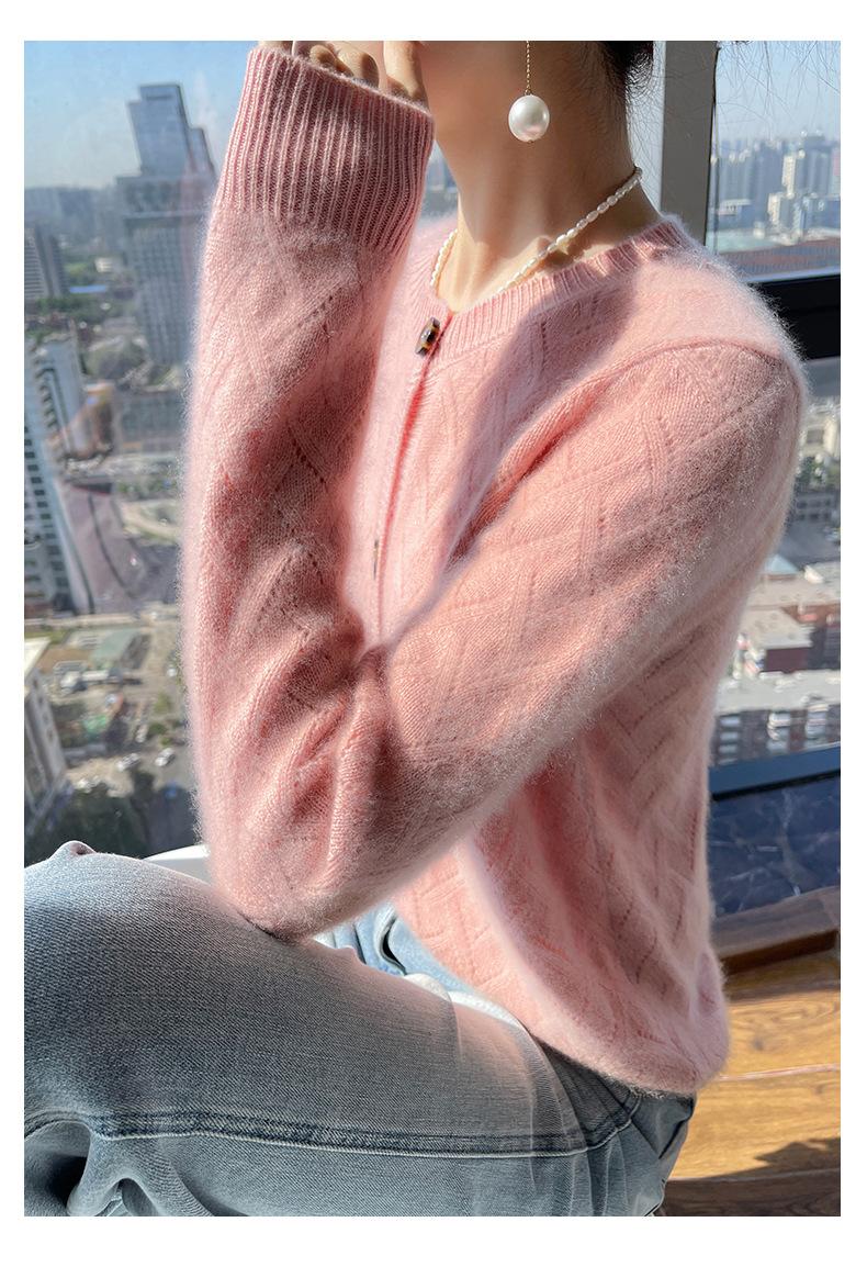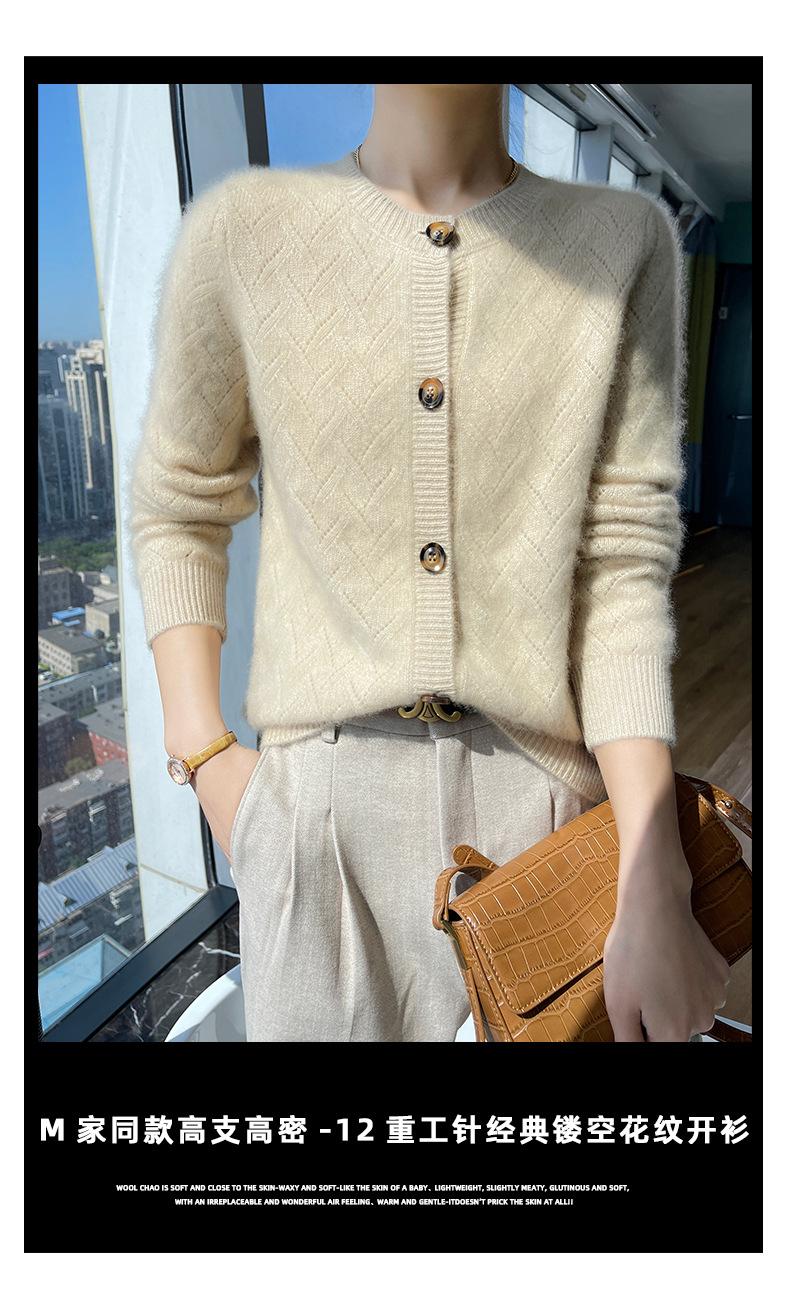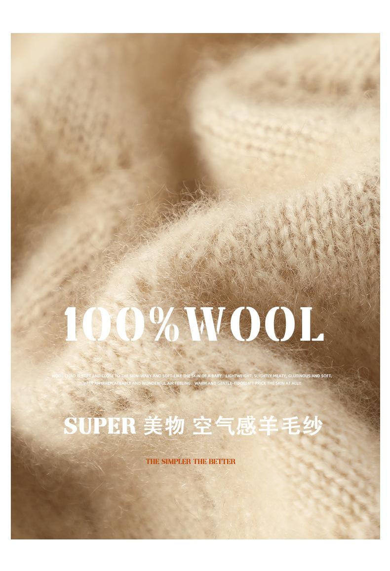 Suéter de Lana Pura Otoño e Invierno Nuevo para Mujer Corto Suelto Cuello Redondo Color Sólido Hebilla Suéter de Lana Suéter Tejido Abrigo de Moda
