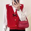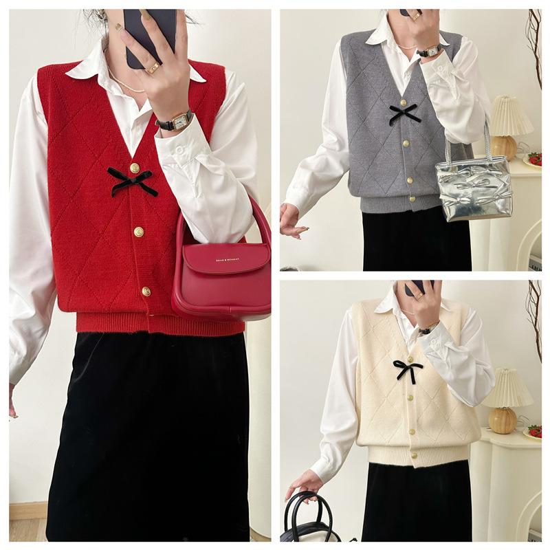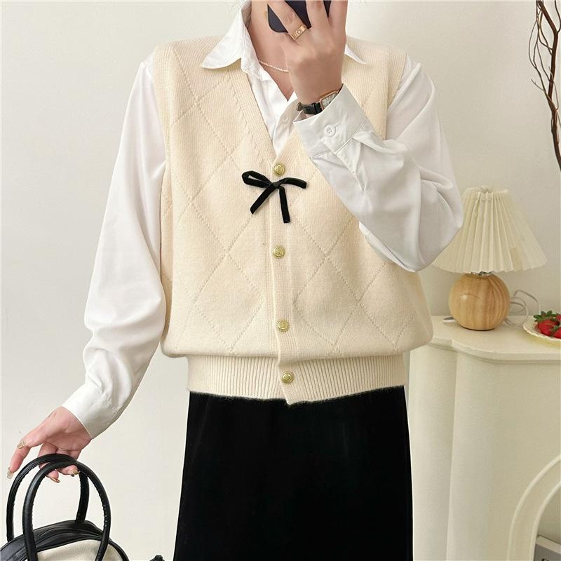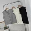 Chaleco para Mujer Primavera y Otoño Nuevo Estilo Coreano Moderno Romboidal de Un Solo Botón Sin Mangas Cálido Chaleco Suéter Chaleco