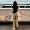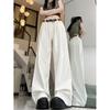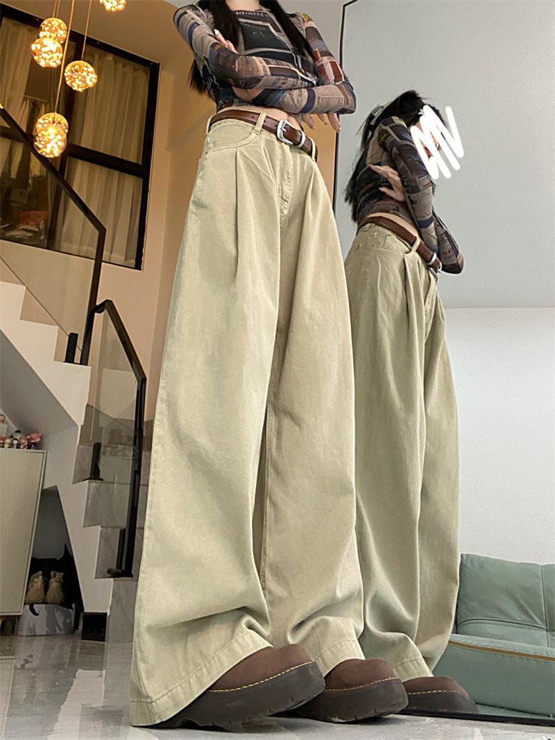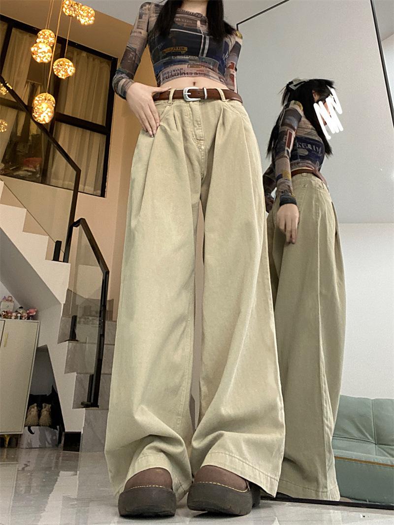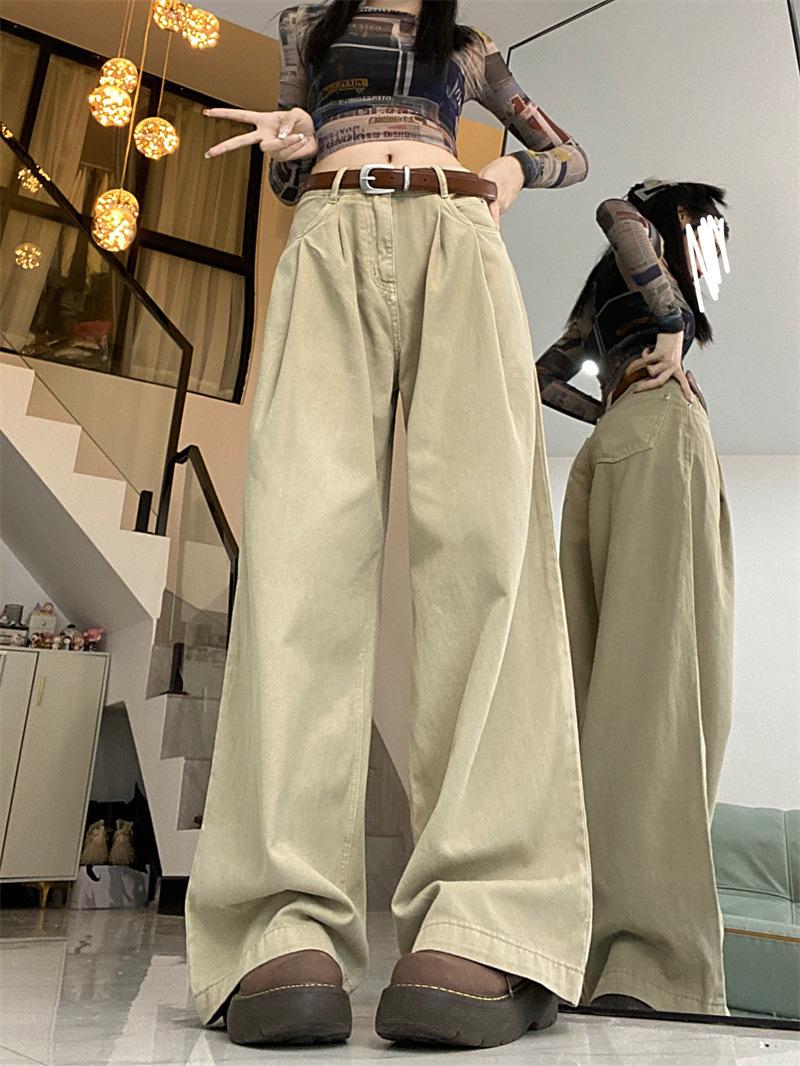 Pantalones casuales caqui para mujer, pantalones pequeños, sueltos, de cintura alta, rectos, de pierna ancha, otoño 2024, nuevos, blancos, envío gratis