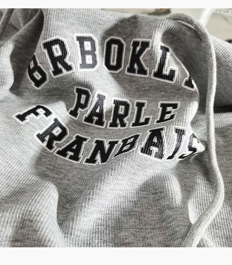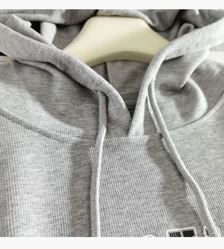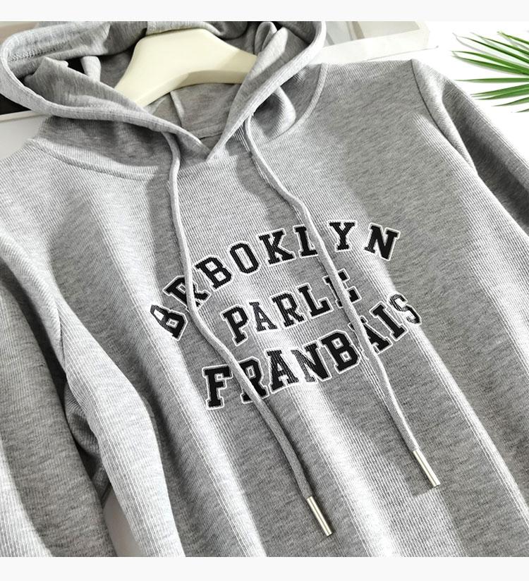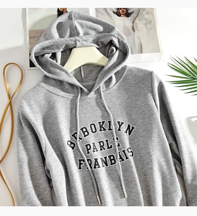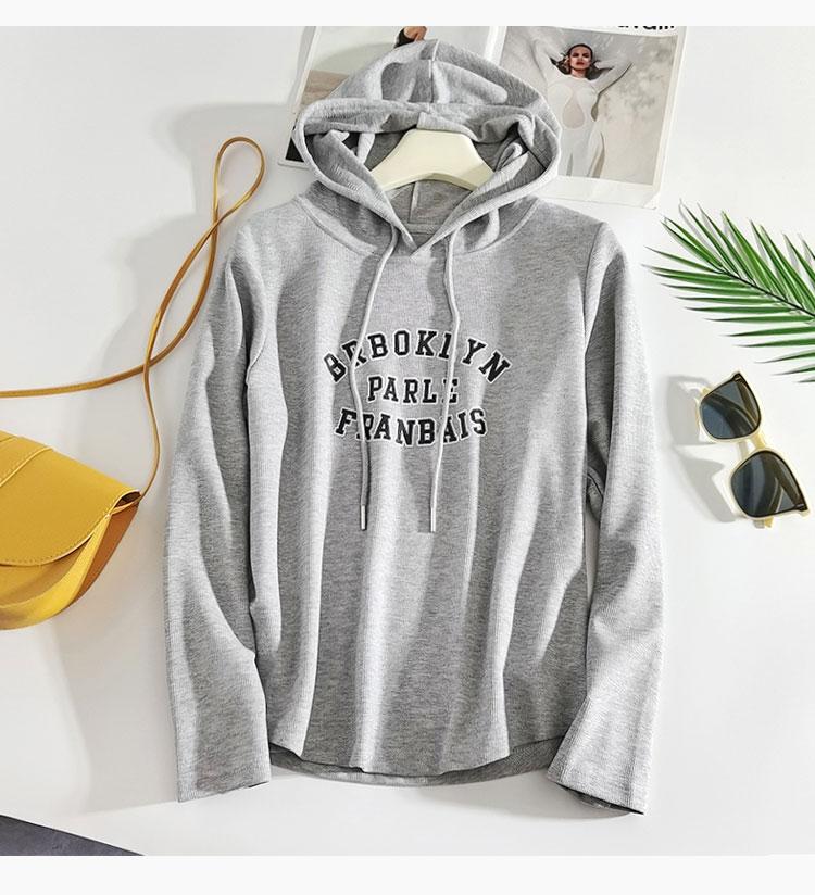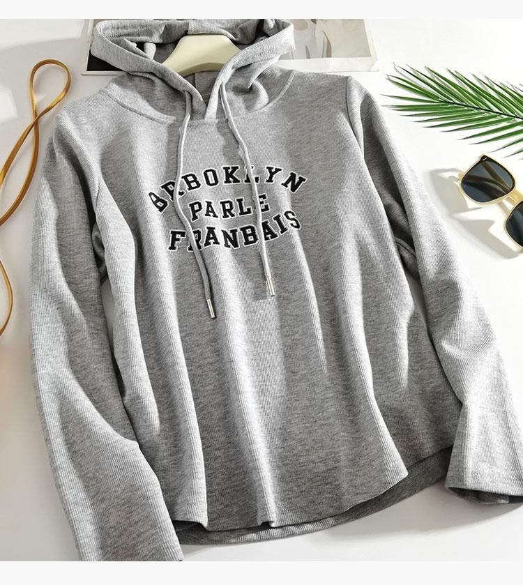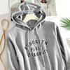 Sudadera con capucha de punto gris con estampado de letras para mujer, delgada para primavera y otoño, nueva llegada 2024, talla pequeña para hombre, top holgado de otoño