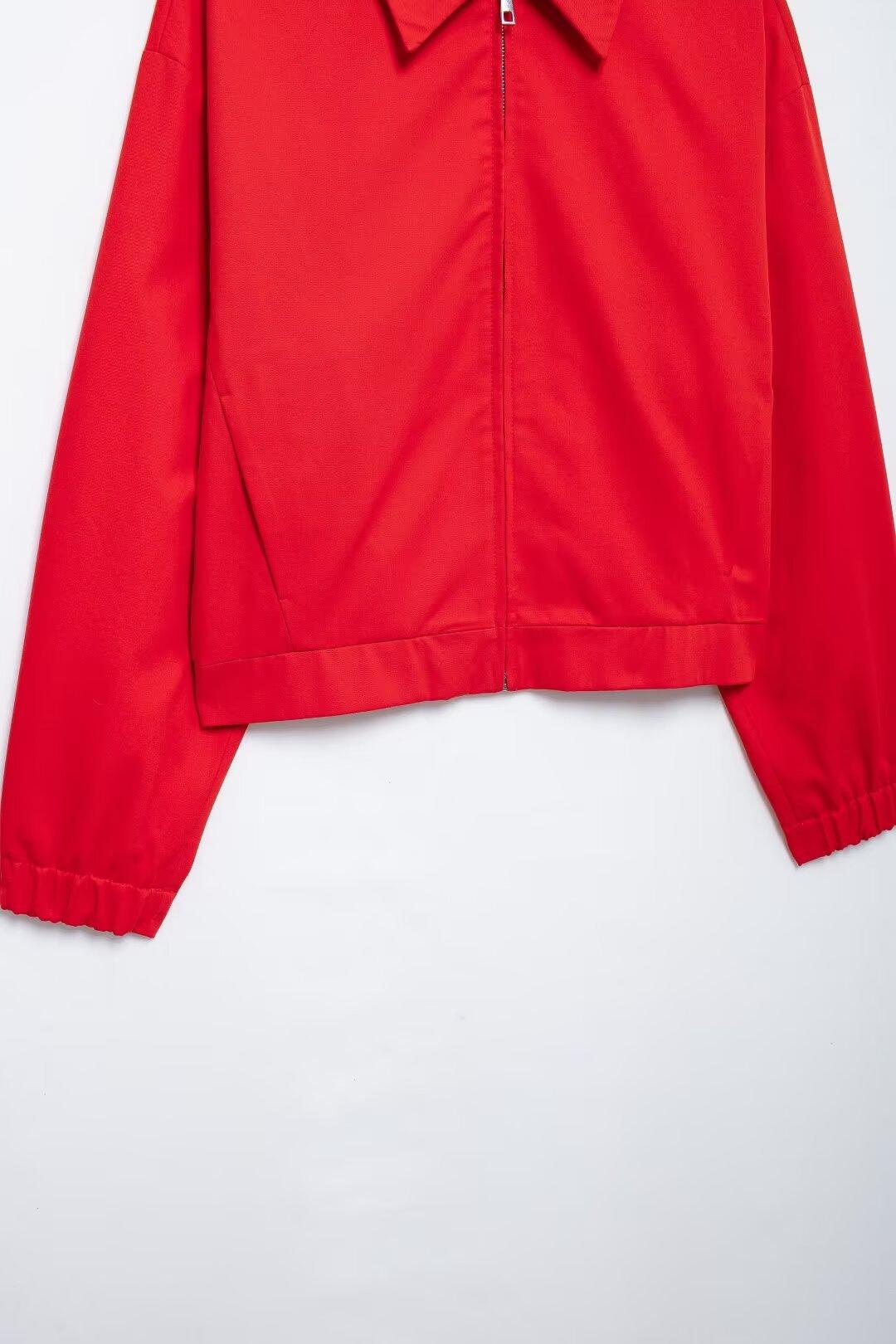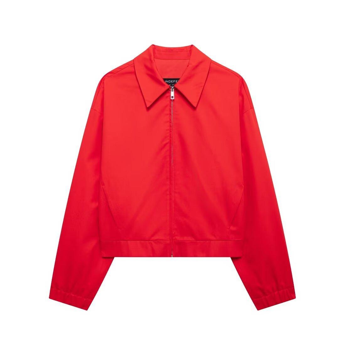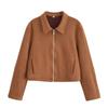 Ropa Europea y Americana 2024 Nueva Moda Simple Color Puro Cierre Solapa Bolsillo Pantalones Solapa Manga Larga Chaqueta Casual Holgada