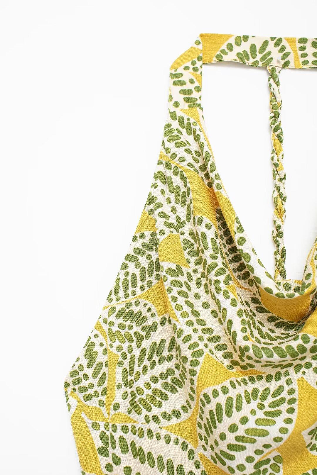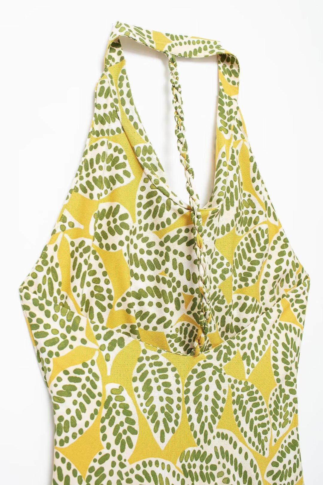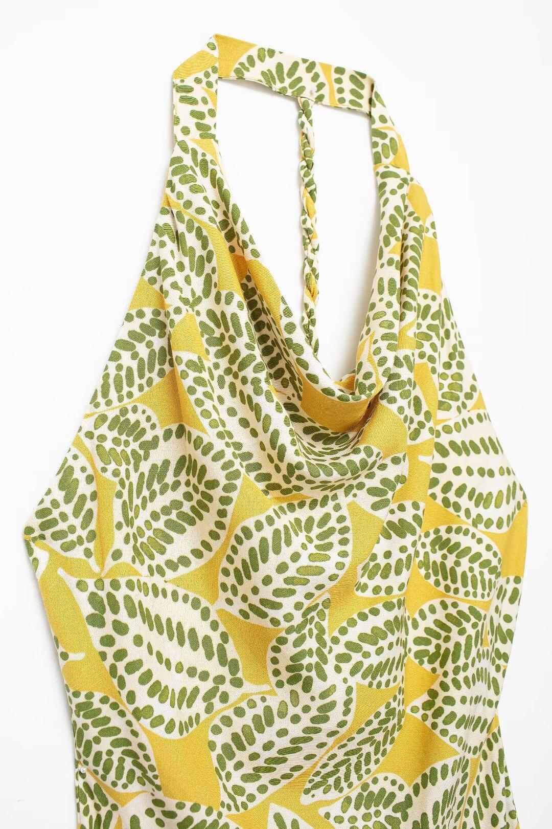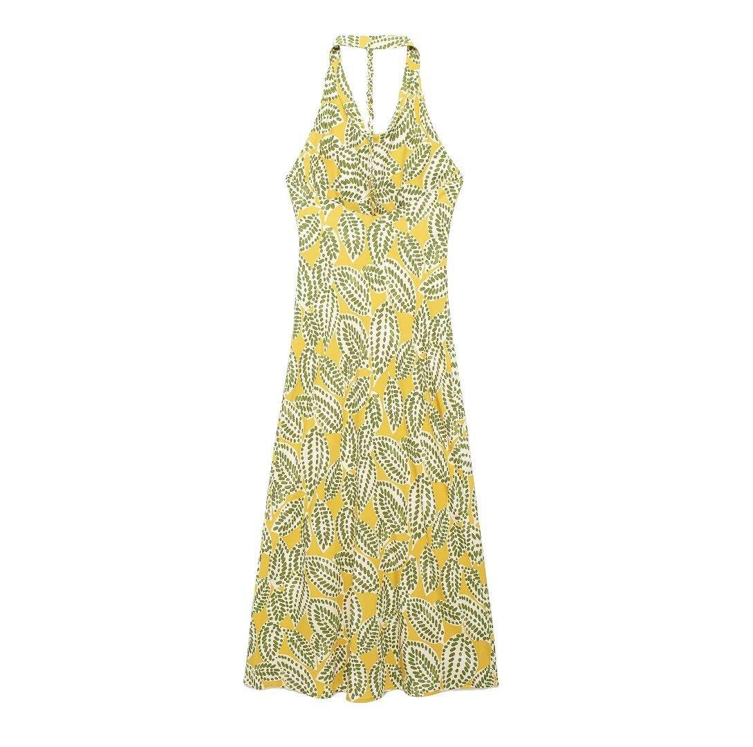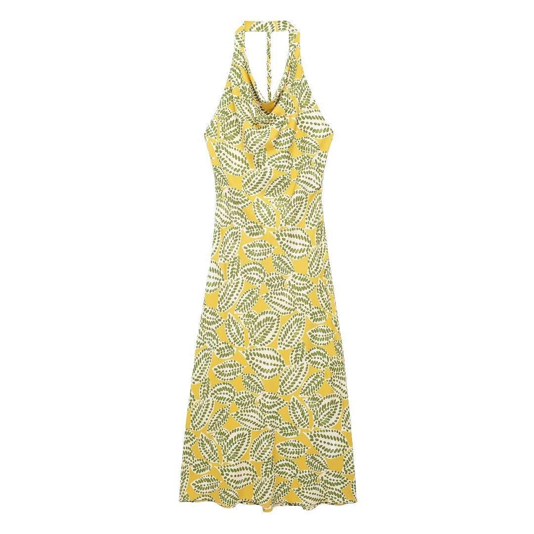 Vestido de cuello colgante estampado para mujer, novedad de verano 2024, para comercio exterior transfronterizo de Amazon, Europa y Estados Unidos