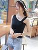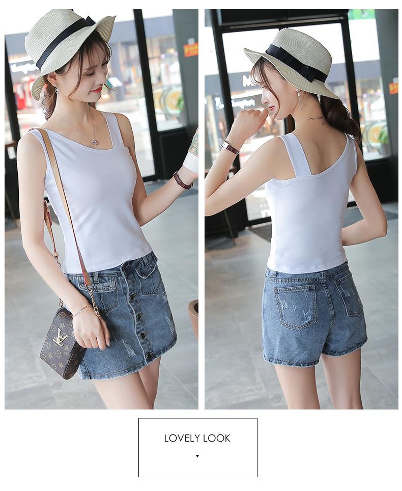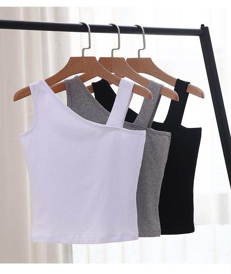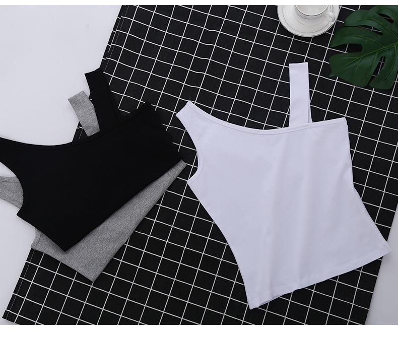 Camisola pequeña sin espalda de algodón puro para mujer, ropa exterior, hermoso diseño de espalda, sentido del diseño, base interior, hombro inclinado, top corto de Spice Girls para verano