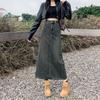 Falda vaquera dividida para mujer, verano 2024, fina, de cintura alta, adelgazante, estilo retro, corte A, longitud media