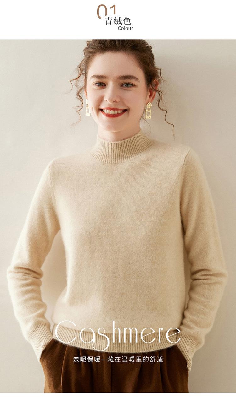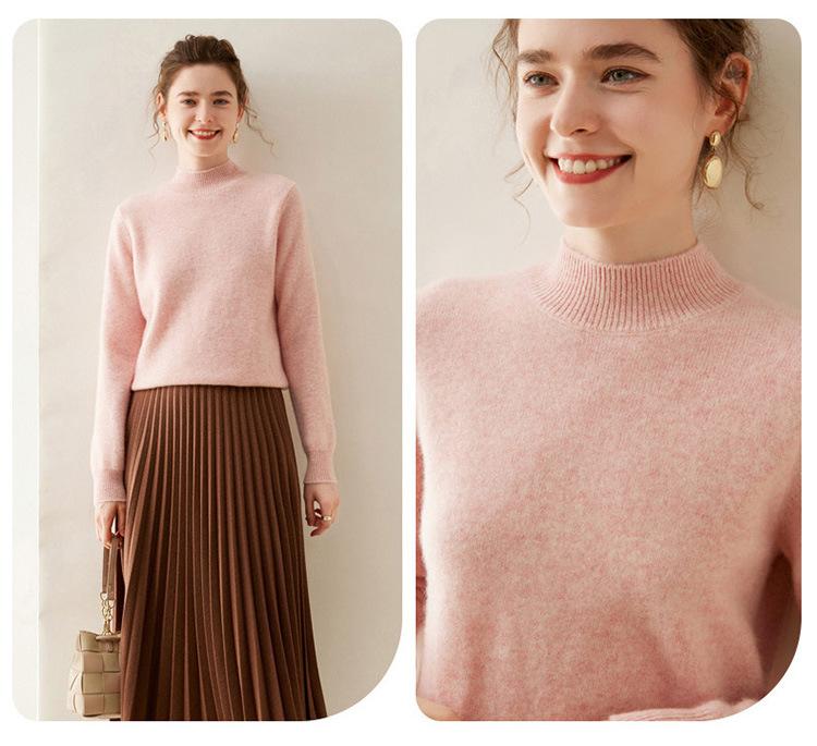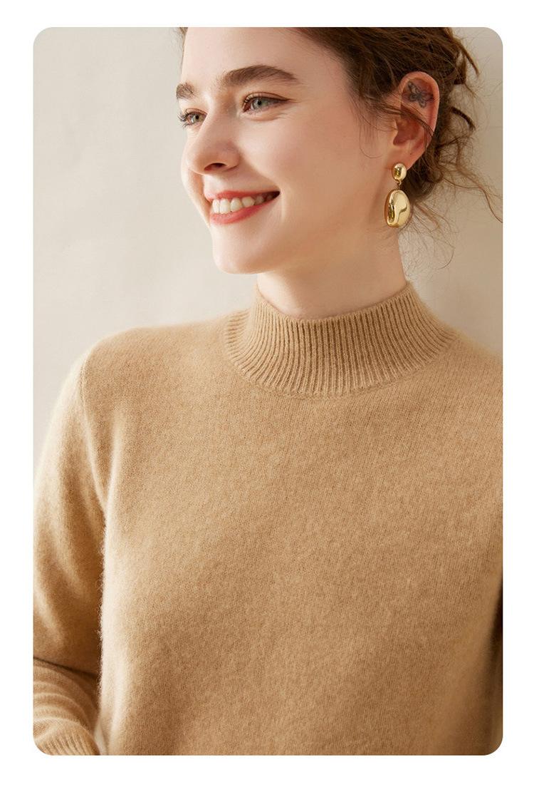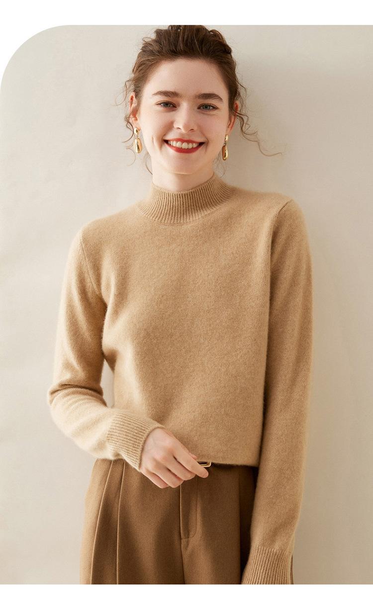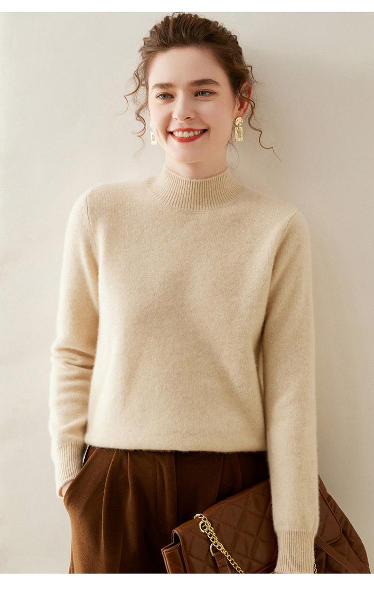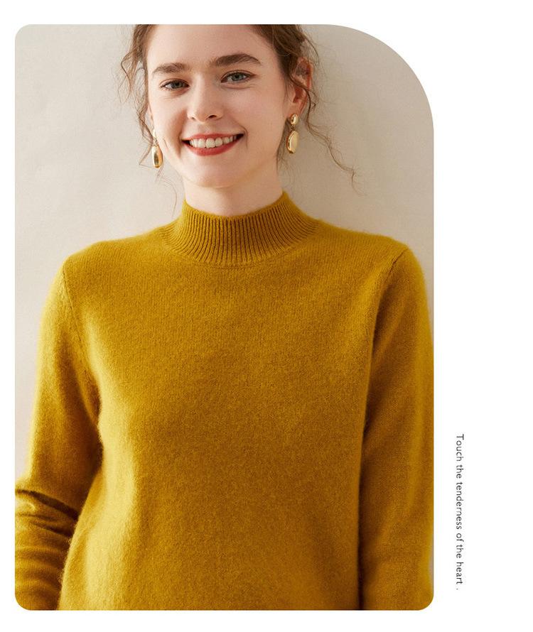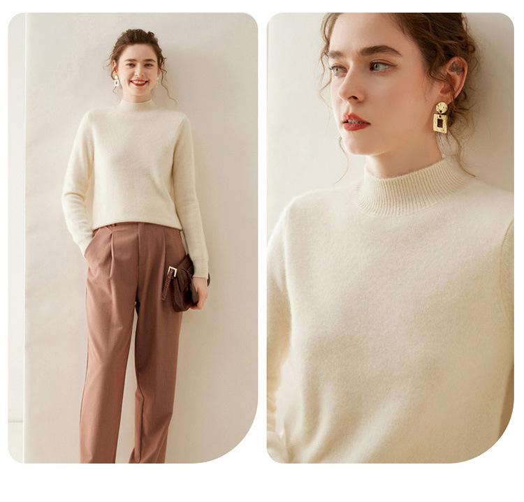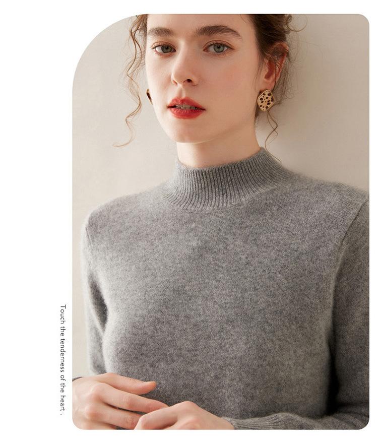 Suéter de punto de cachemira para mujer, jersey de manga larga con cuello medio alto y estilo suave, otoño e invierno 2024