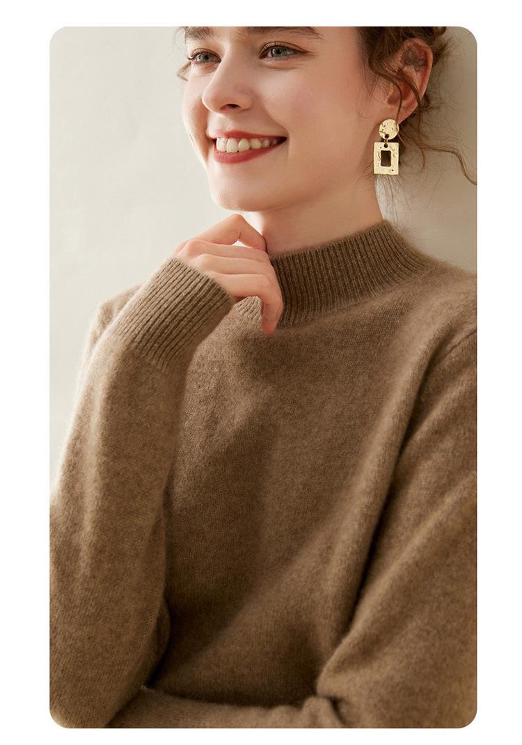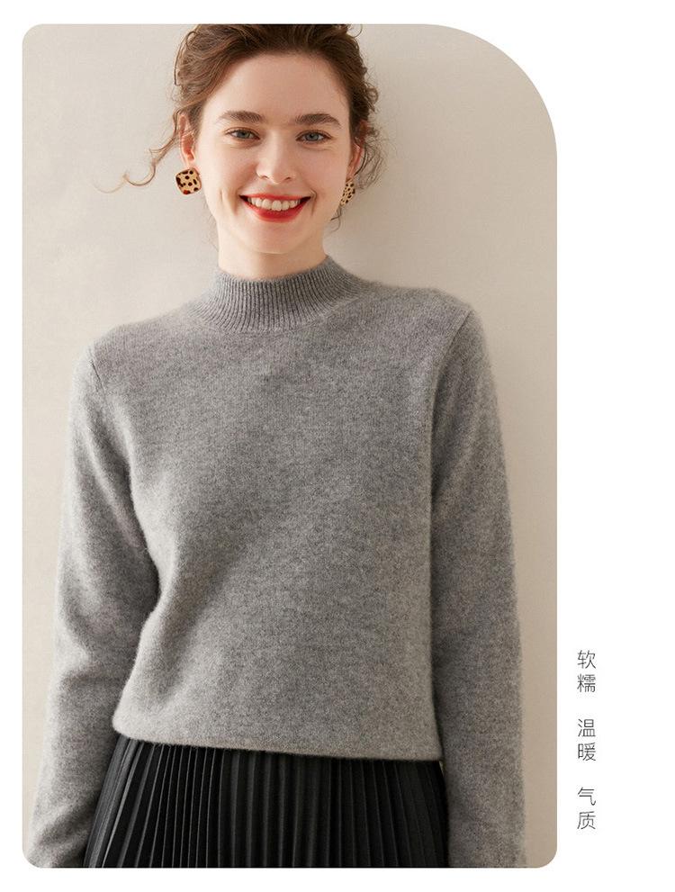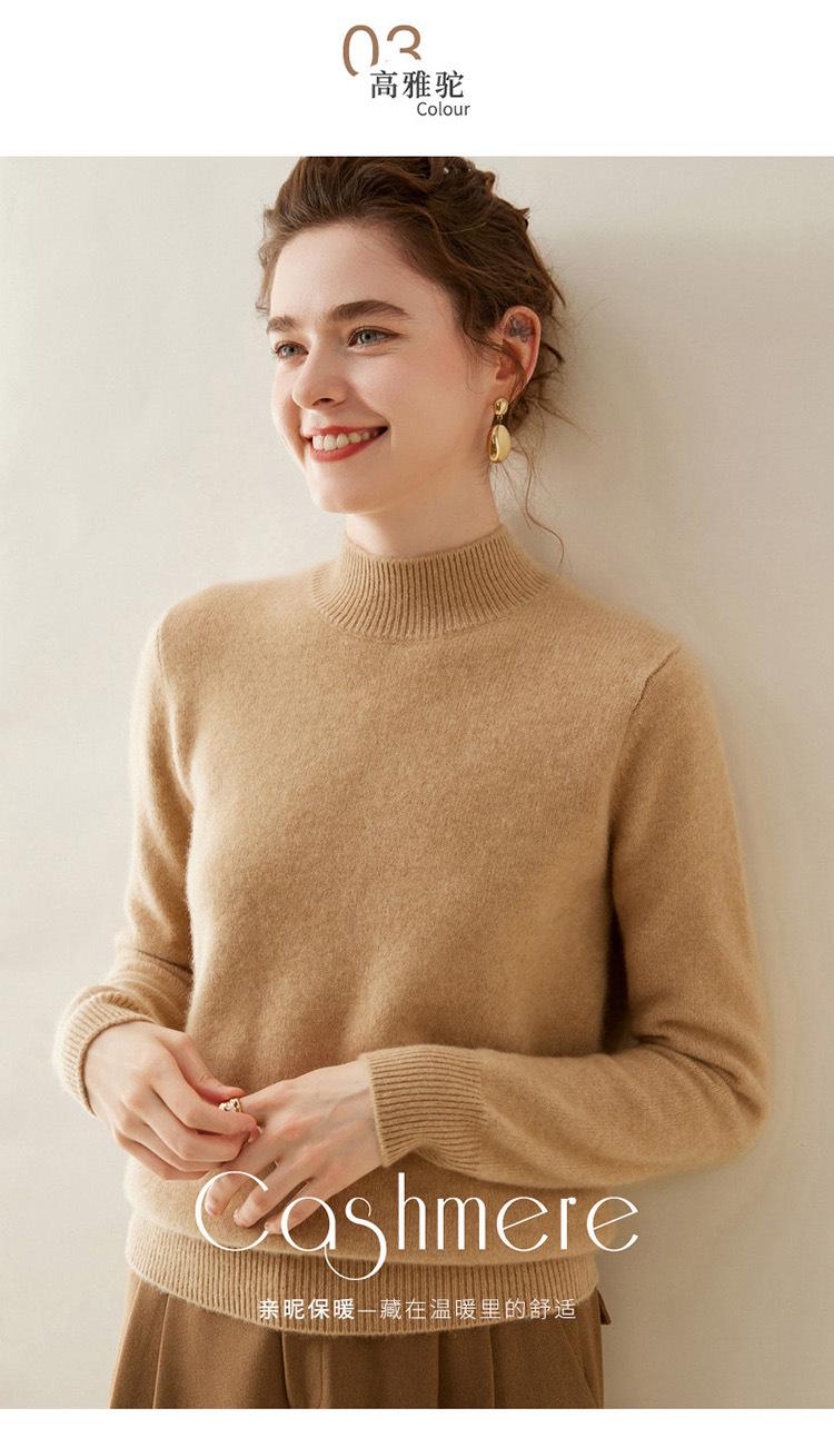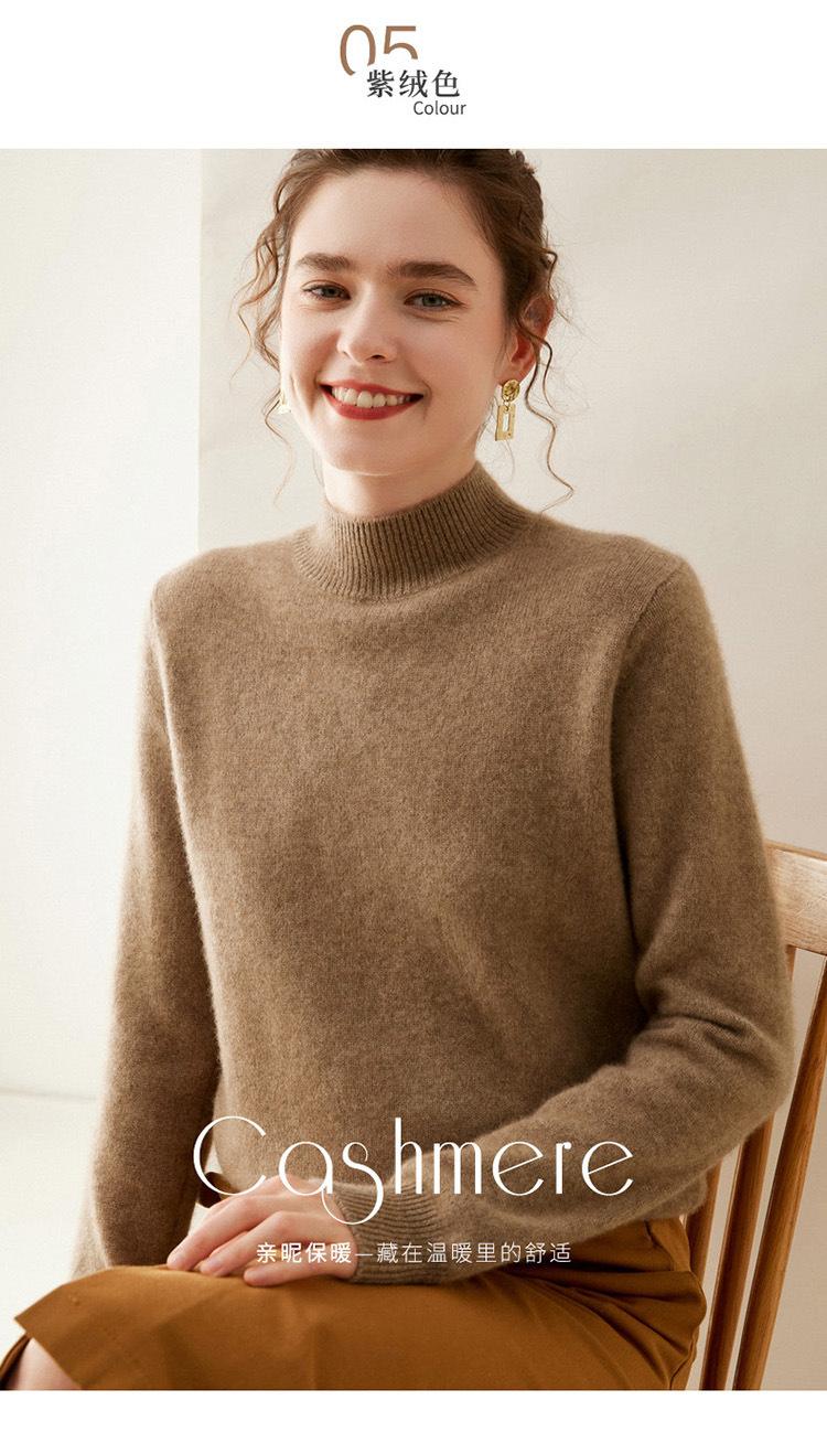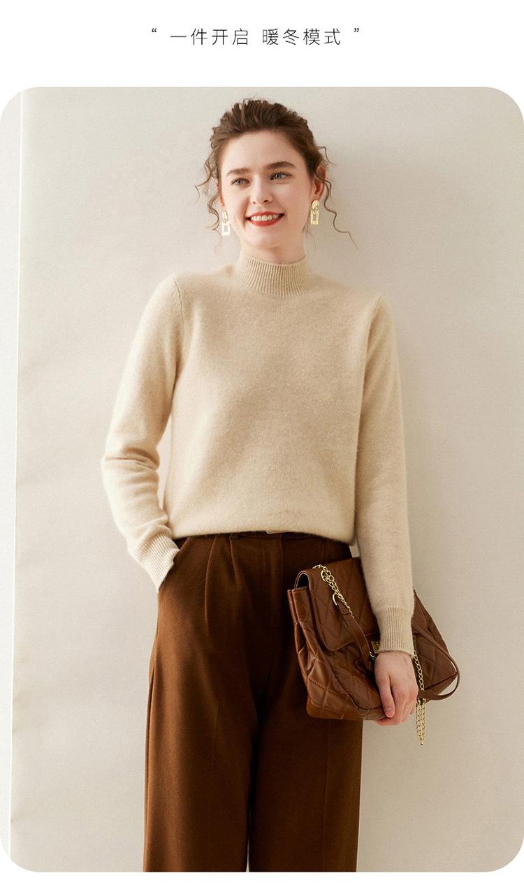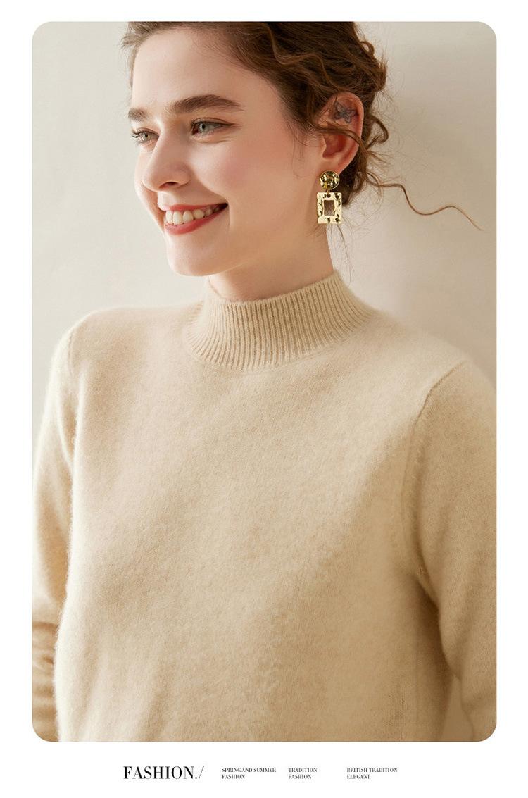 Suéter de punto de cachemira para mujer, jersey de manga larga con cuello medio alto y estilo suave, otoño e invierno 2024