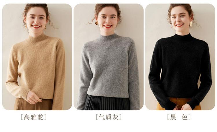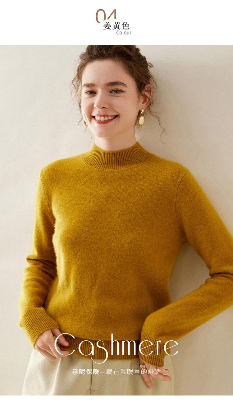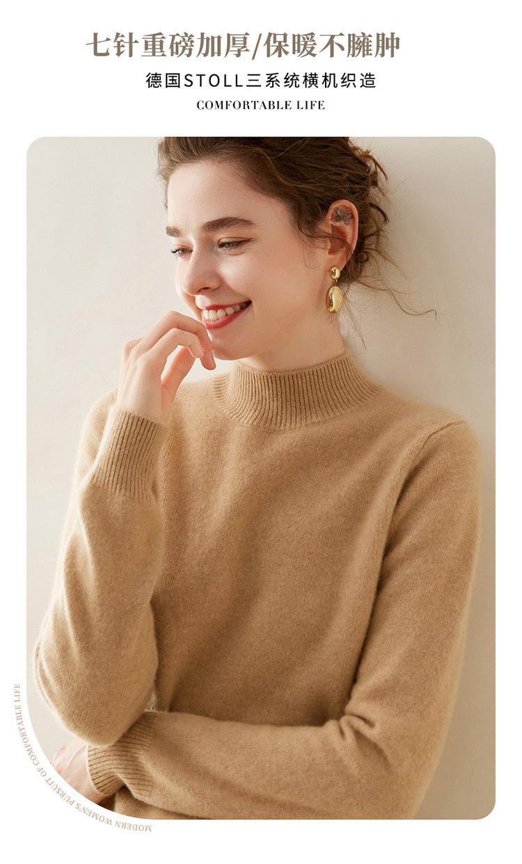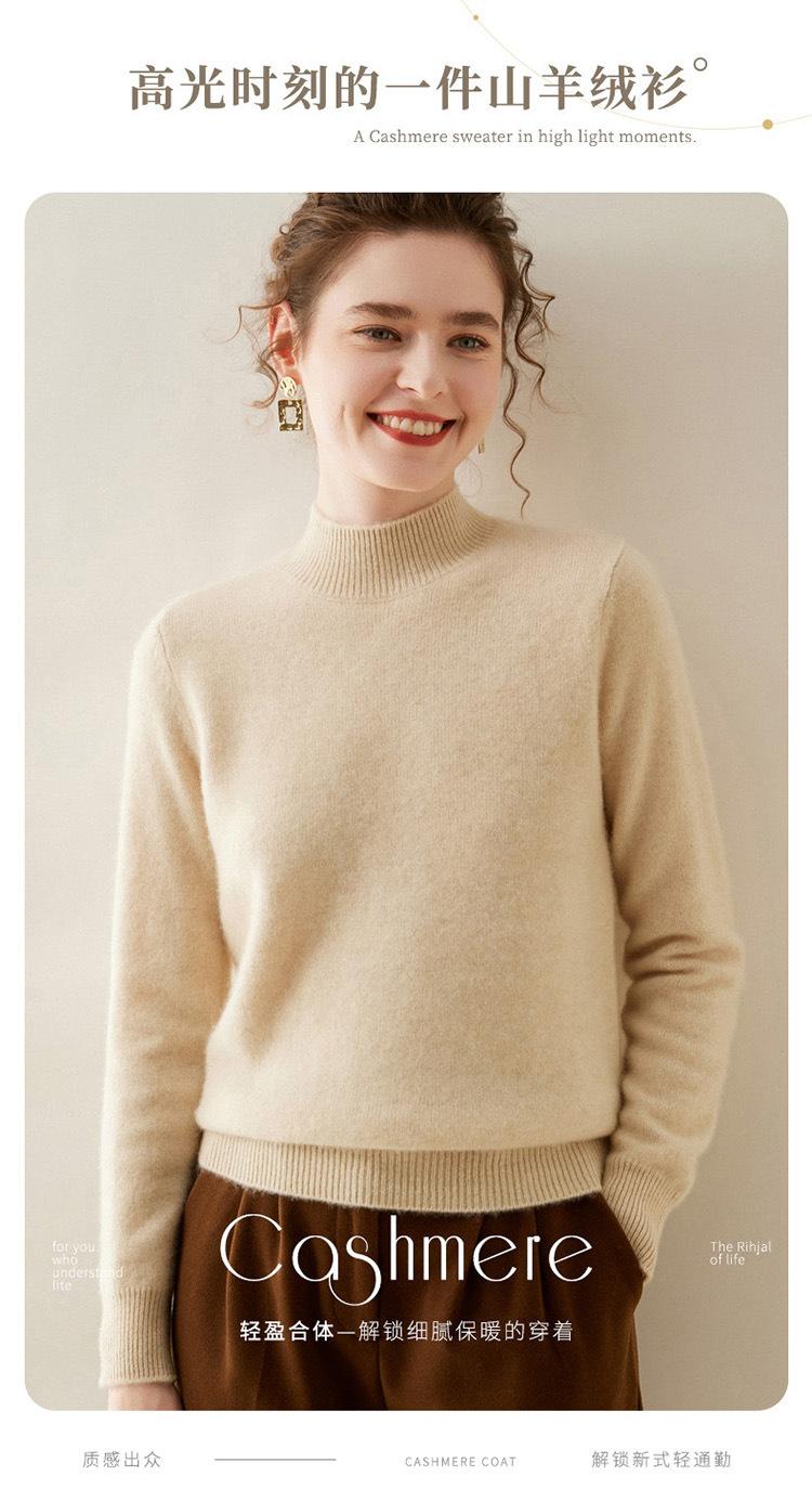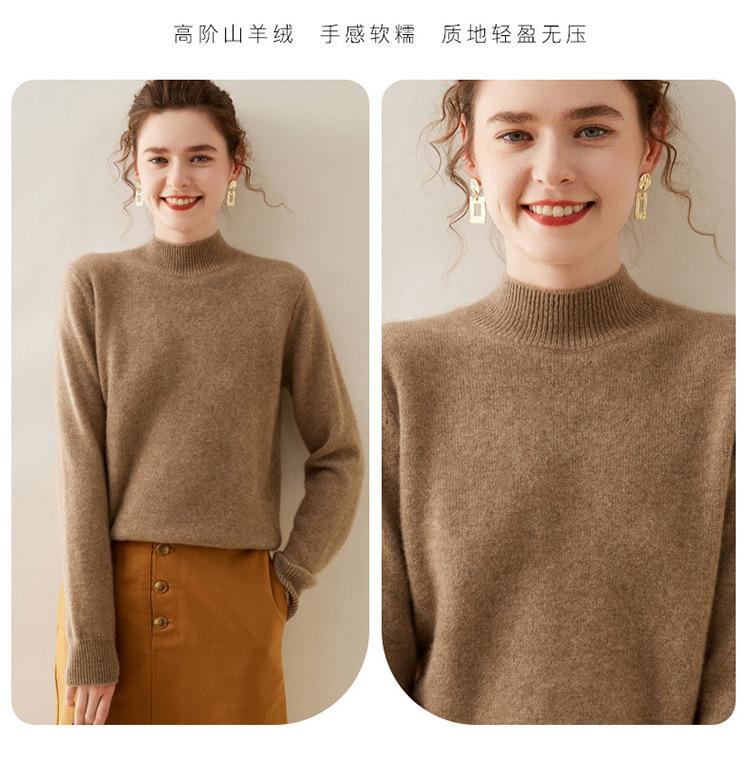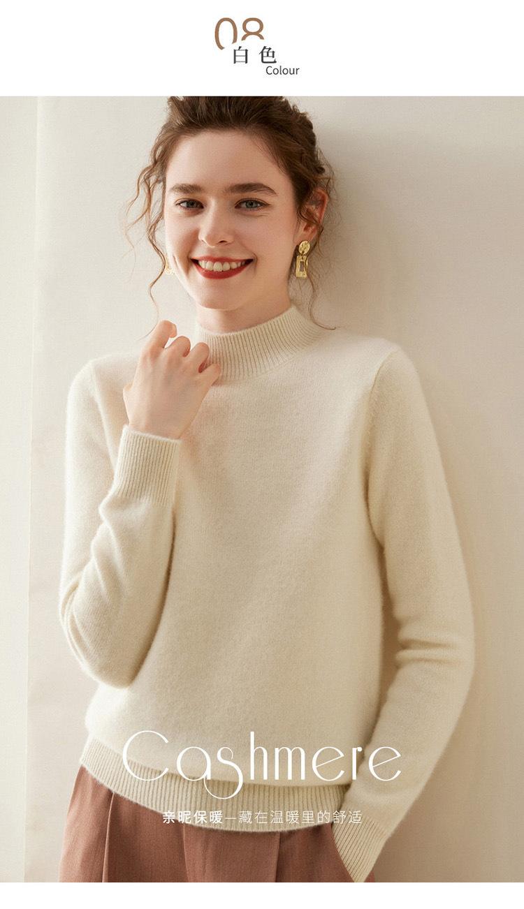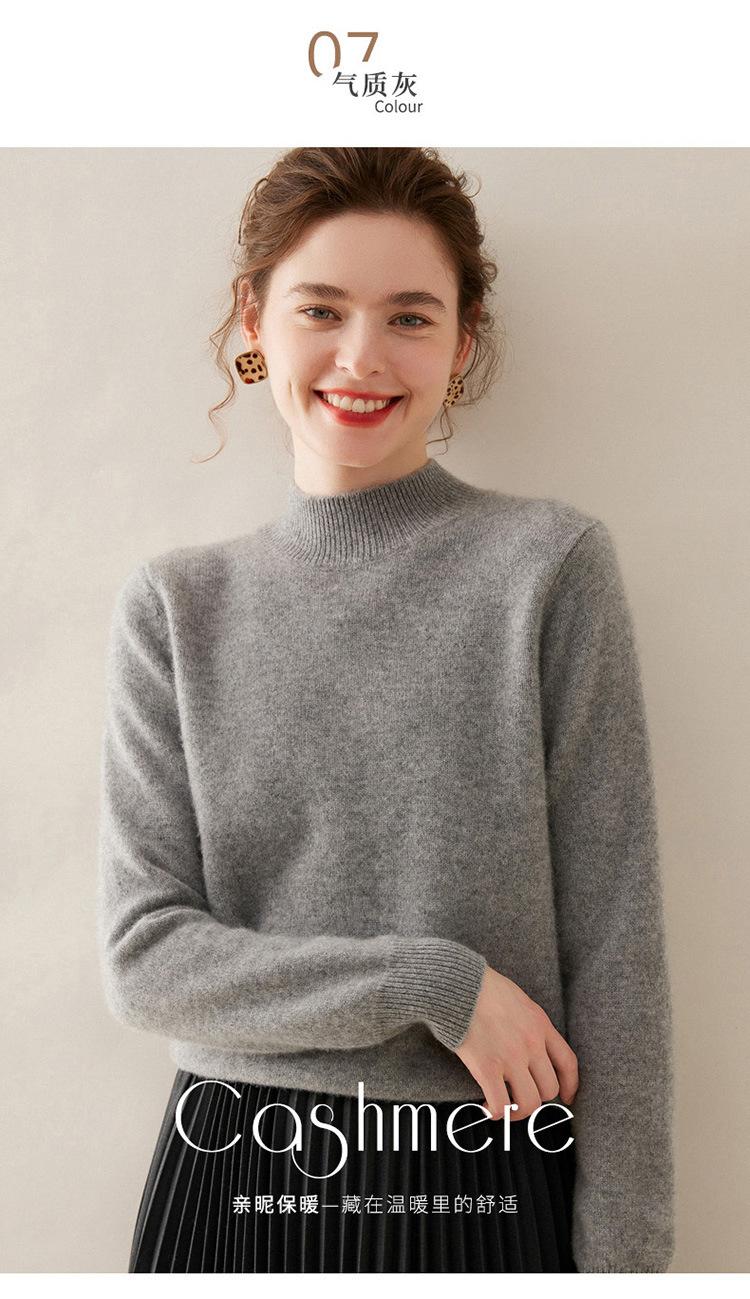 Suéter de punto de cachemira para mujer, jersey de manga larga con cuello medio alto y estilo suave, otoño e invierno 2024
