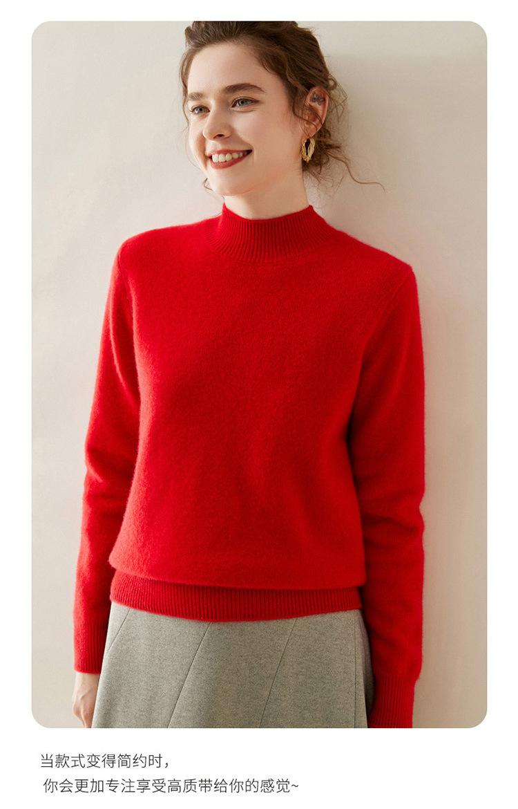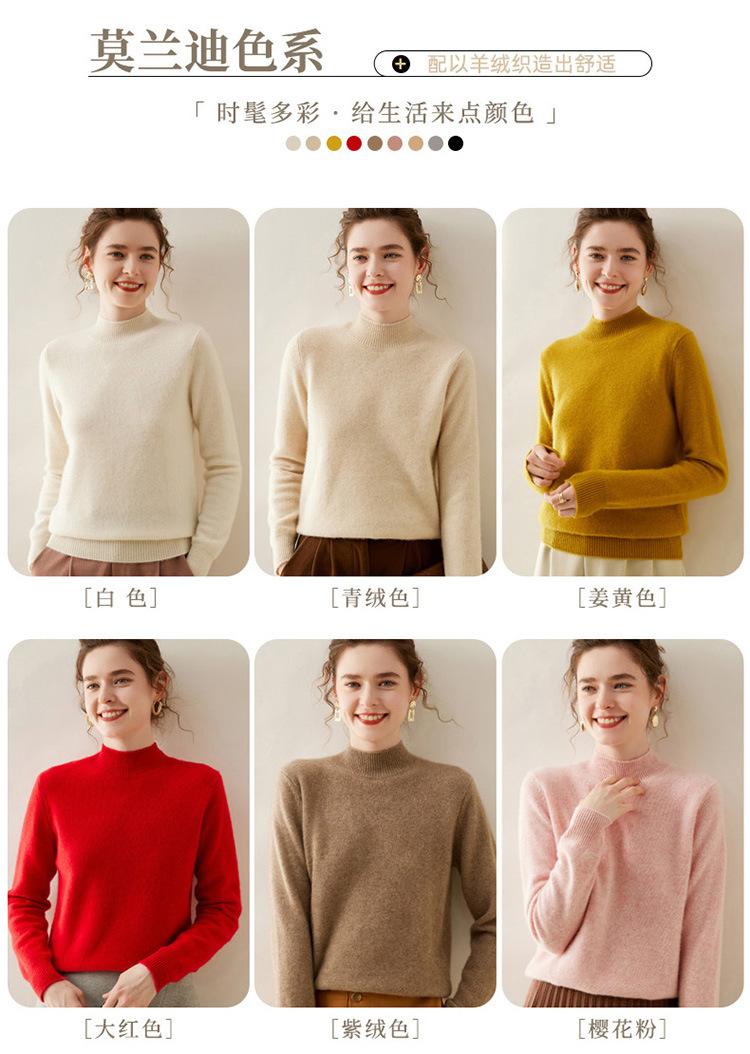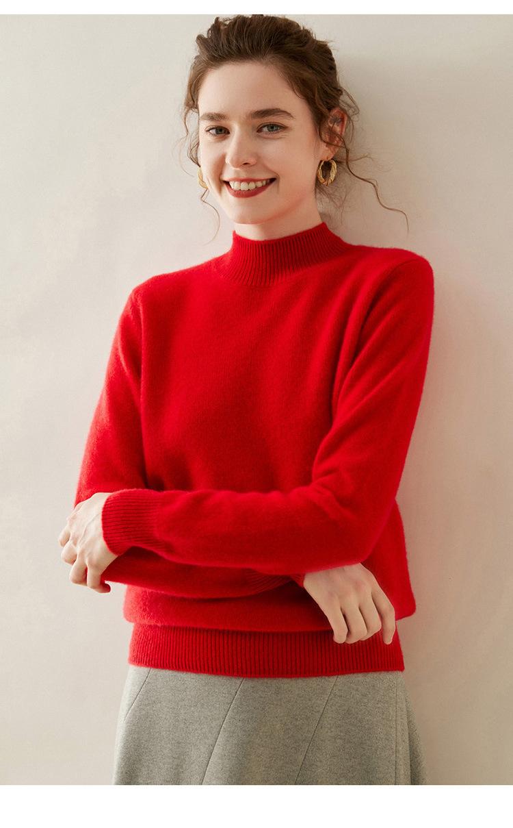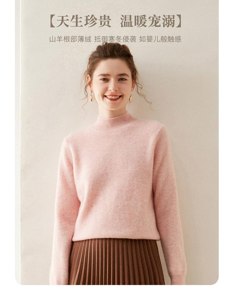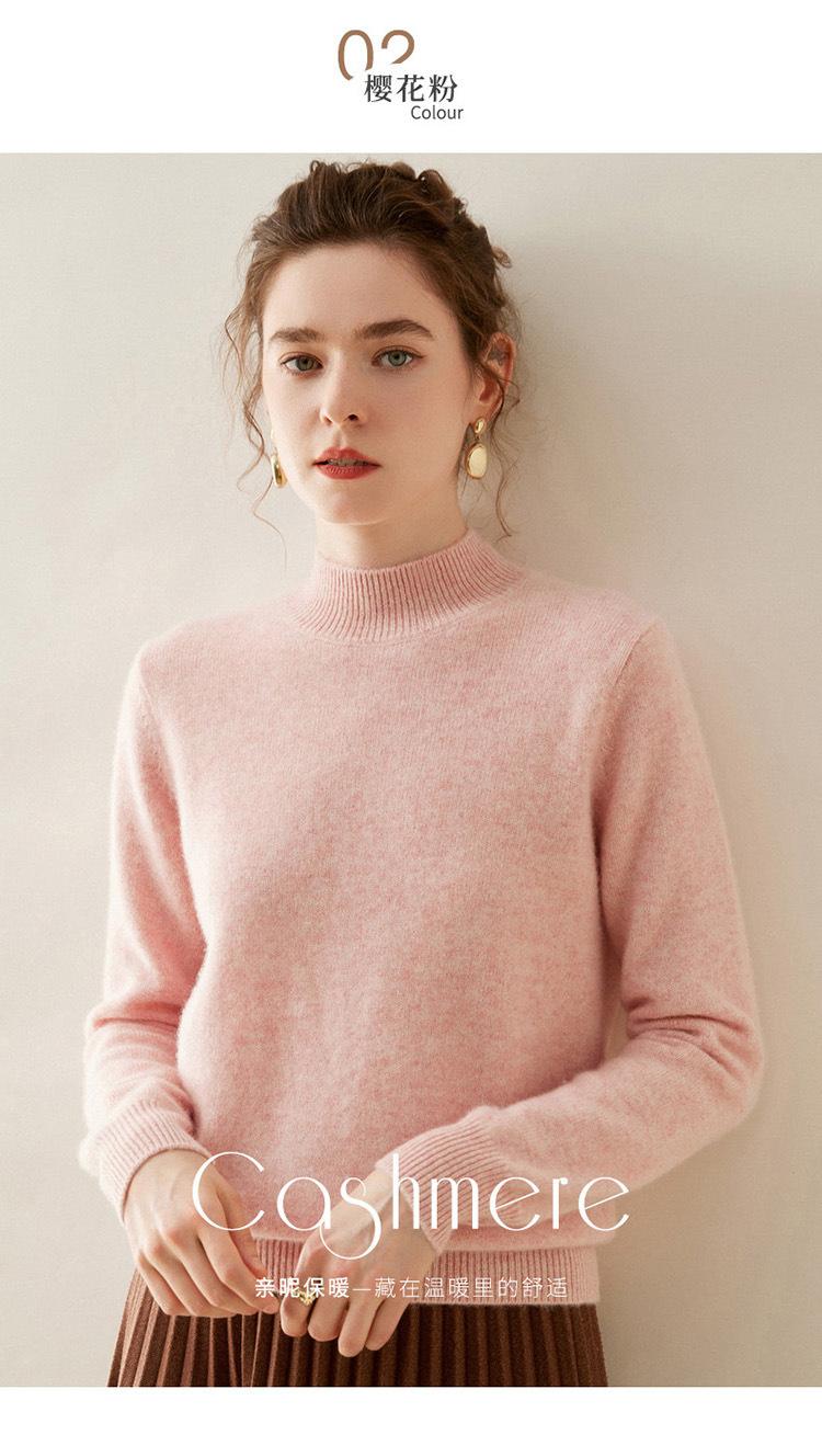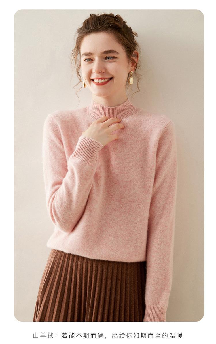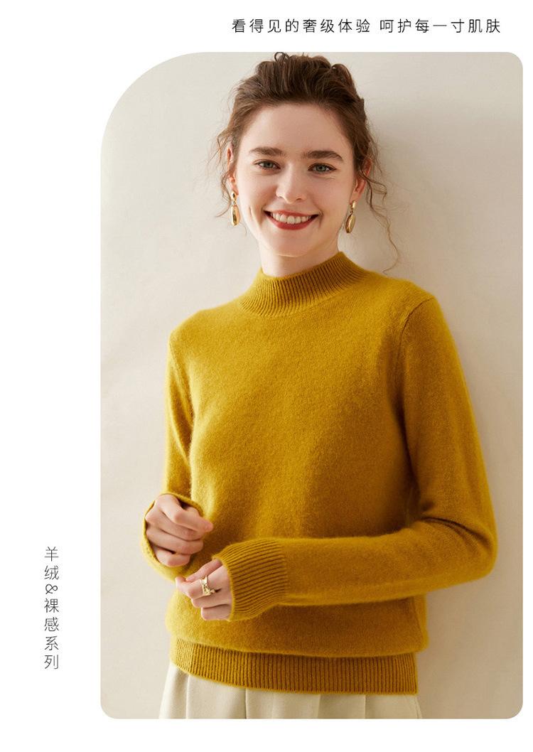 Suéter de punto de cachemira para mujer, jersey de manga larga con cuello medio alto y estilo suave, otoño e invierno 2024