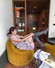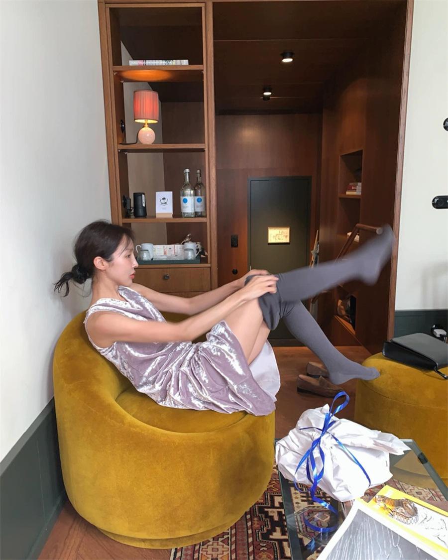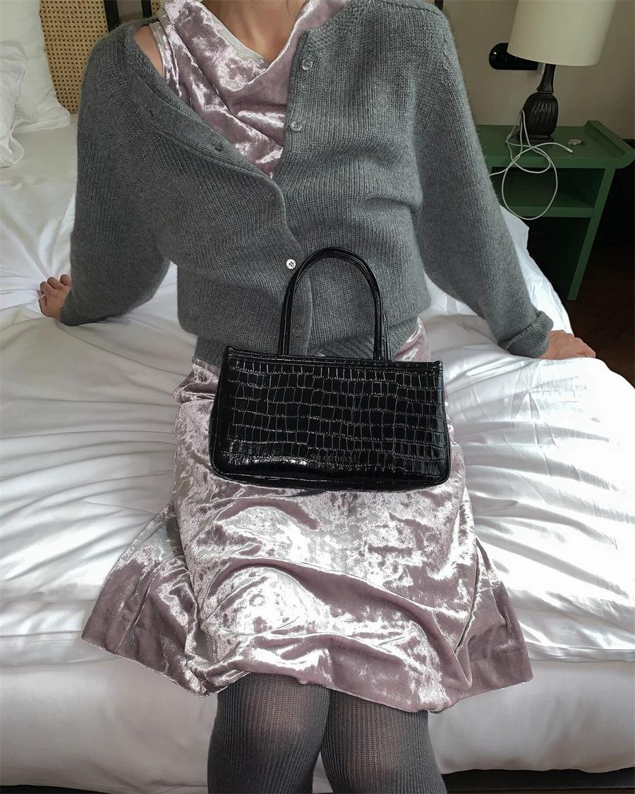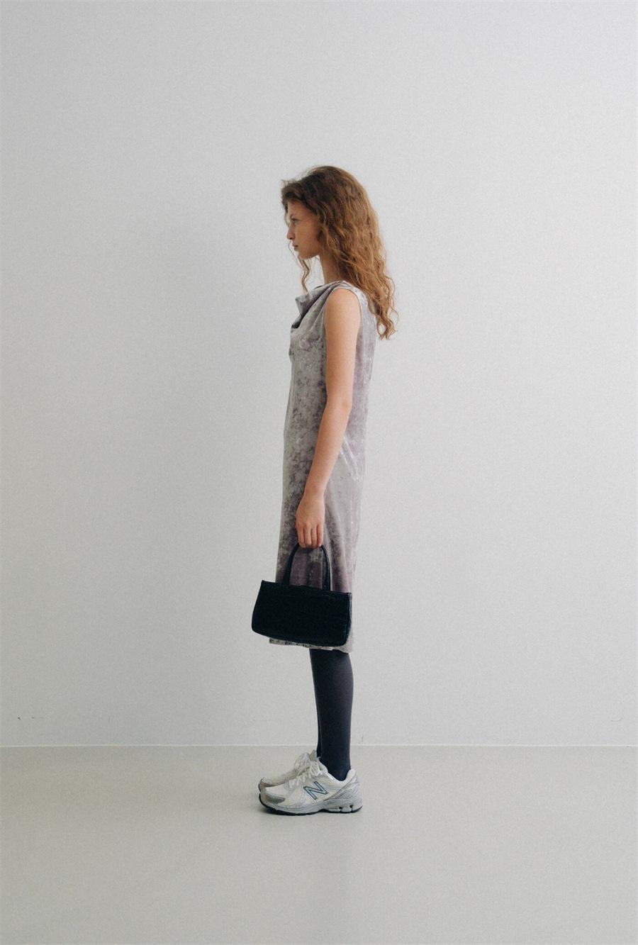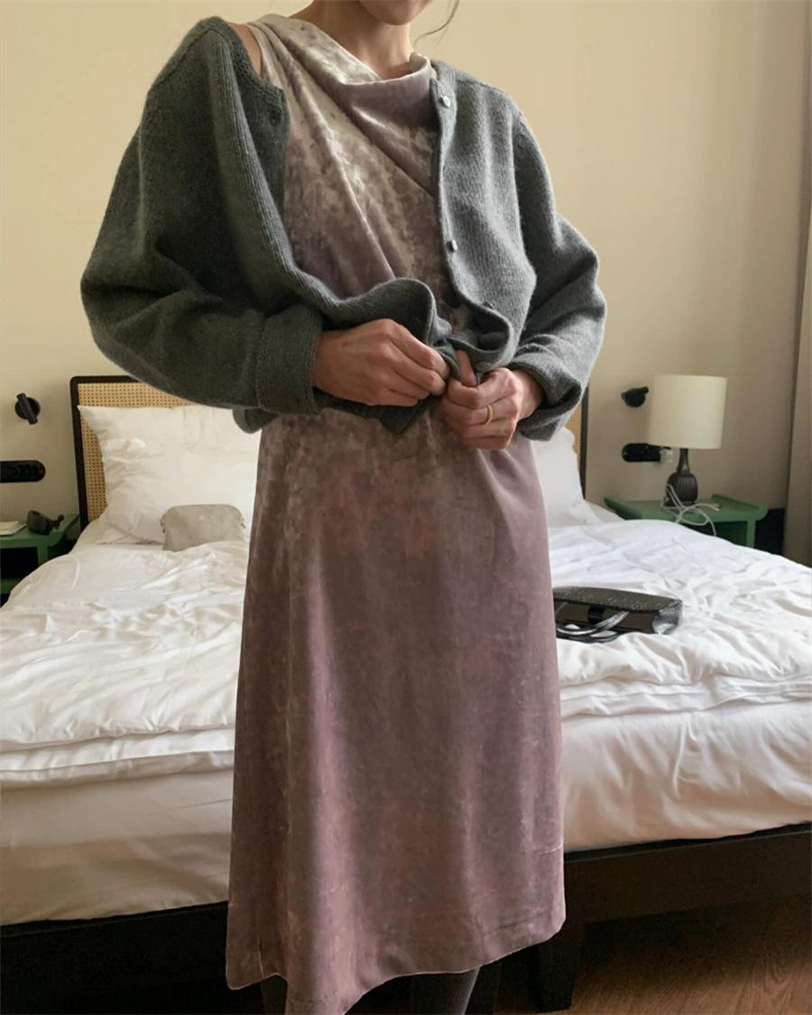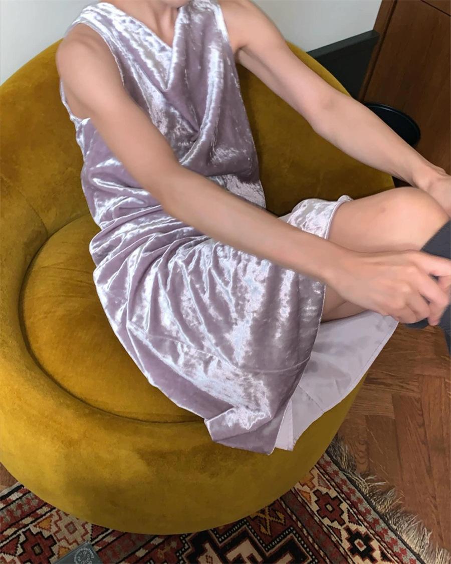 La tela de terciopelo es suave y elegante, y el tono púrpura claro rompe la monotonía del negro, el blanco y el gris.