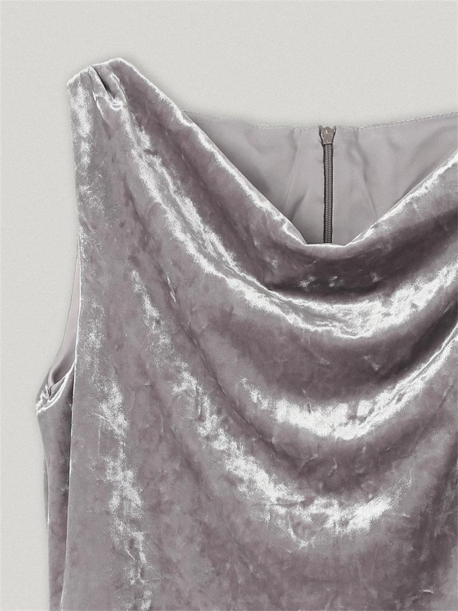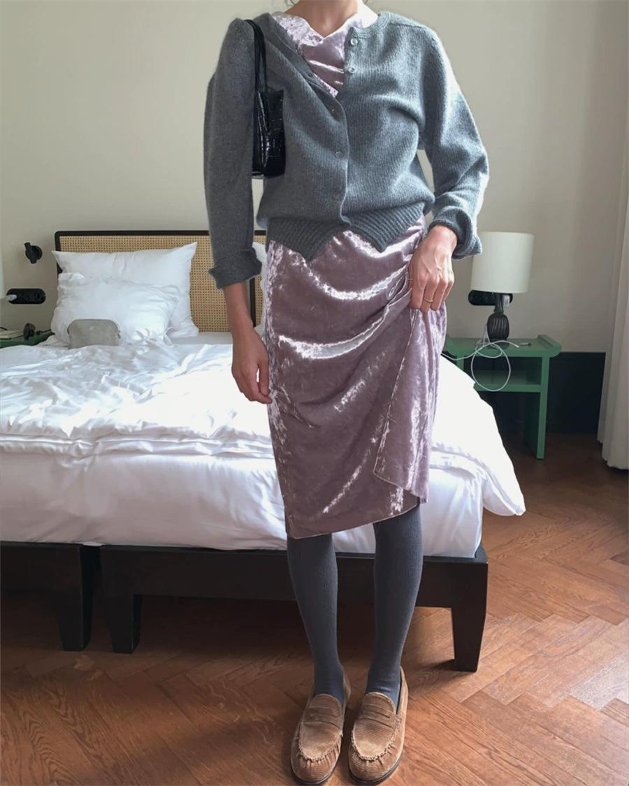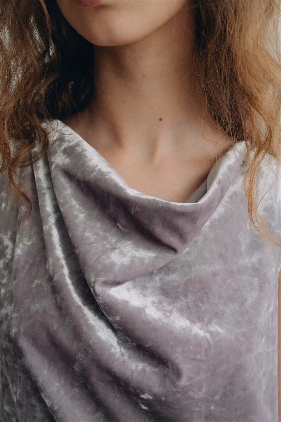 El tejido de terciopelo de la falda es suave y delicado, con un brillo natural.
