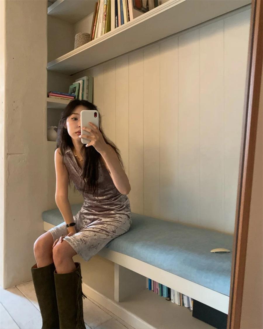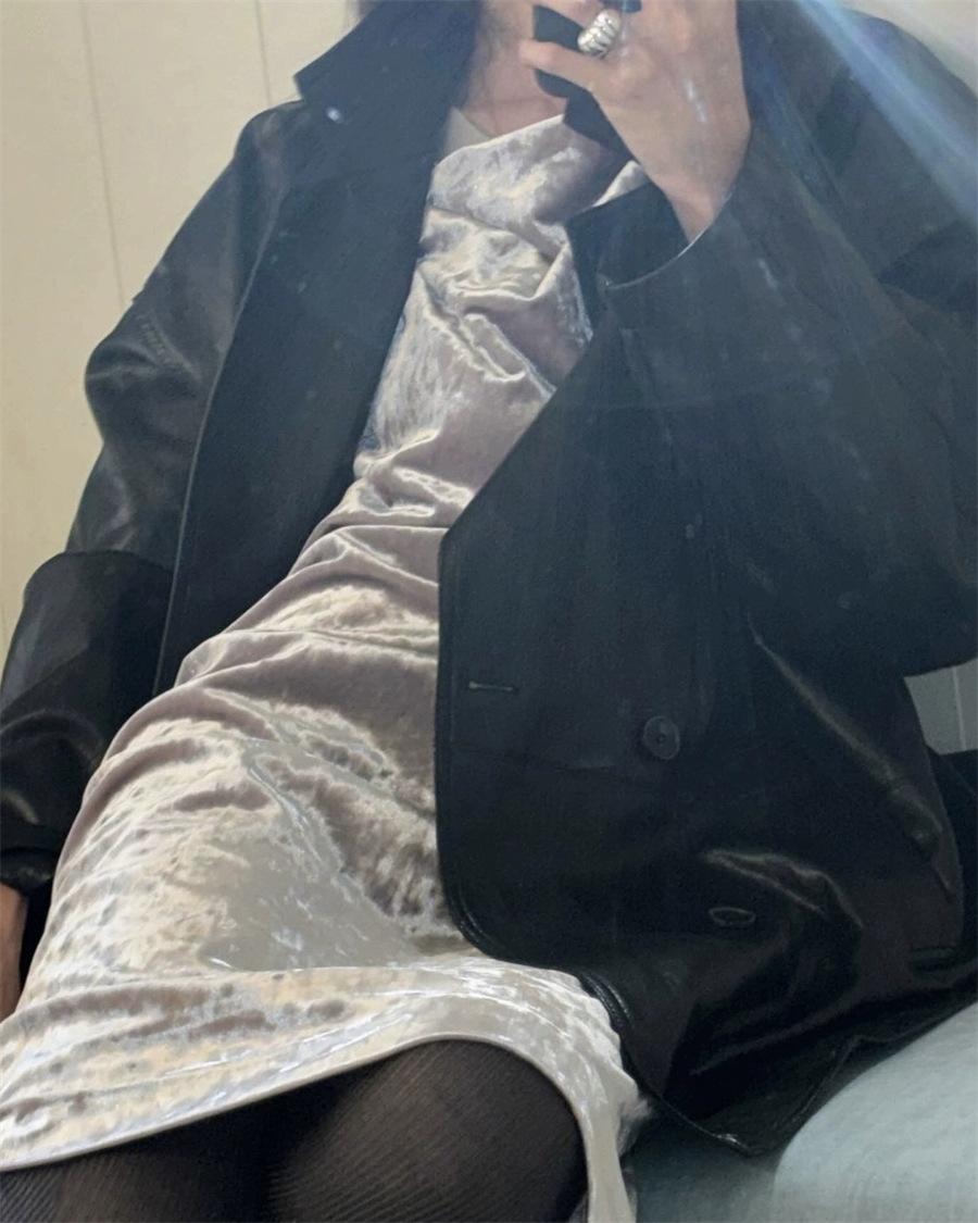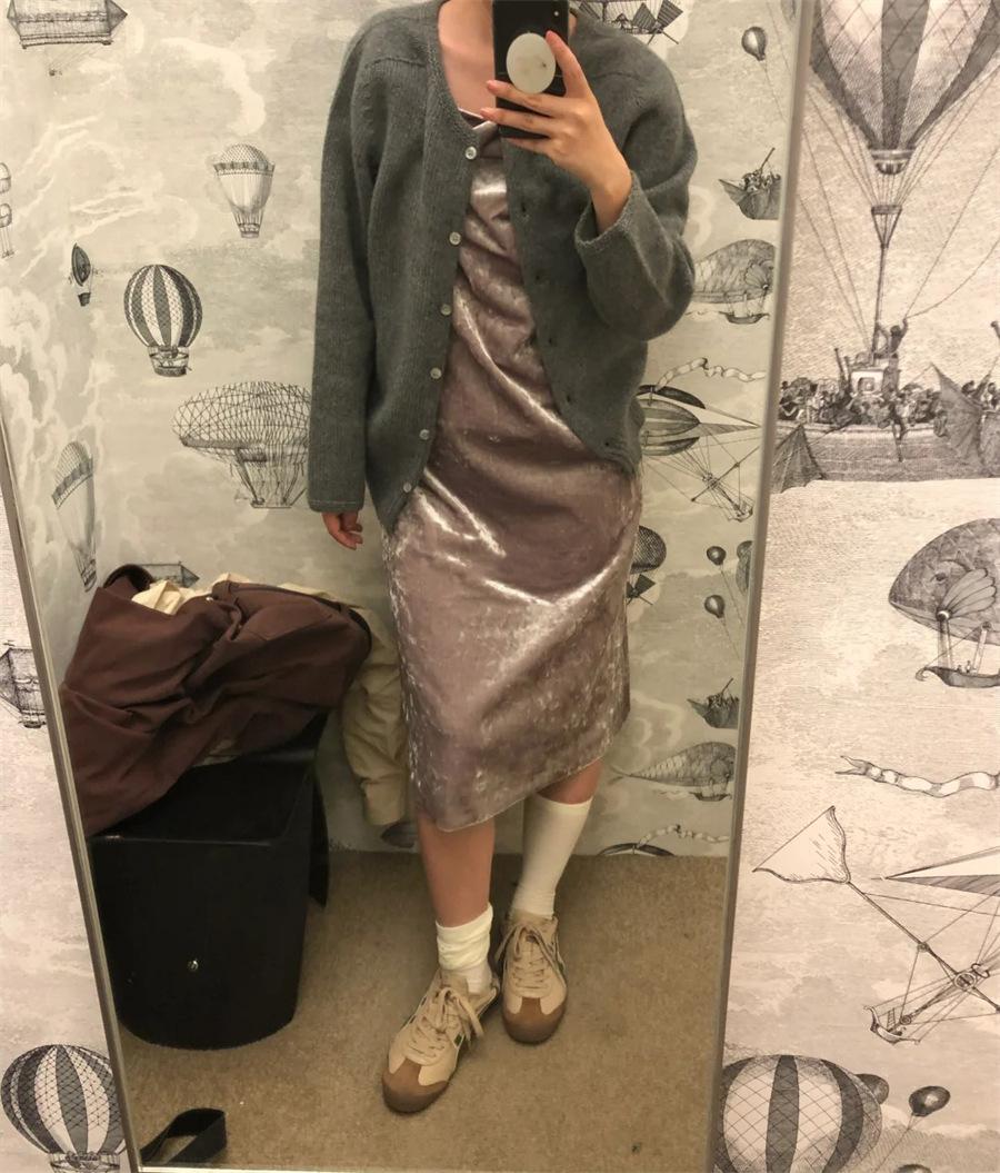 El tejido de terciopelo de la falda es suave y delicado, con un brillo natural.